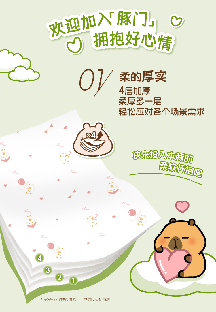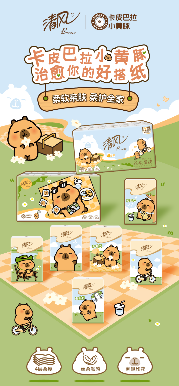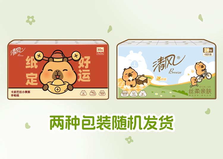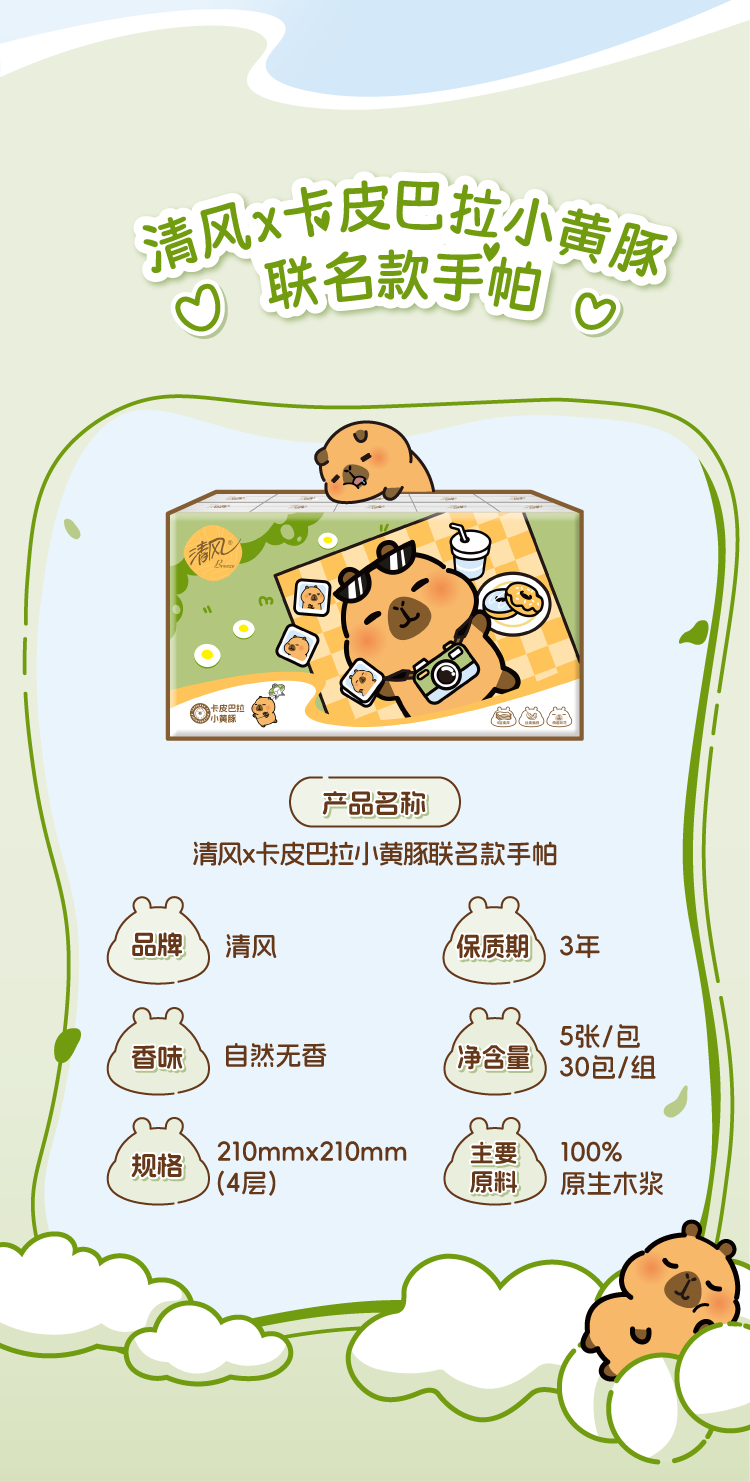【官方自营】清风4层5张30包手帕纸卡皮巴拉小黄豚联名