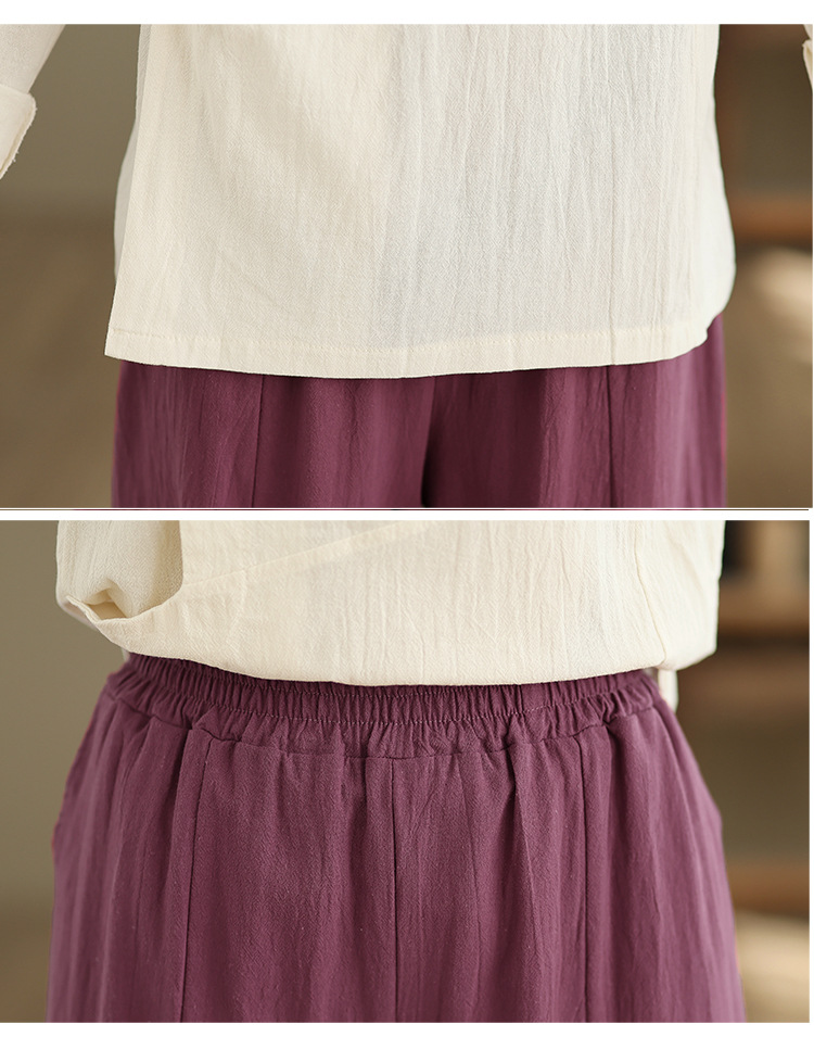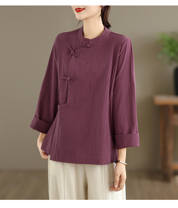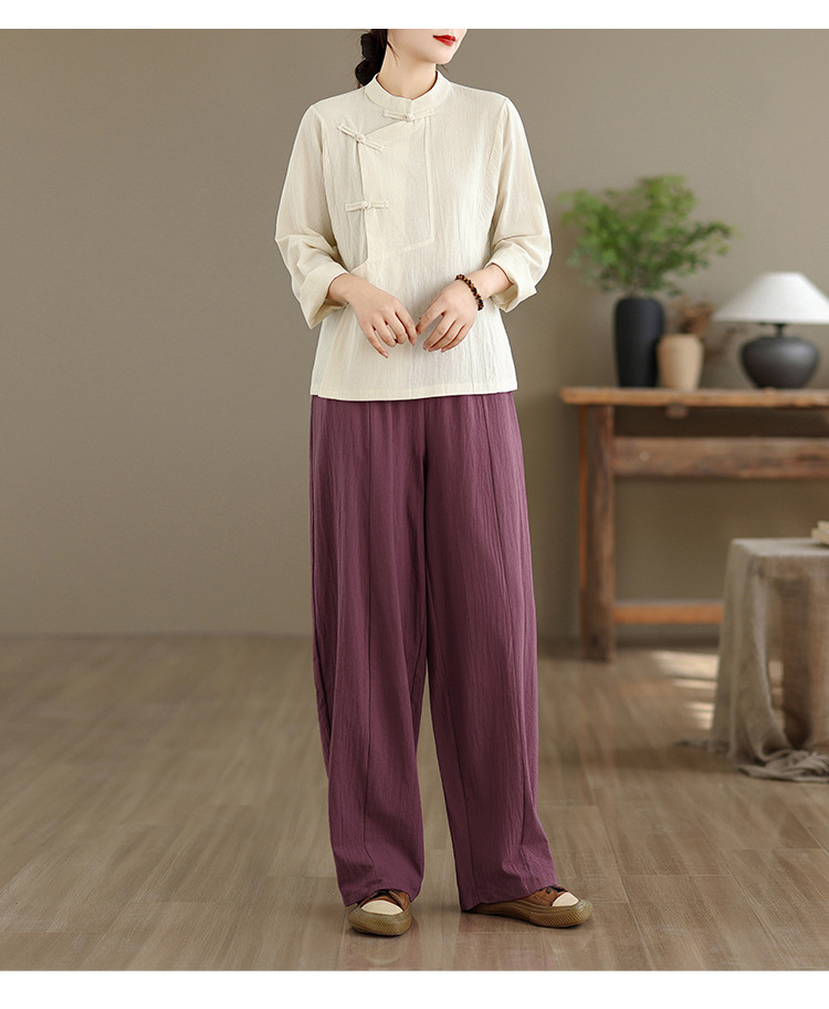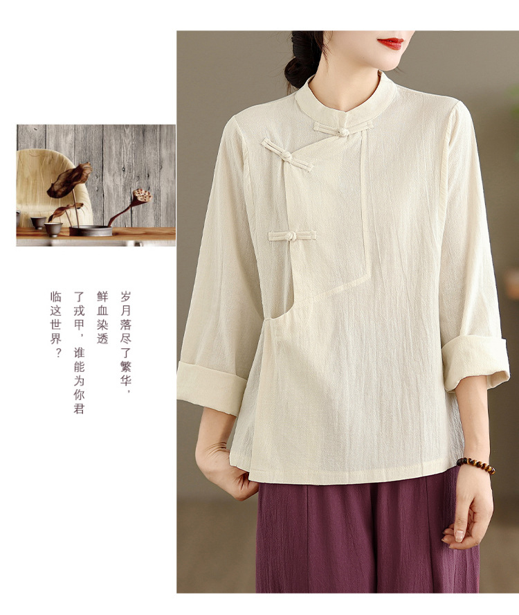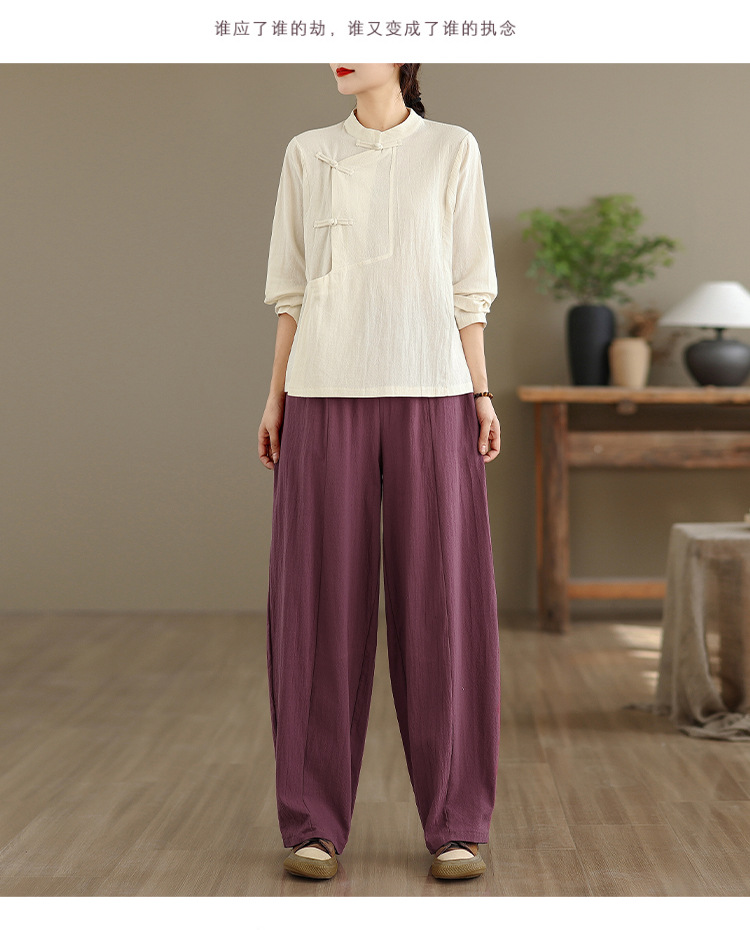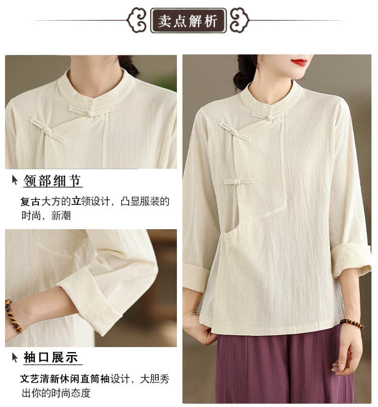 2025秋季新款复古民族风改良纯色文艺禅意茶服宽松长袖盘扣套装女