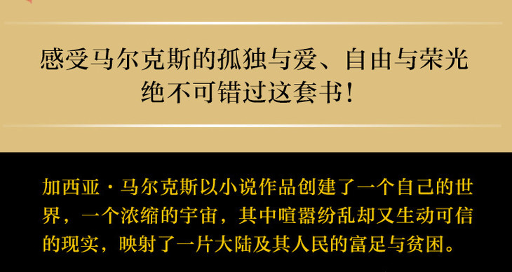 加西亚·马尔克斯(Gabriel García Márquez) 1927年出生于哥伦比亚马格达莱纳海滨小镇阿拉卡塔卡。童年与外祖父母一起生活。1936年随父母迁居苏克雷。1947年考入波哥大国立大学。1948年因内战辍学,进入报界。五十年代开始出版文学作品。六十年代初移居墨西哥。1967年出版《年孤独》。1975年《族长的秋天》问世。1982年获诺贝尔文学奖。2014年4月17日于墨西哥病逝。