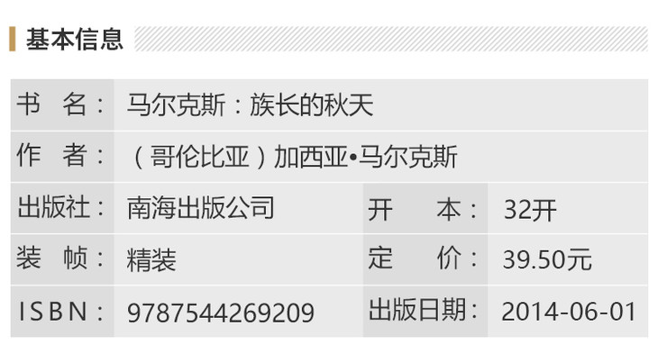 《族长的秋天》是诺贝尔文学奖得主加西亚马尔克斯文学成就的杰作,它将《年孤独》《霍乱时期的爱情》等作品浓缩在其中,将魔幻现实主义发挥到,被誉为“近50年所有语种里的小说”。