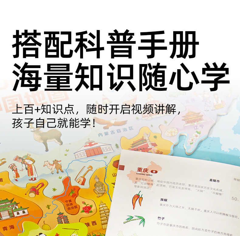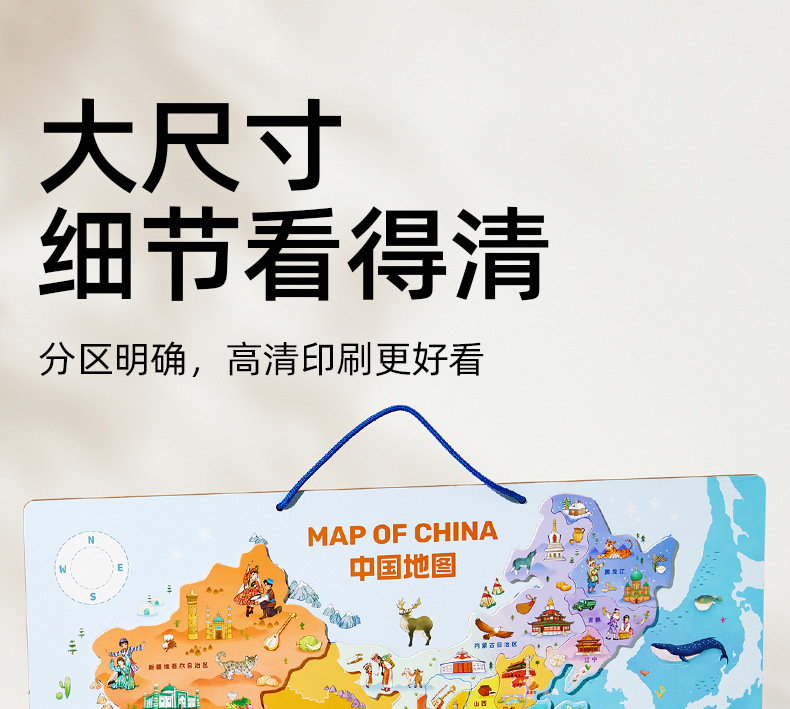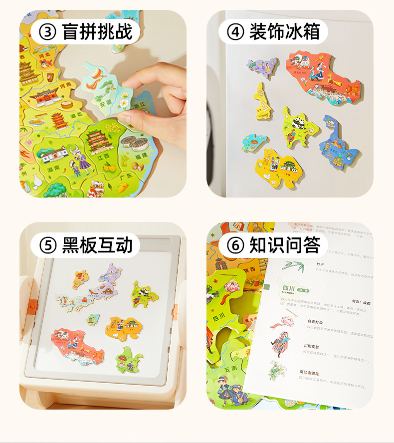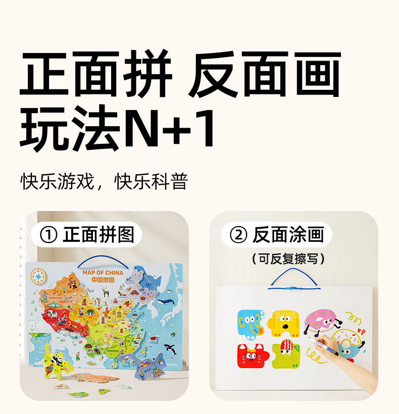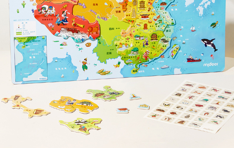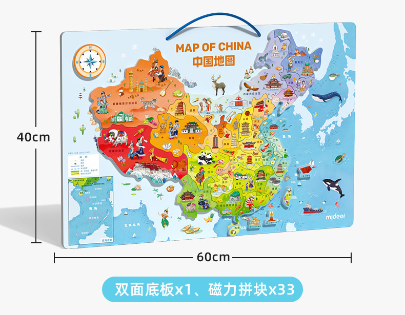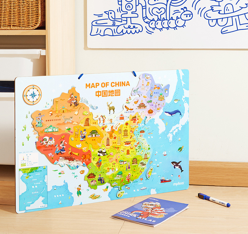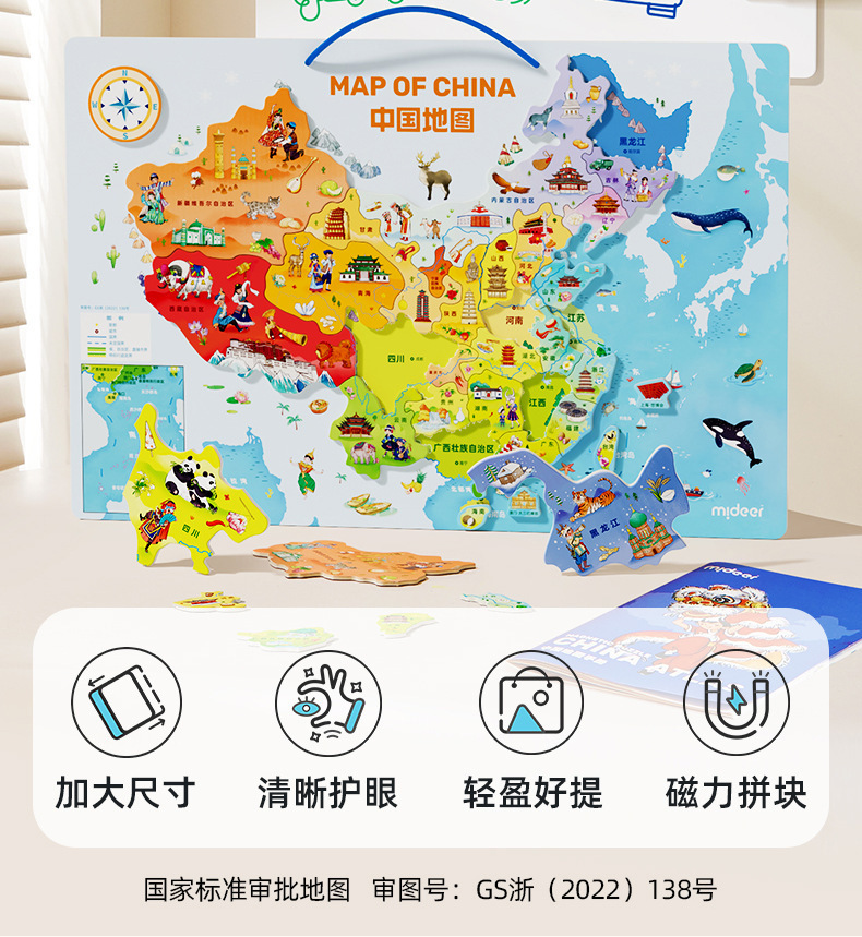 弥鹿Mideer儿童磁性中国地图磁力拼图立体木质地理拼板早教认知