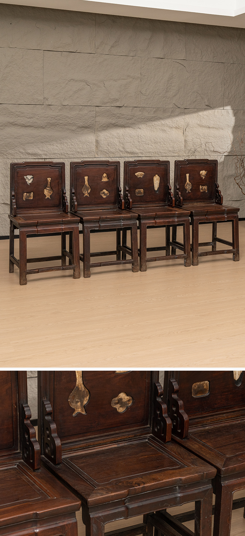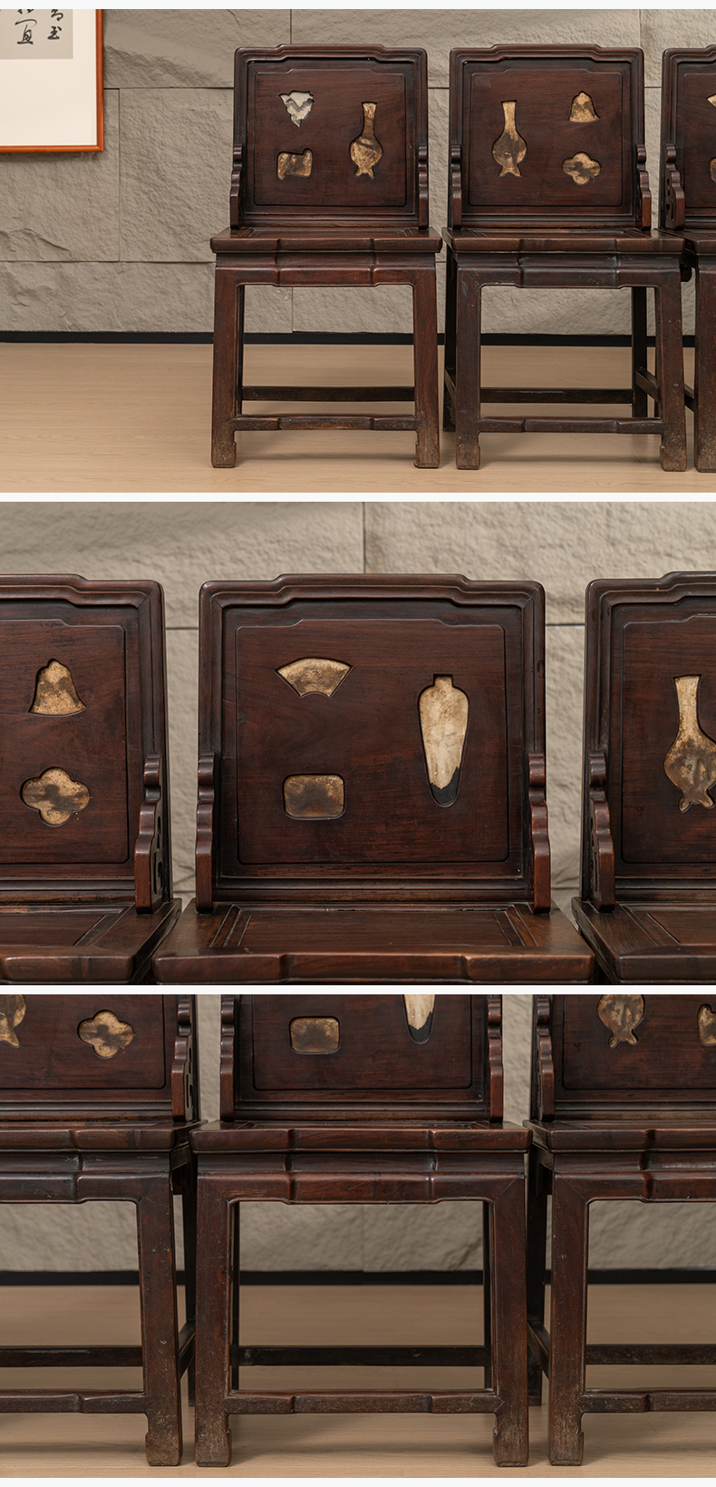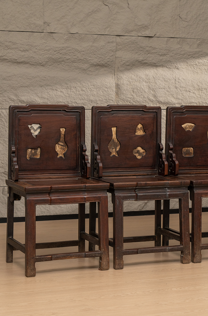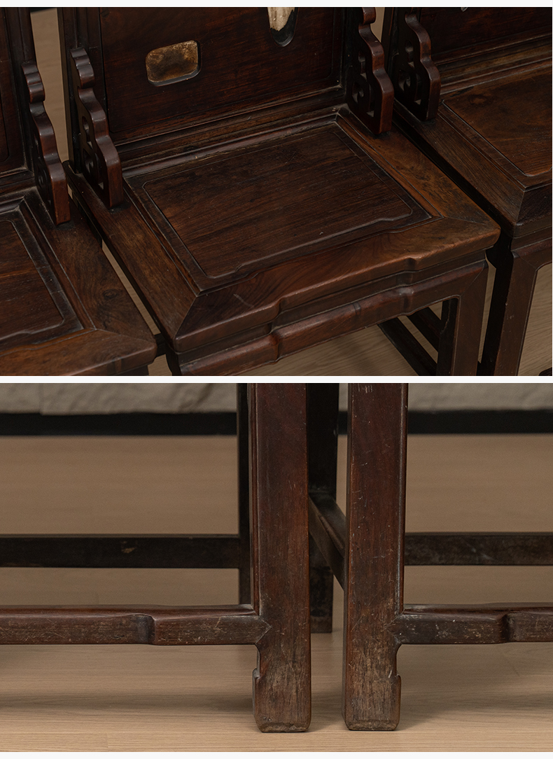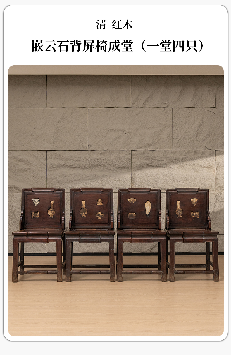 清 红木嵌云石背屏椅成堂(一堂四只)