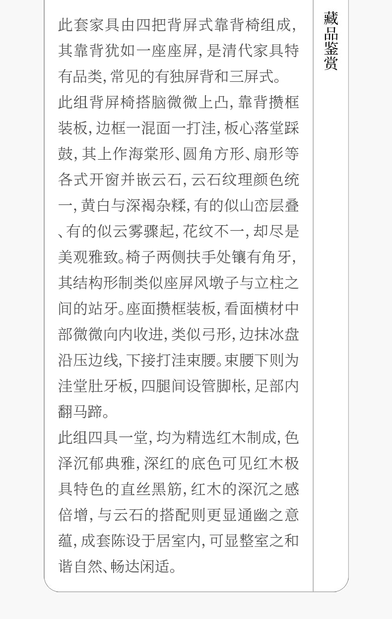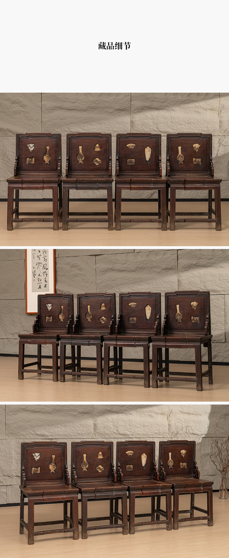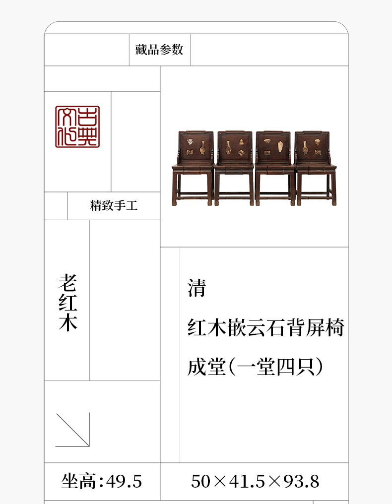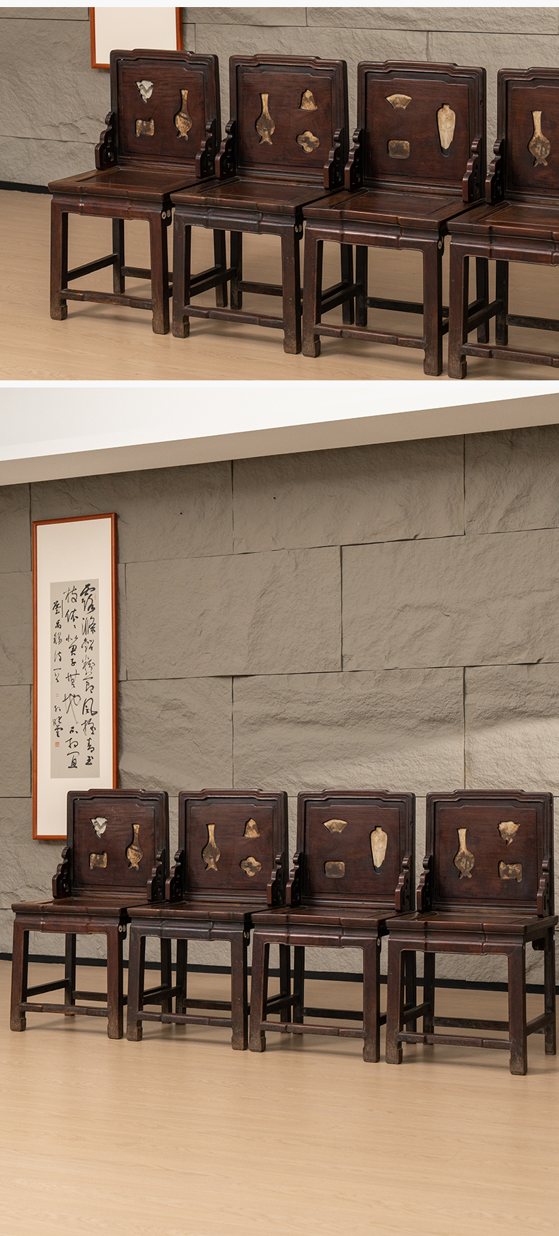 清 红木嵌云石背屏椅成堂(一堂四只)