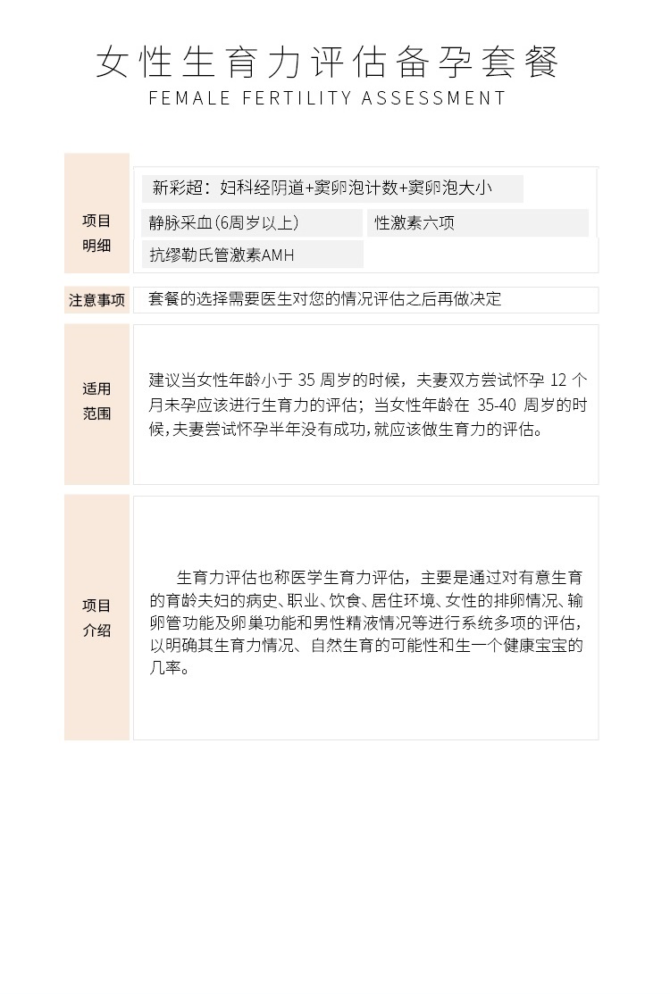 女性生育力评估备孕套餐