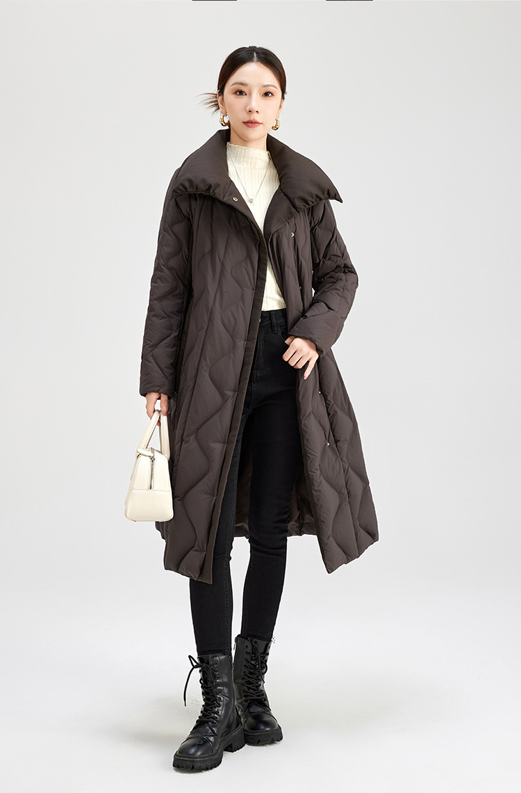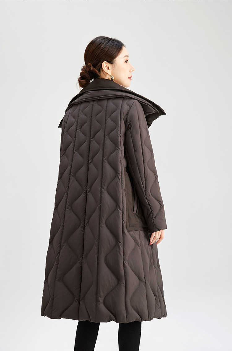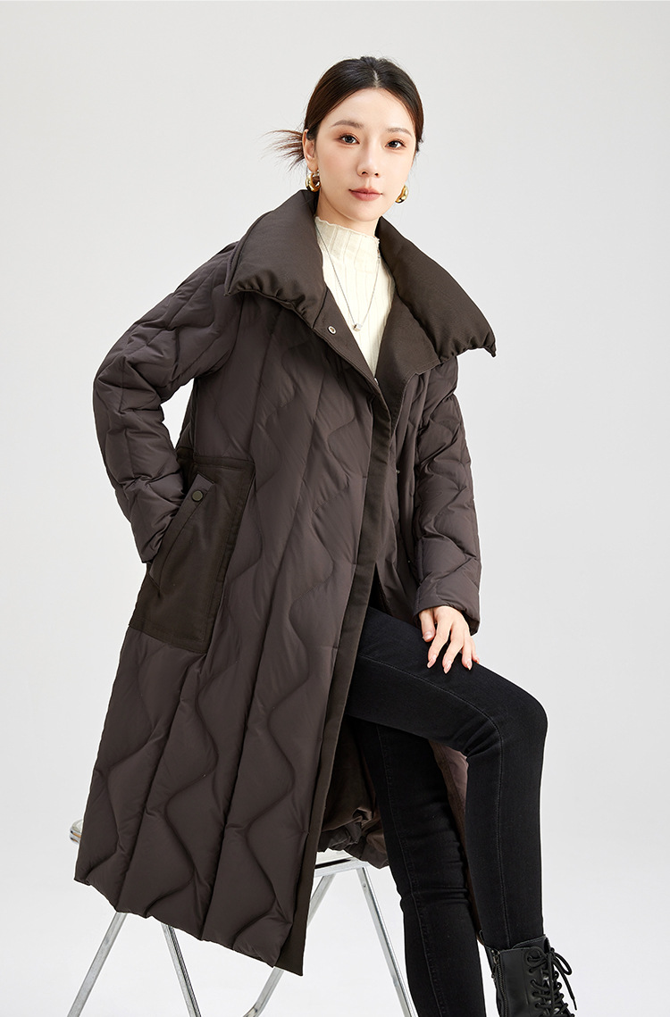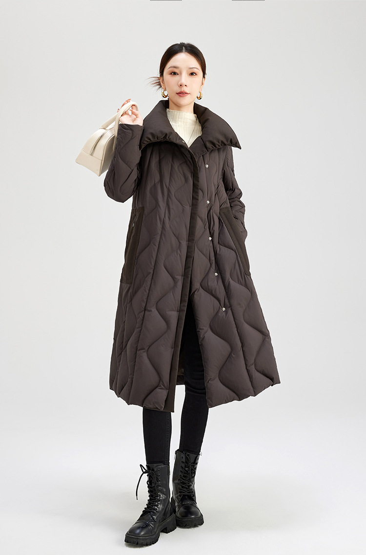 QS冬季新款鹅绒服宽松过膝加厚中长款保暖日常通勤款纯色外套女0039