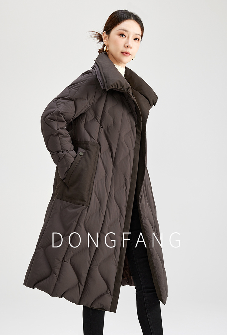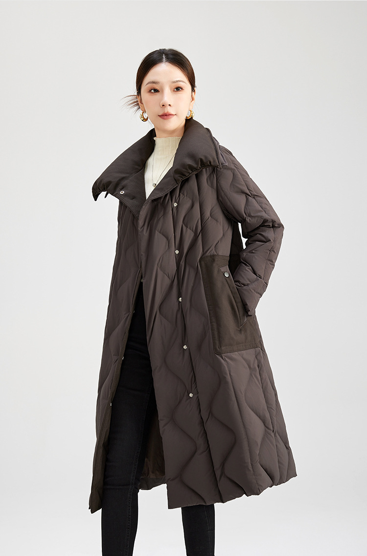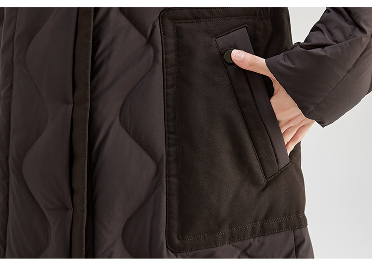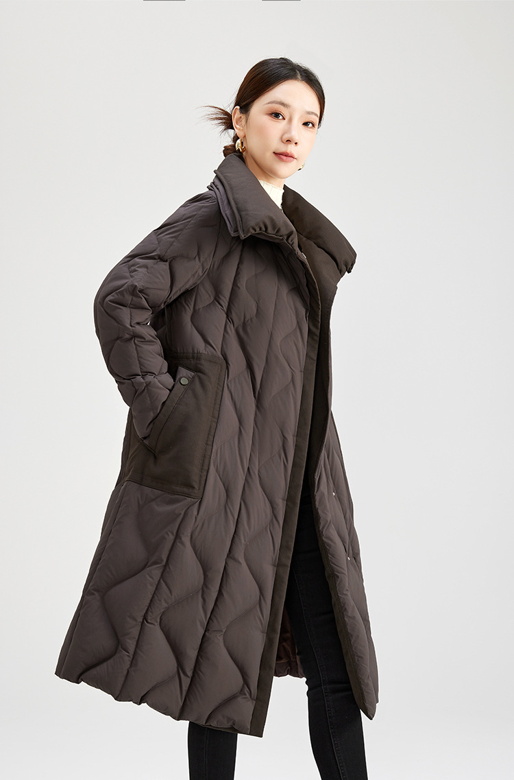 QS冬季新款鹅绒服宽松过膝加厚中长款保暖日常通勤款纯色外套女0039