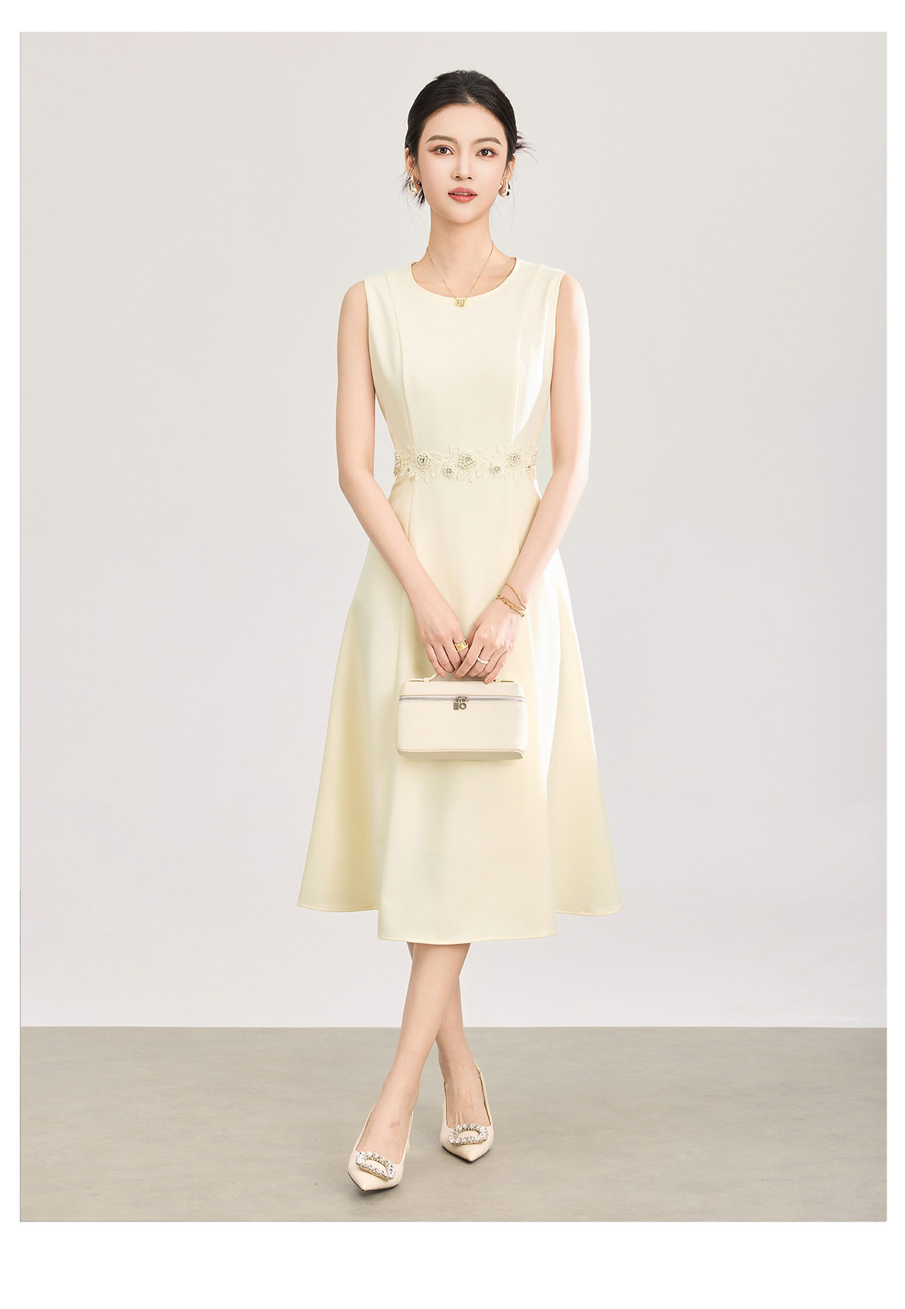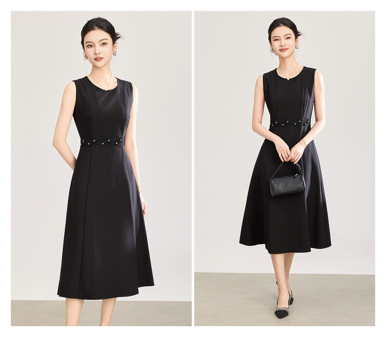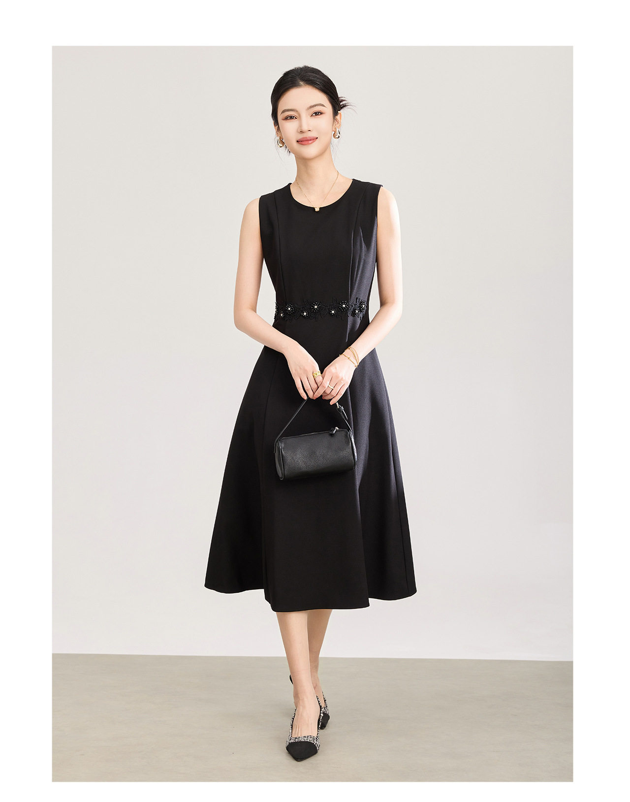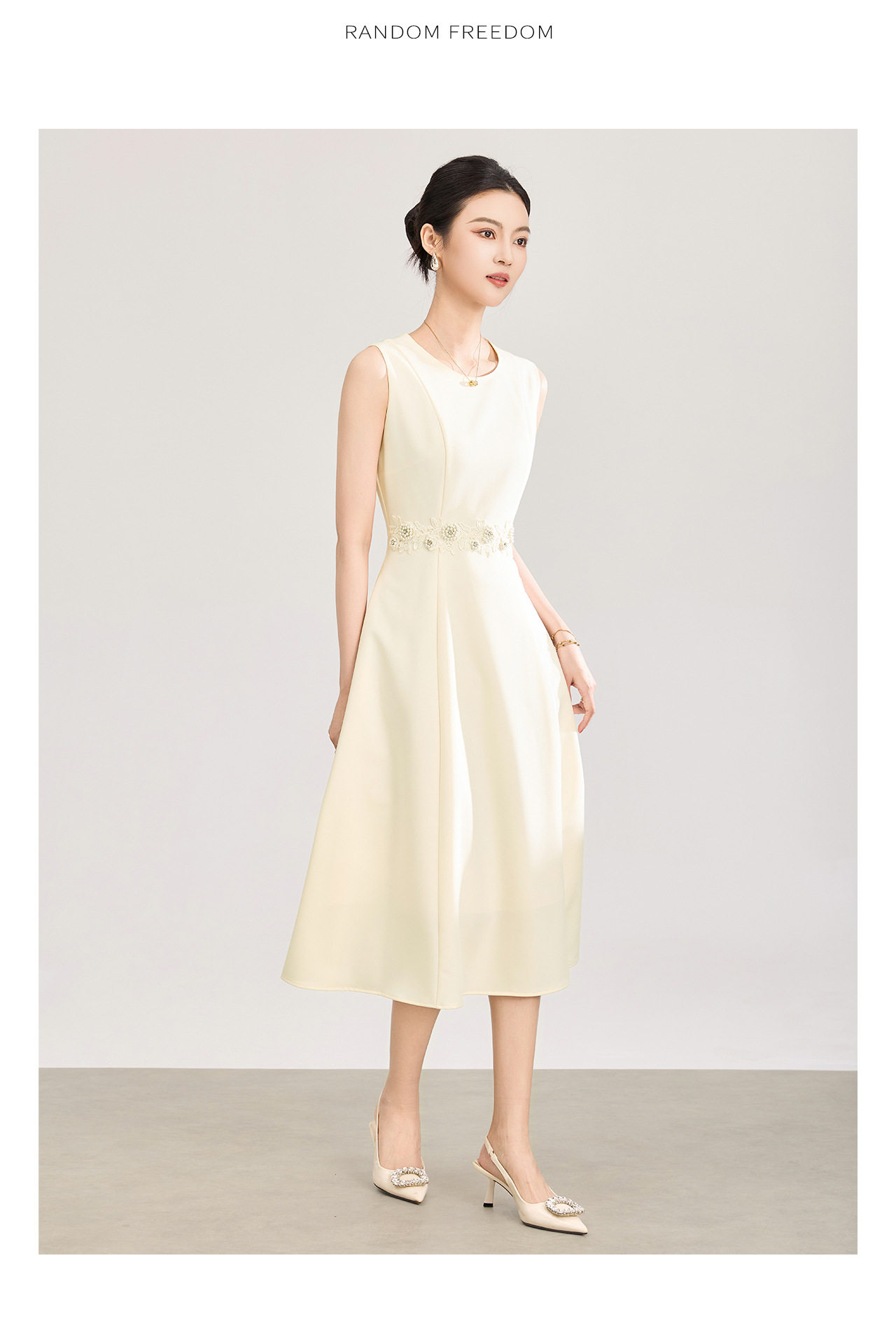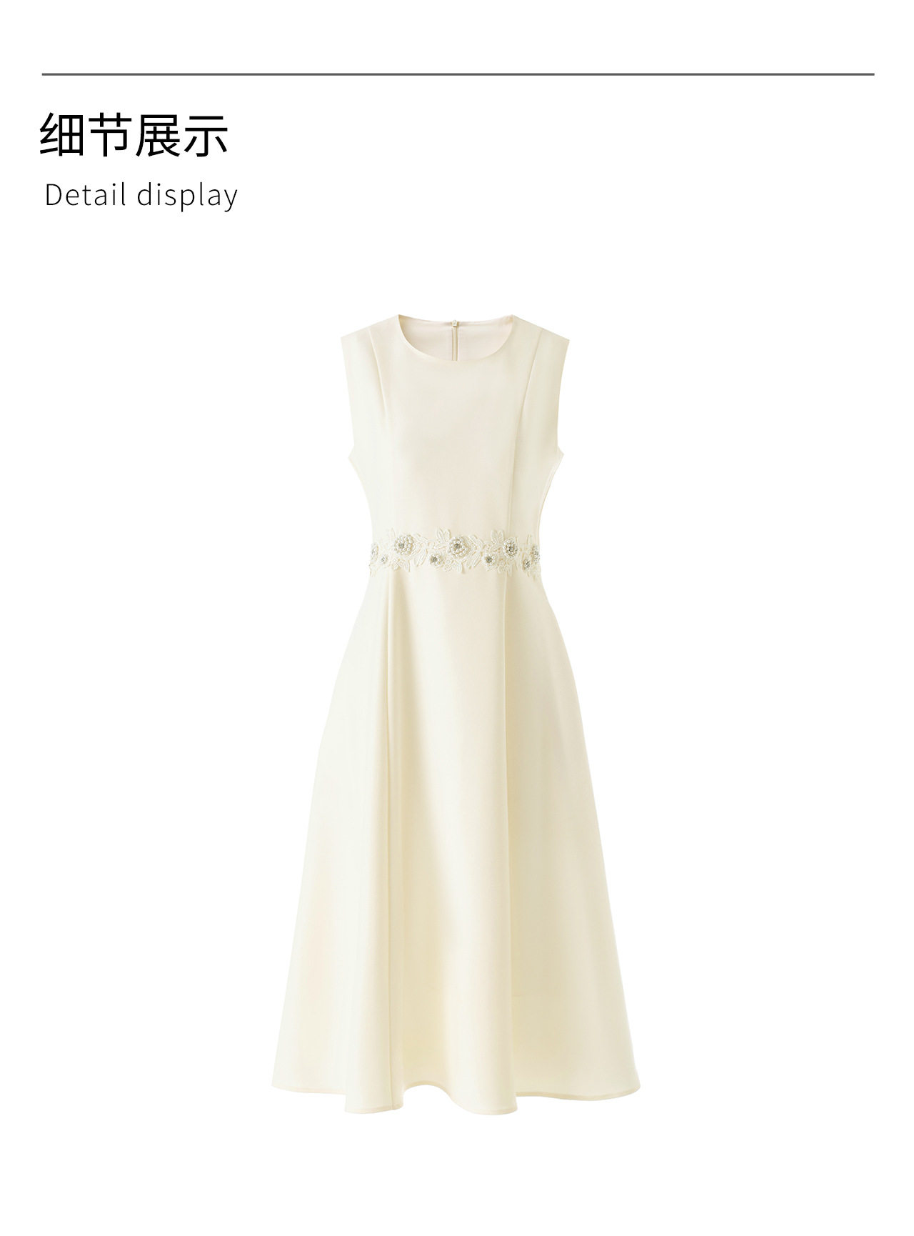 「高货wl」全新升级【铂金会员358/天猫479/差价121】(03348)洛诗琳重工腰部钉珠刺绣连衣裙2026夏季圆领通勤收腰A字裙