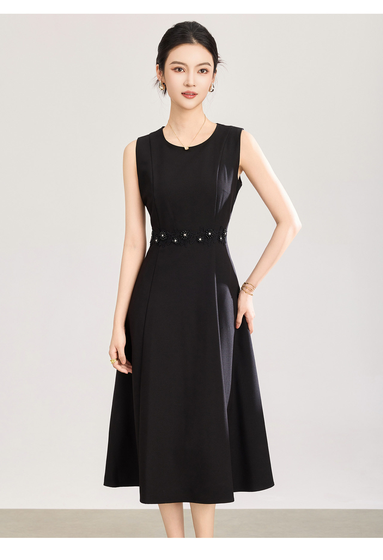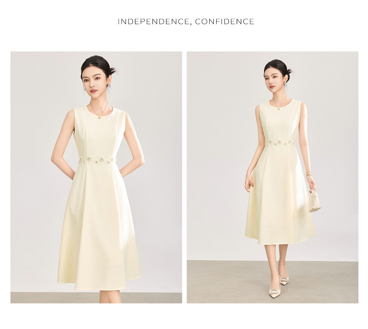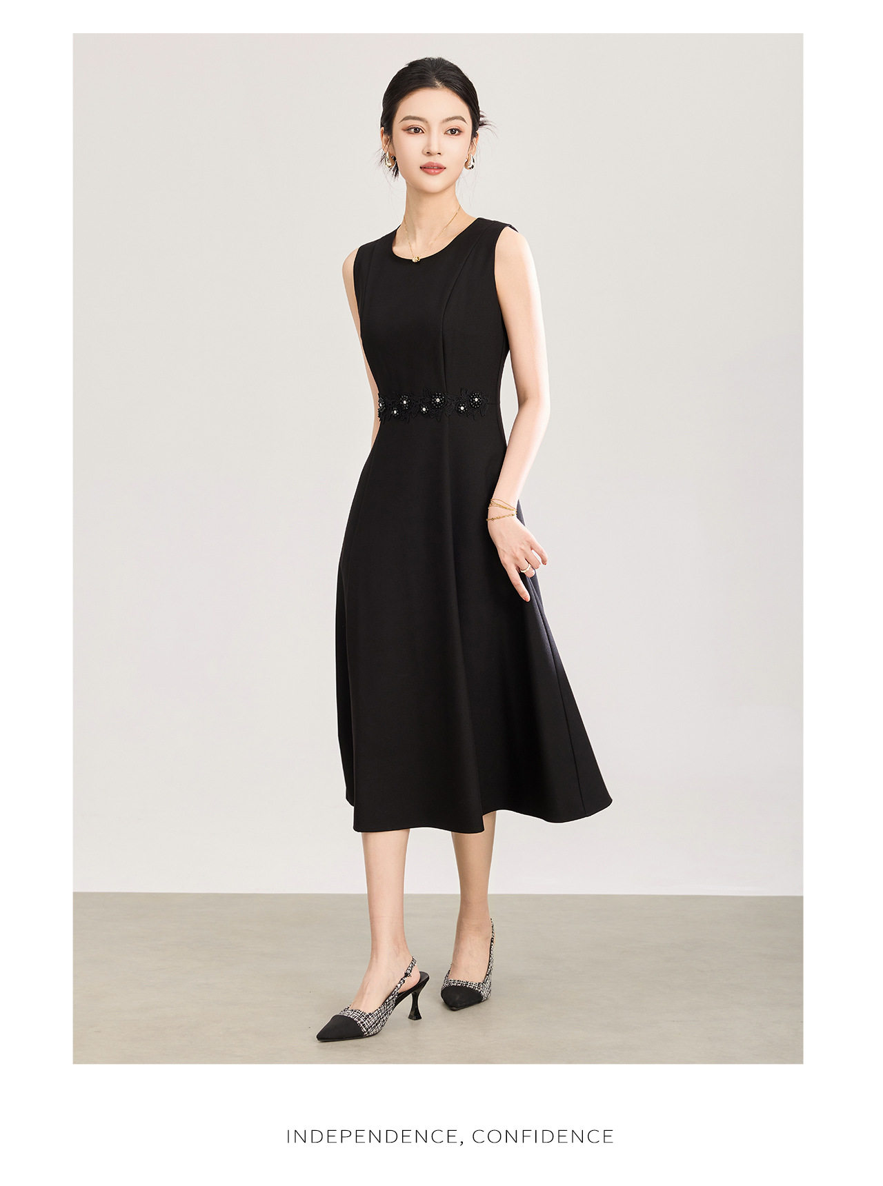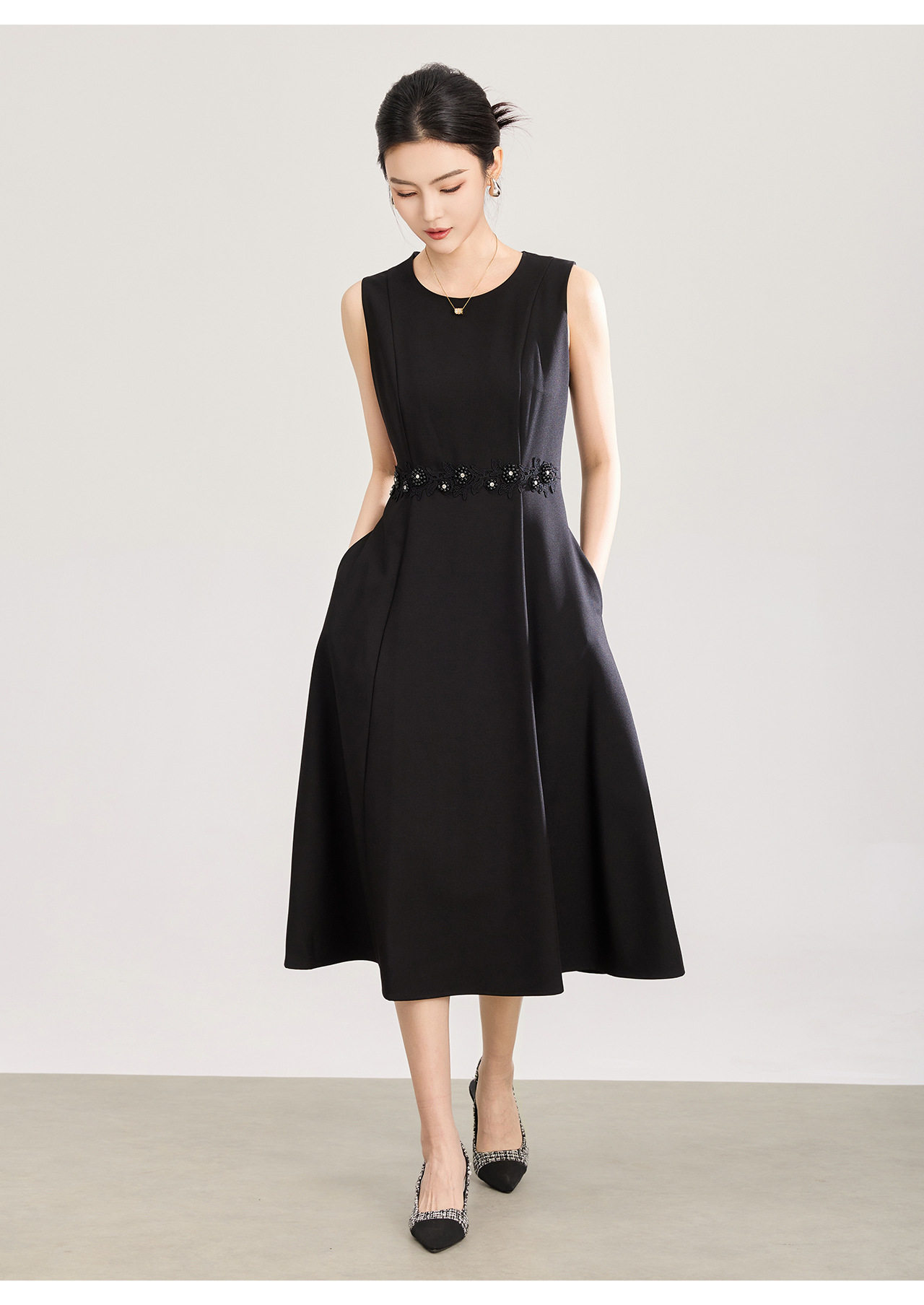 「高货wl」全新升级【铂金会员358/天猫479/差价121】(03348)洛诗琳重工腰部钉珠刺绣连衣裙2026夏季圆领通勤收腰A字裙