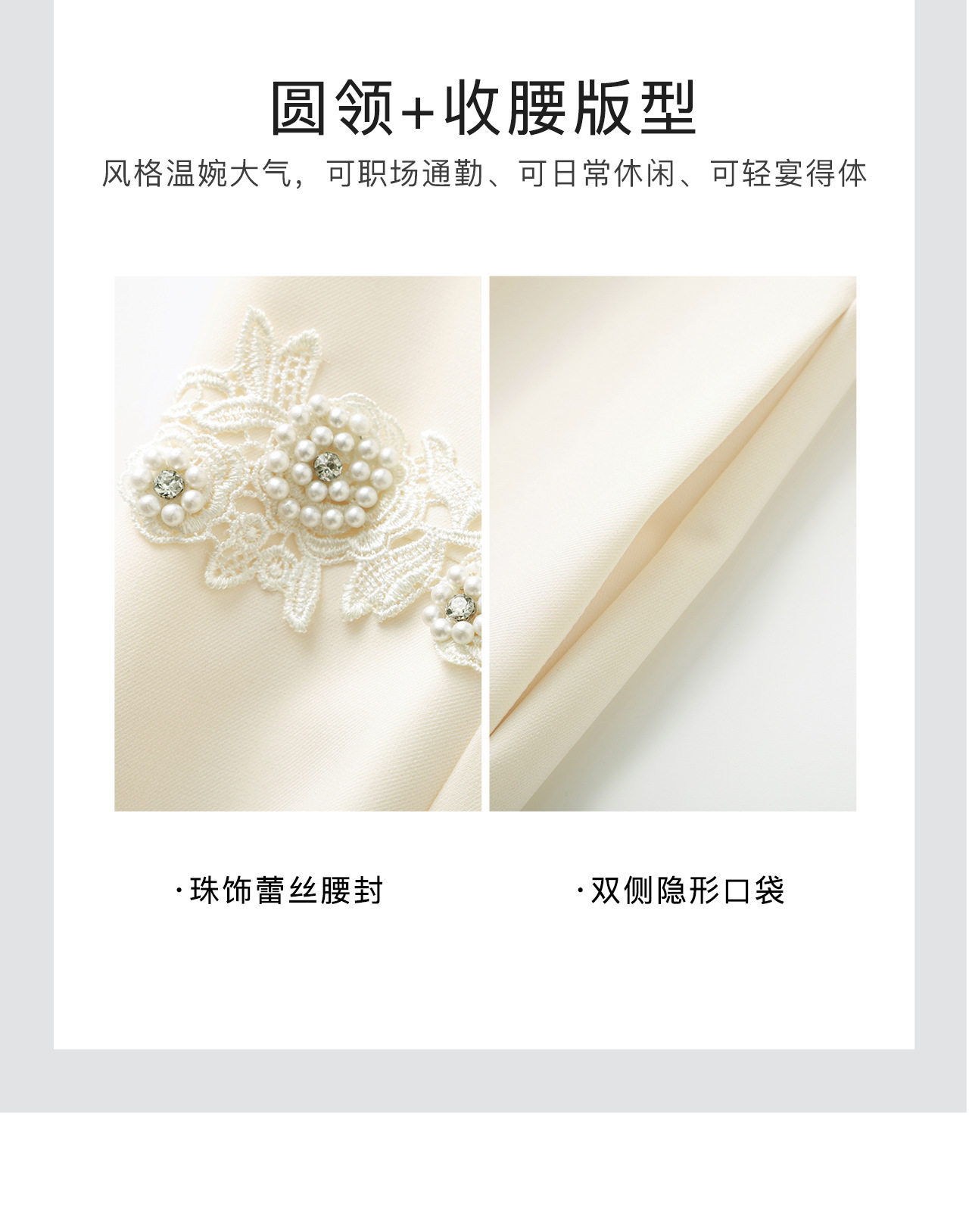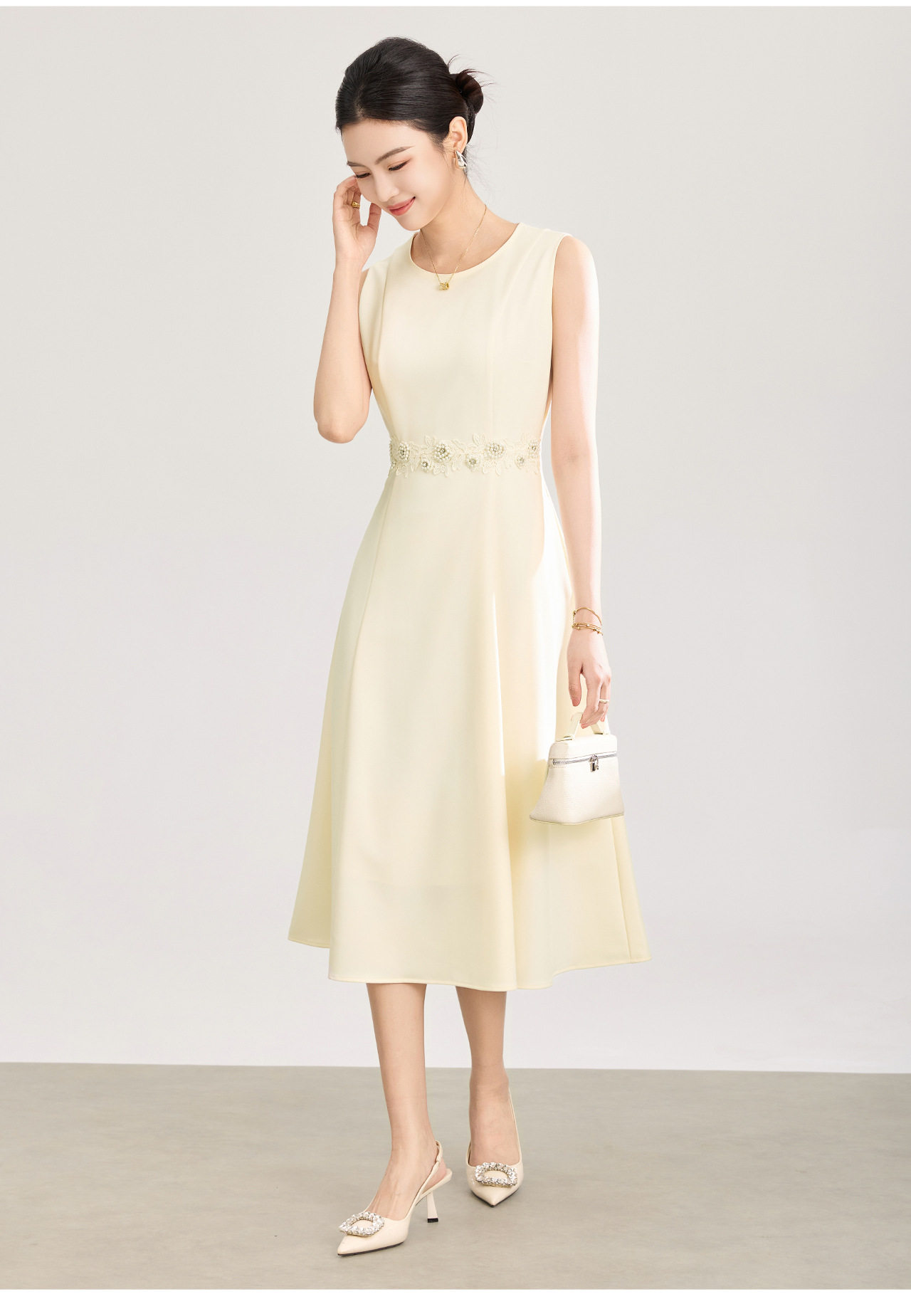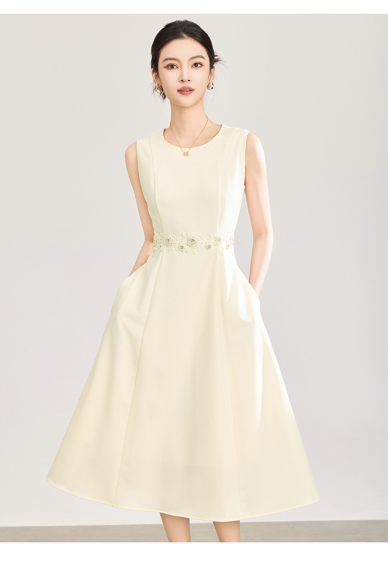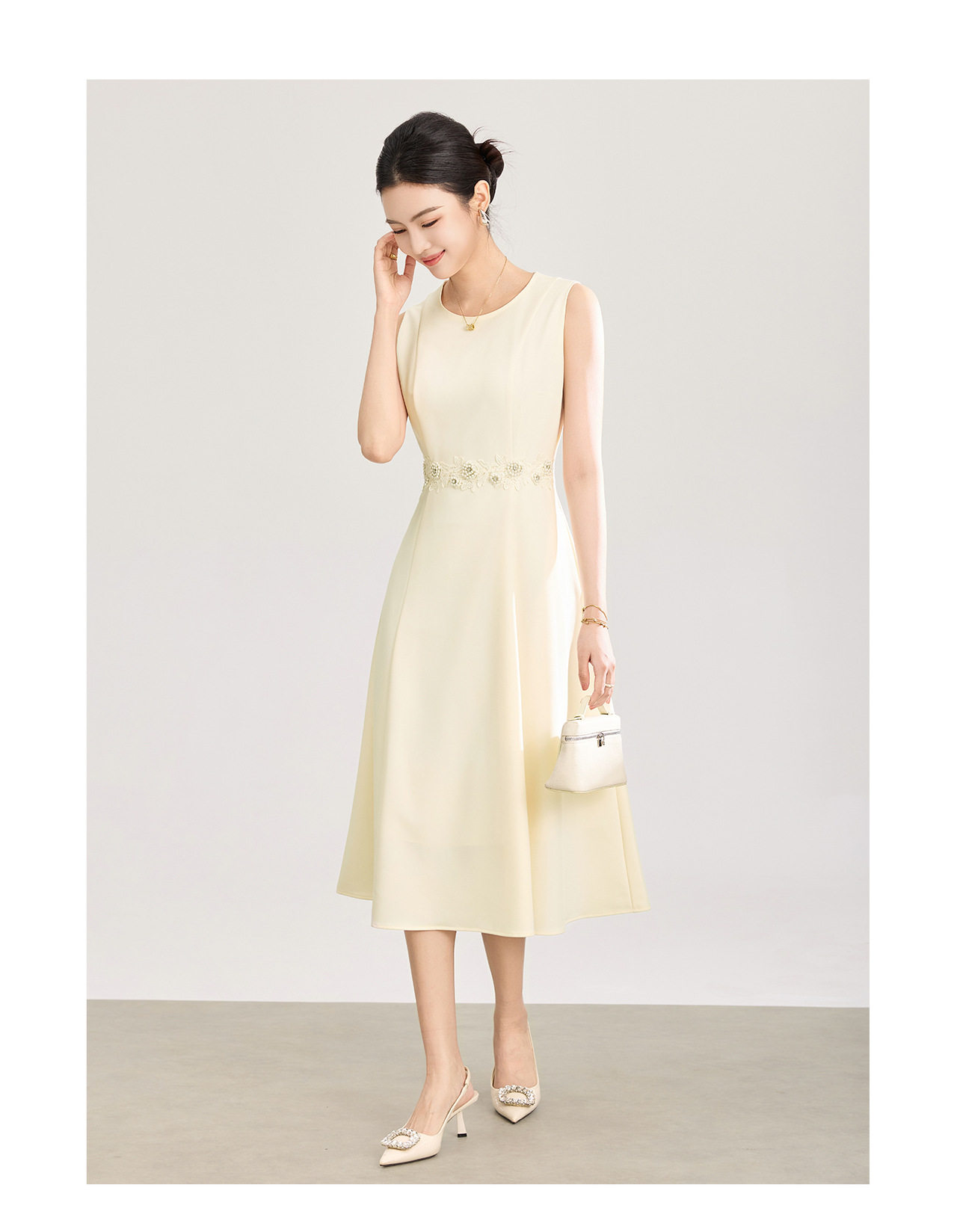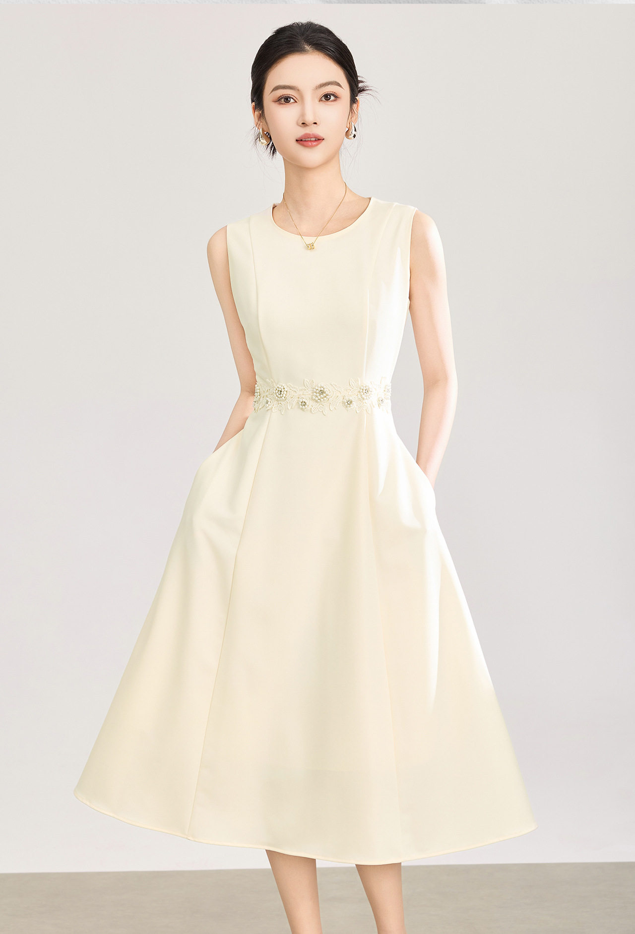「高货wl」全新升级【铂金会员358/天猫479/差价121】(03348)洛诗琳重工腰部钉珠刺绣连衣裙2026夏季圆领通勤收腰A字裙