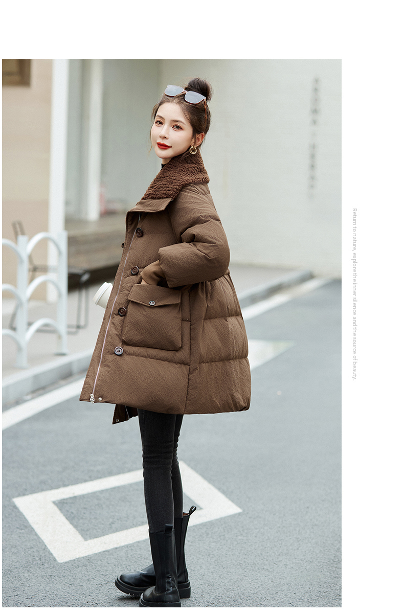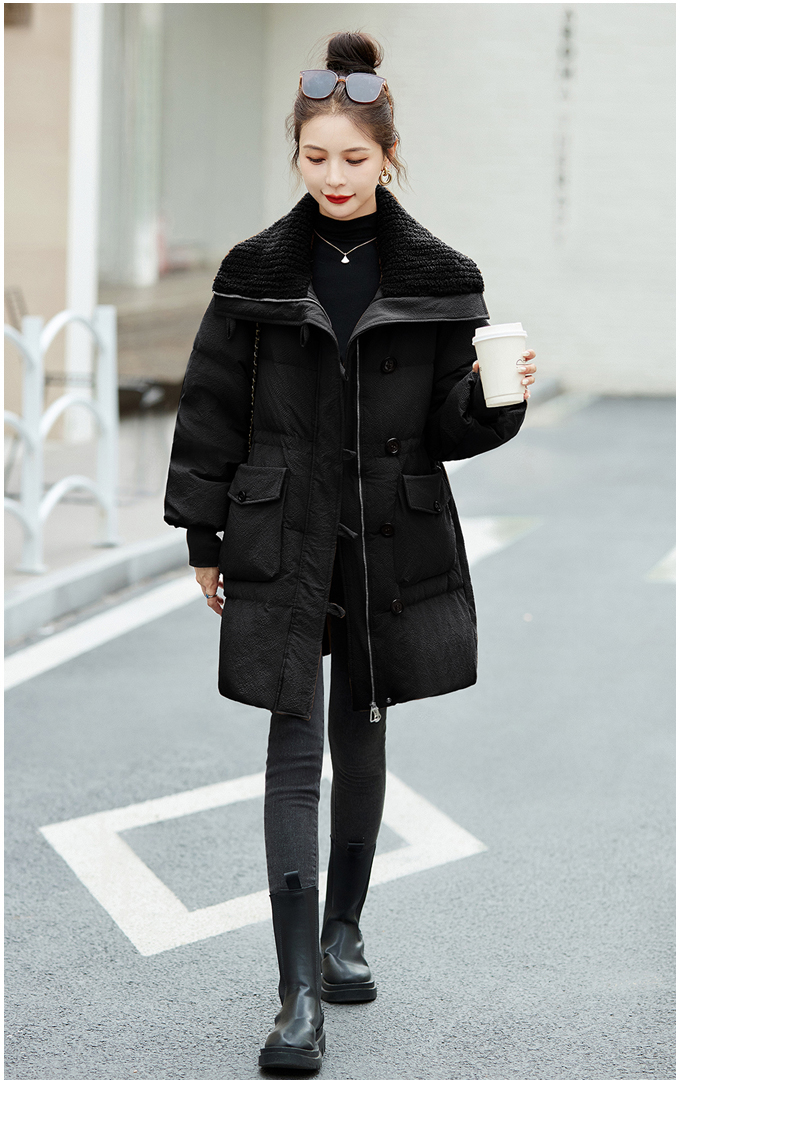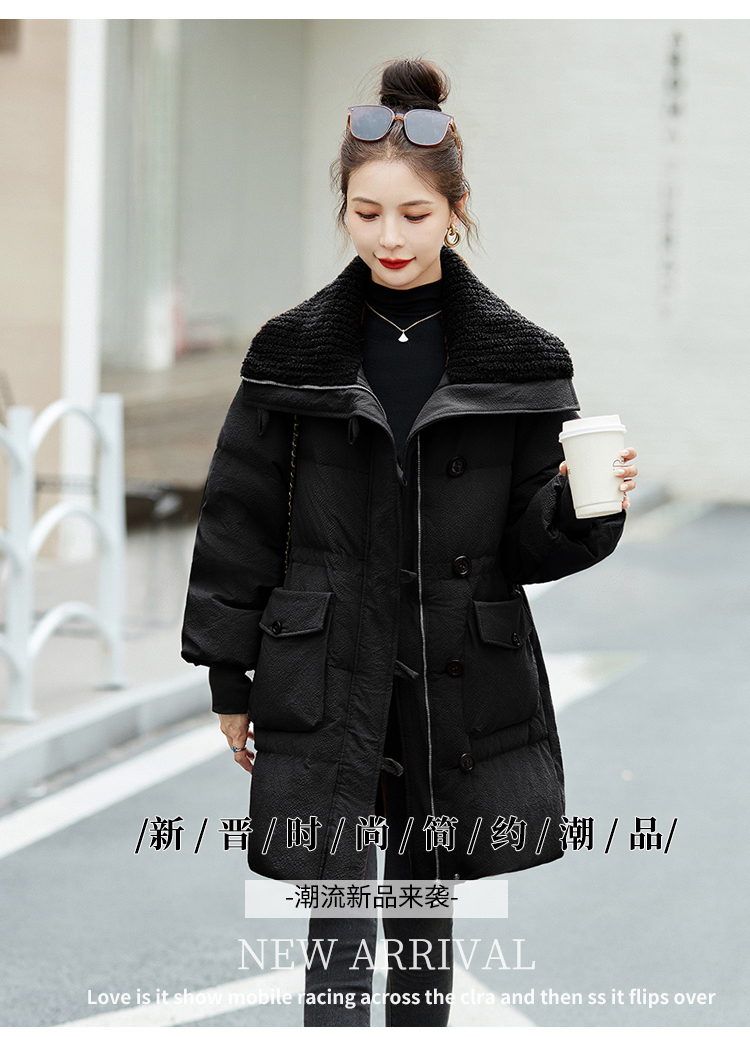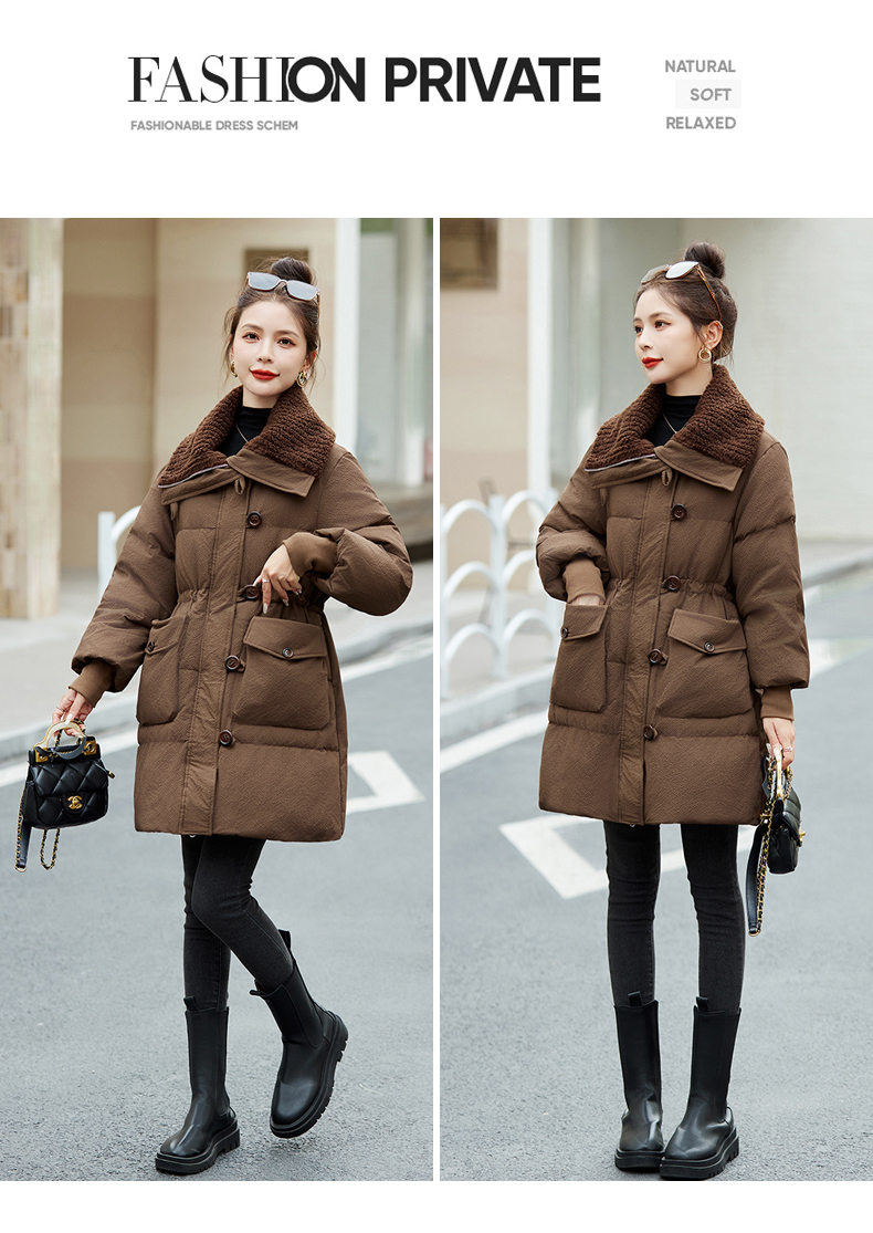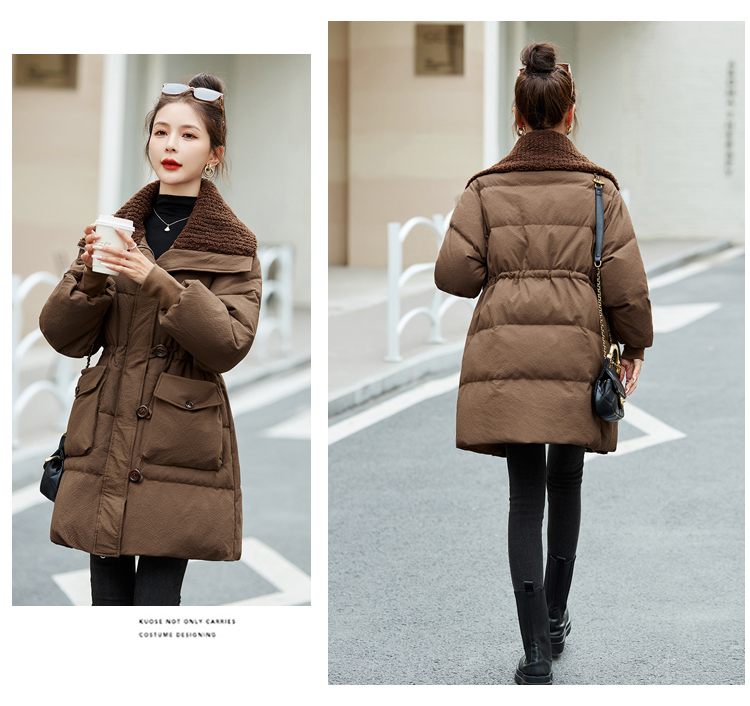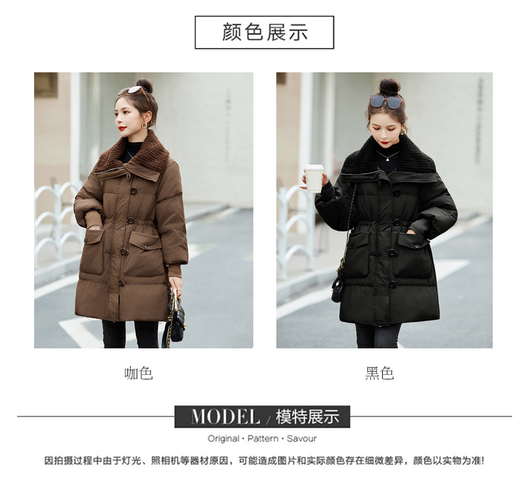 冬季新款,小个子羽绒服女针织大翻领中长款白鸭绒外套HR-XMR2511