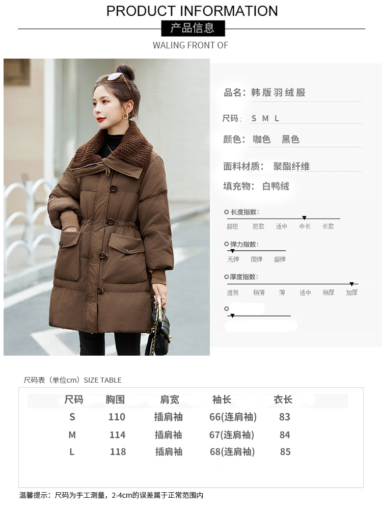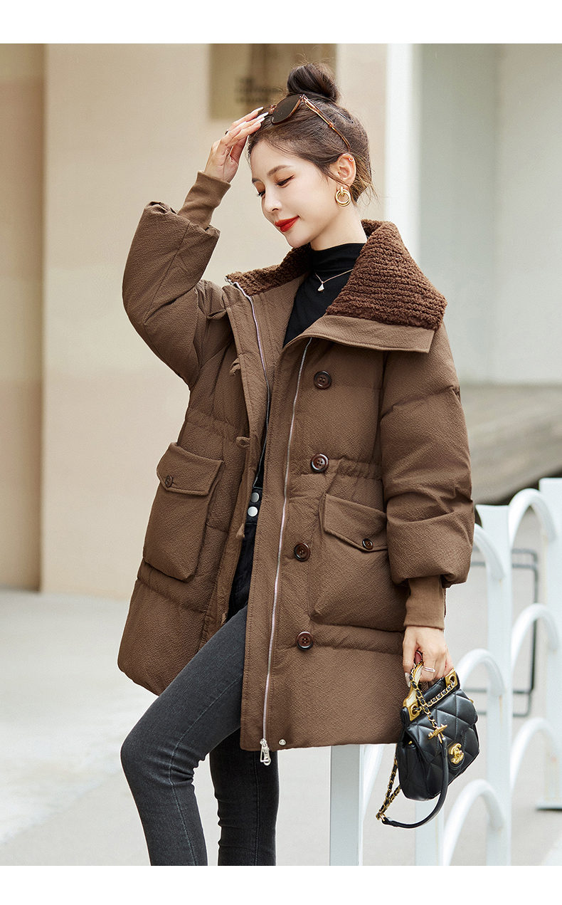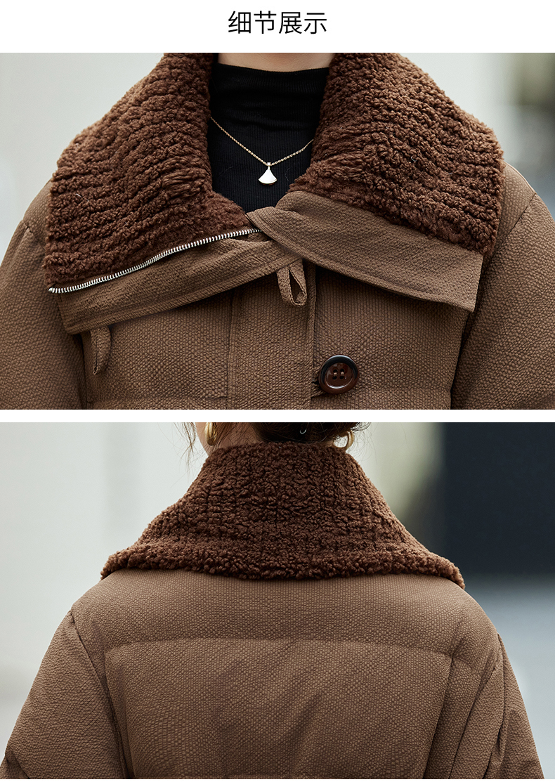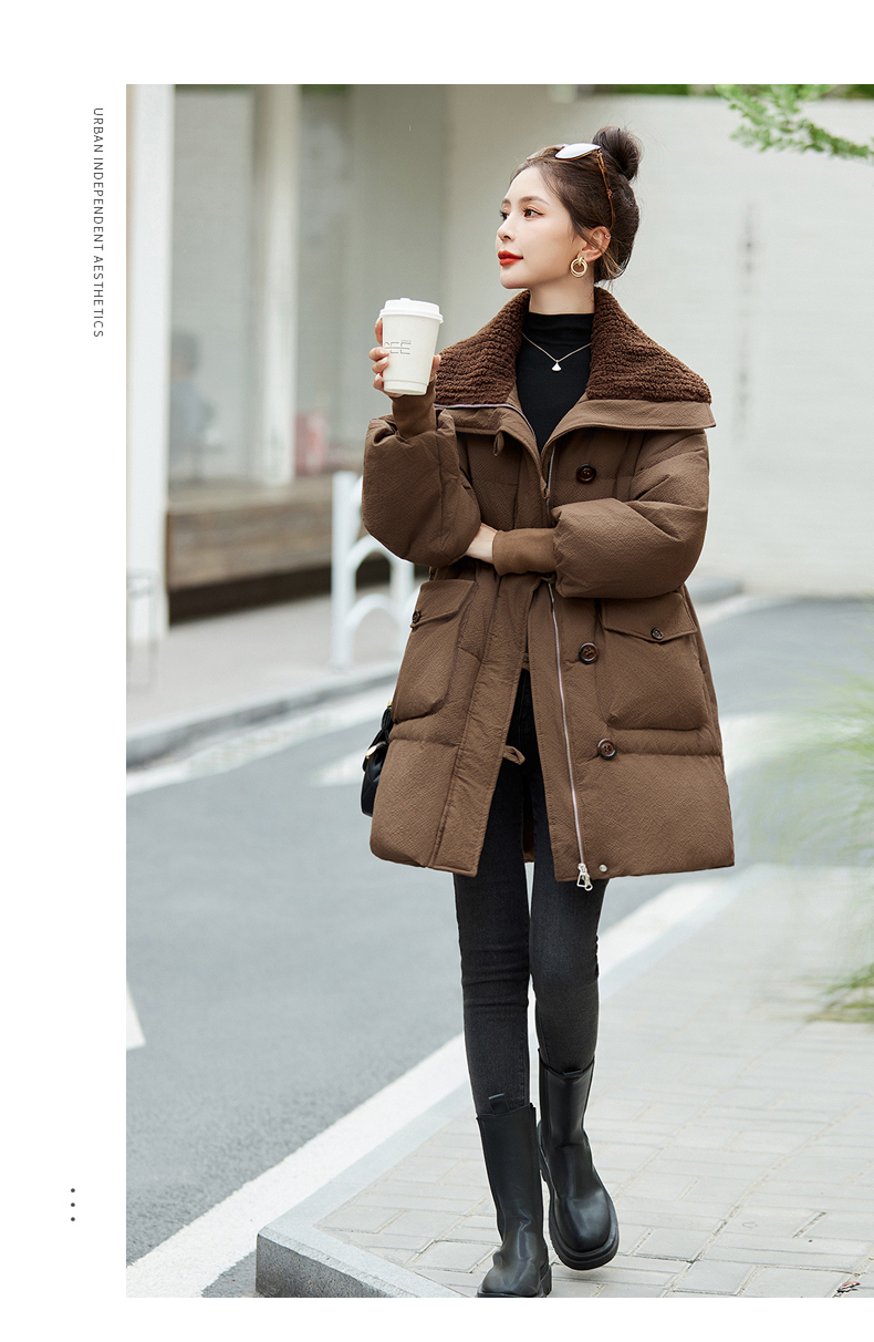 冬季新款,小个子羽绒服女针织大翻领中长款白鸭绒外套HR-XMR2511