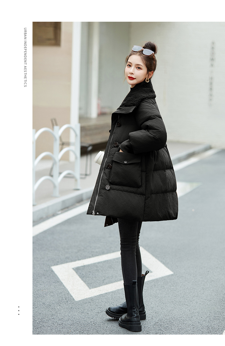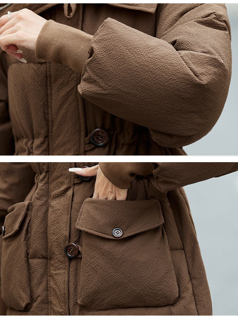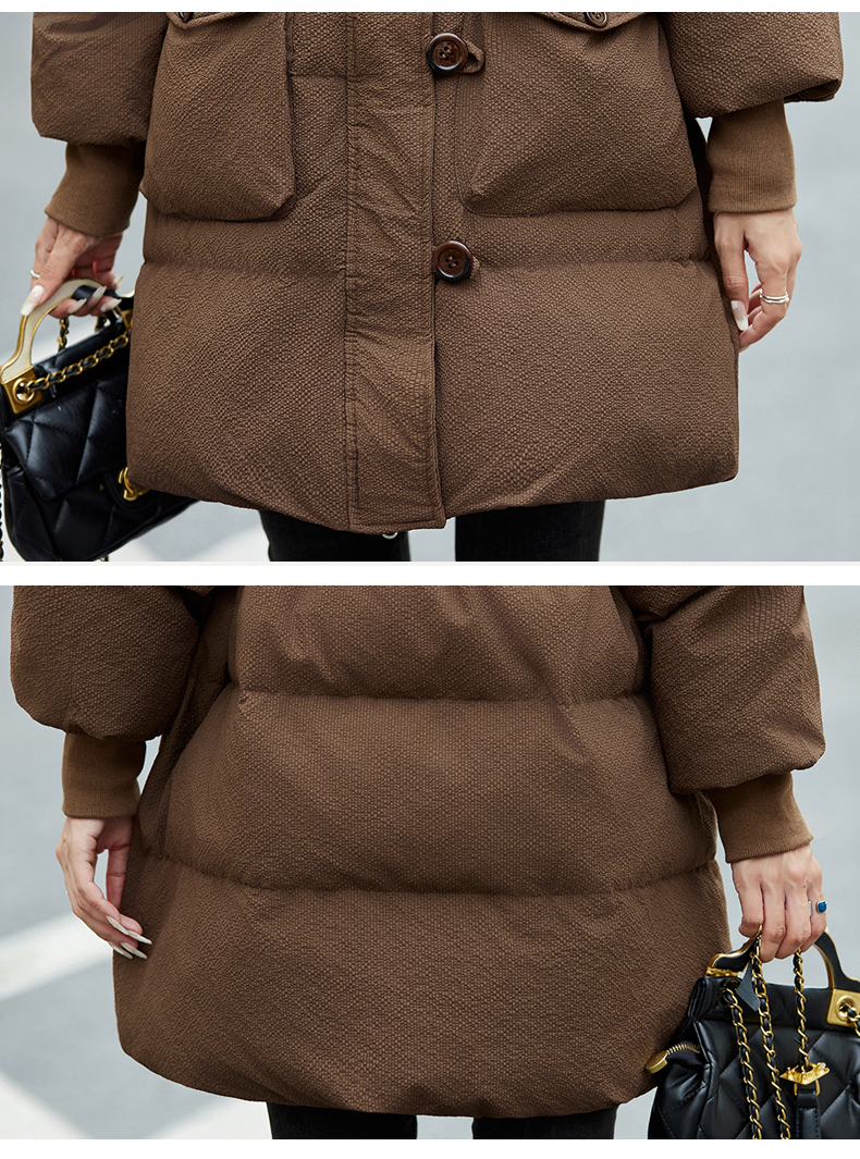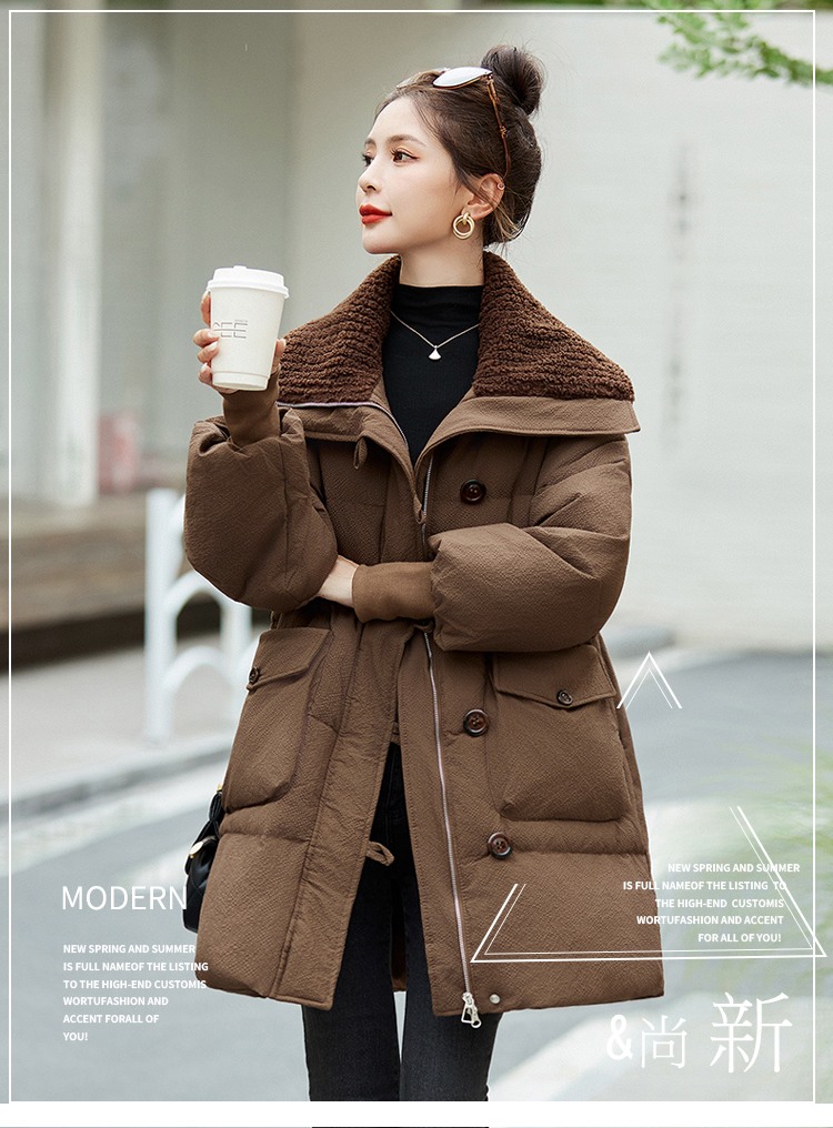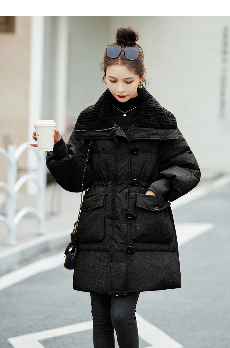冬季新款,小个子羽绒服女针织大翻领中长款白鸭绒外套HR-XMR2511