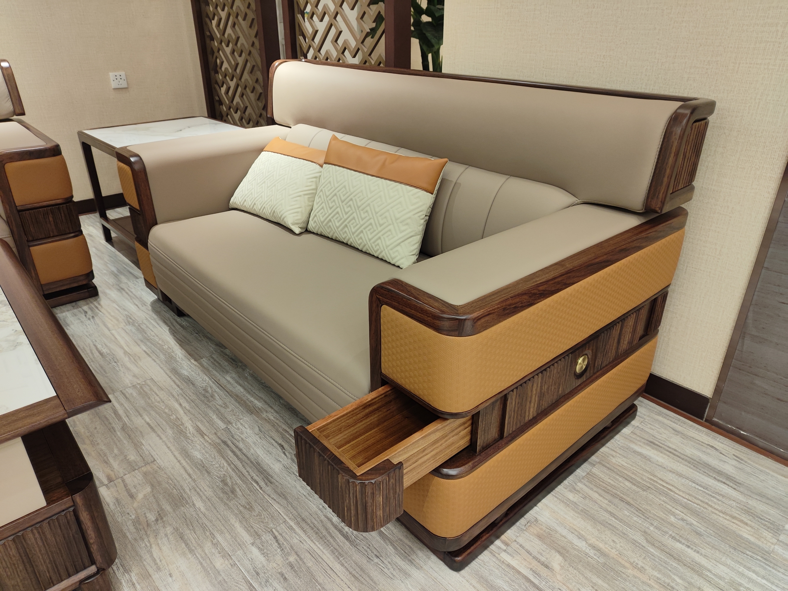 花织靠背皮沙发/F680