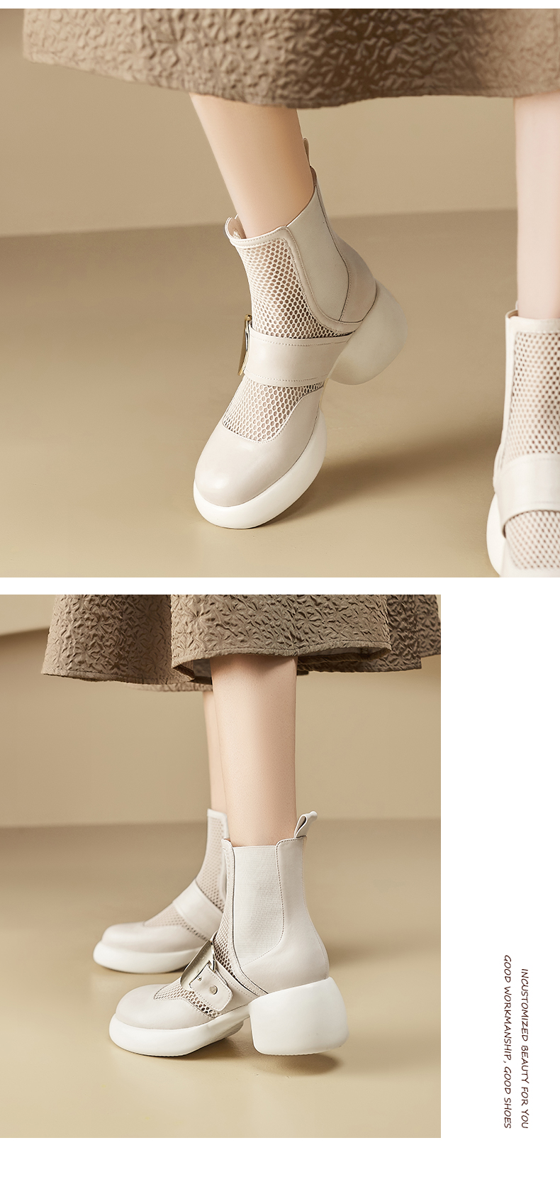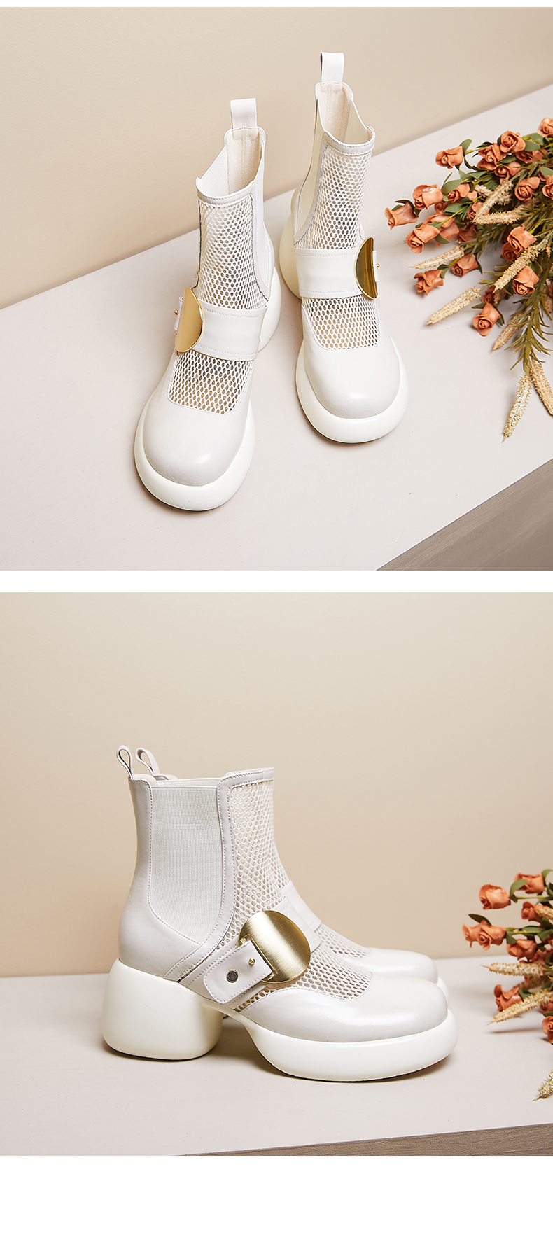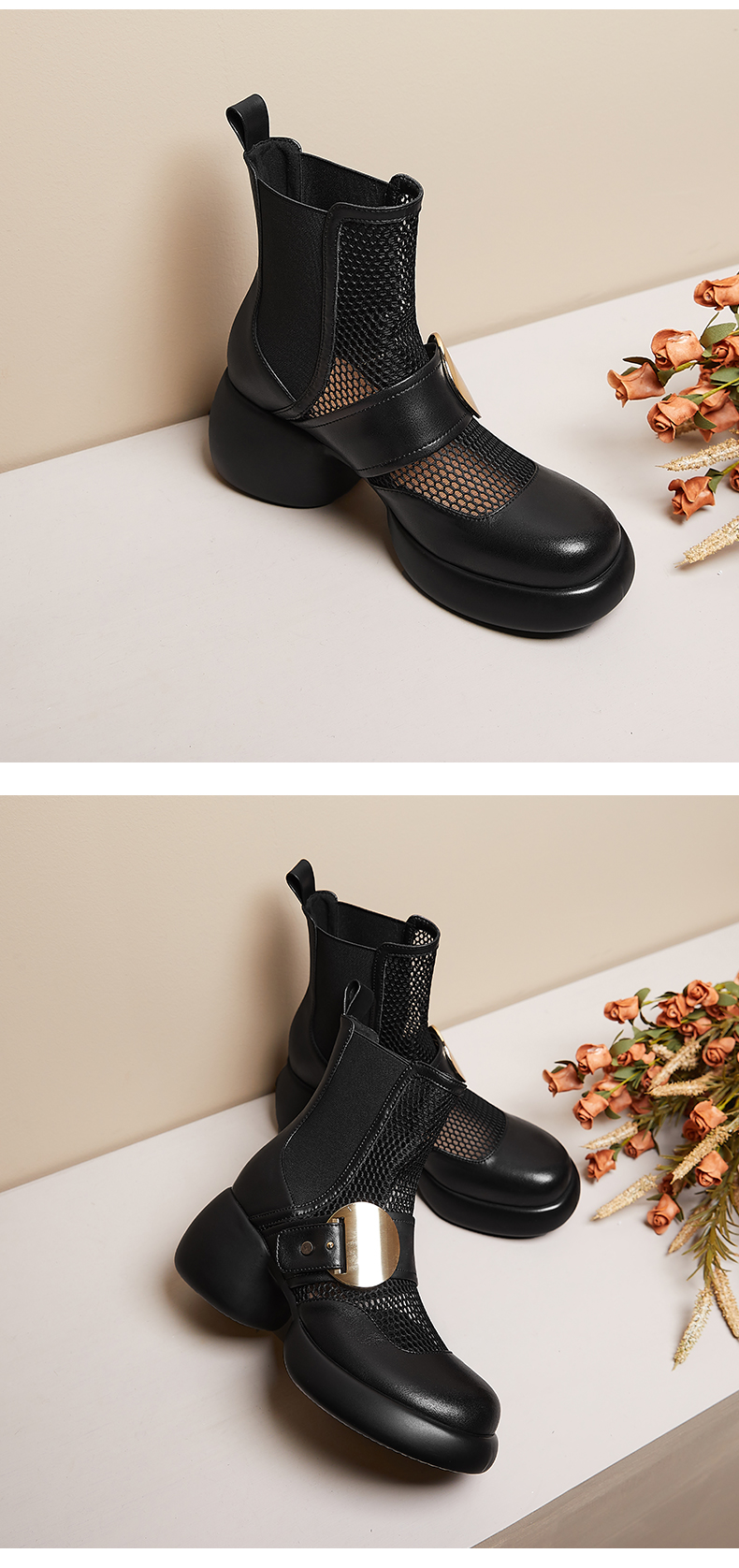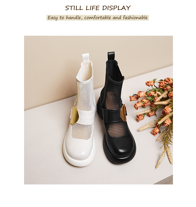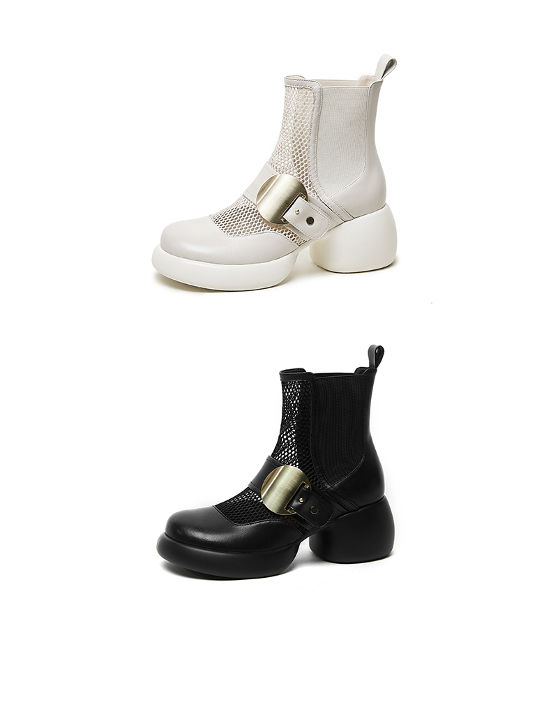 春季新款,时尚个性厚底粗跟网纱拼接短靴CZ410