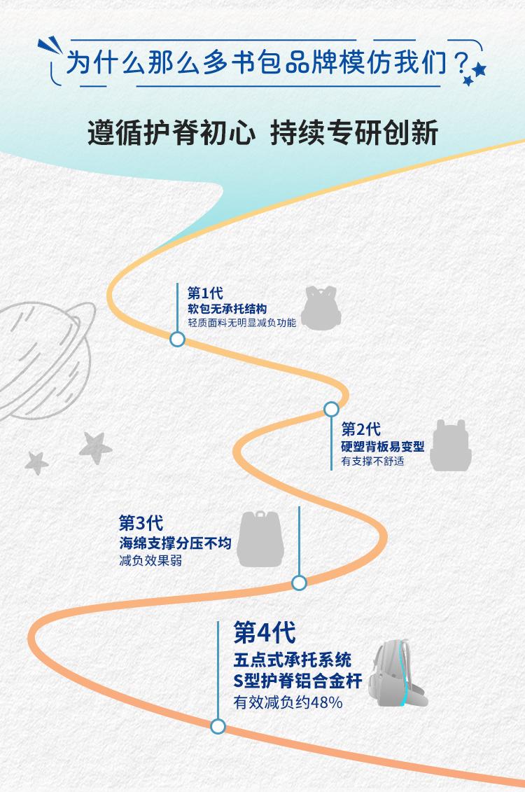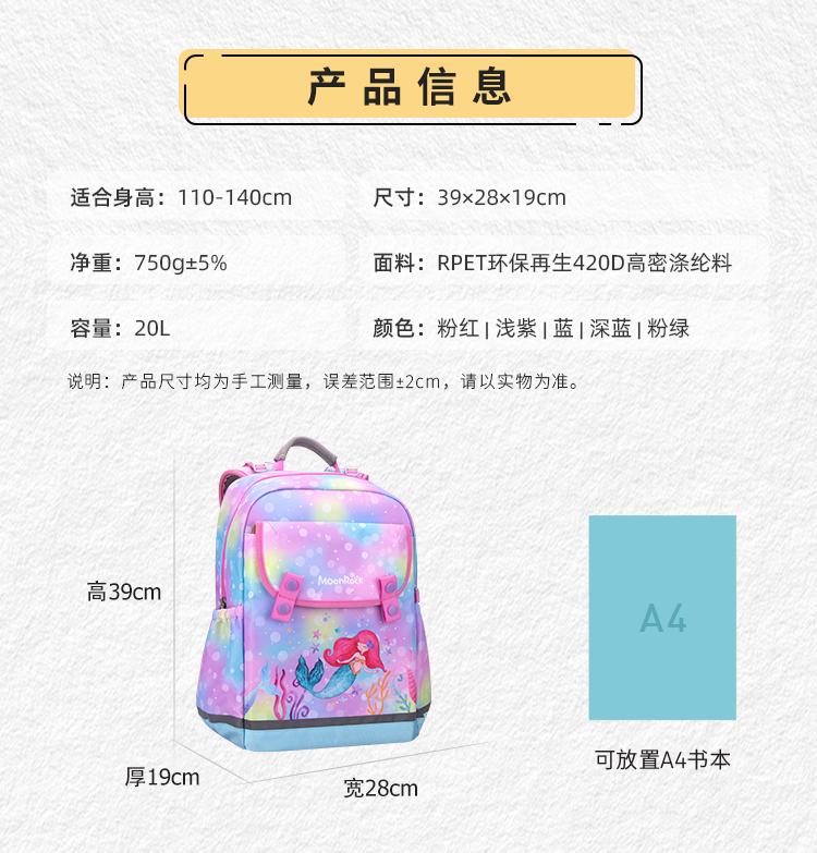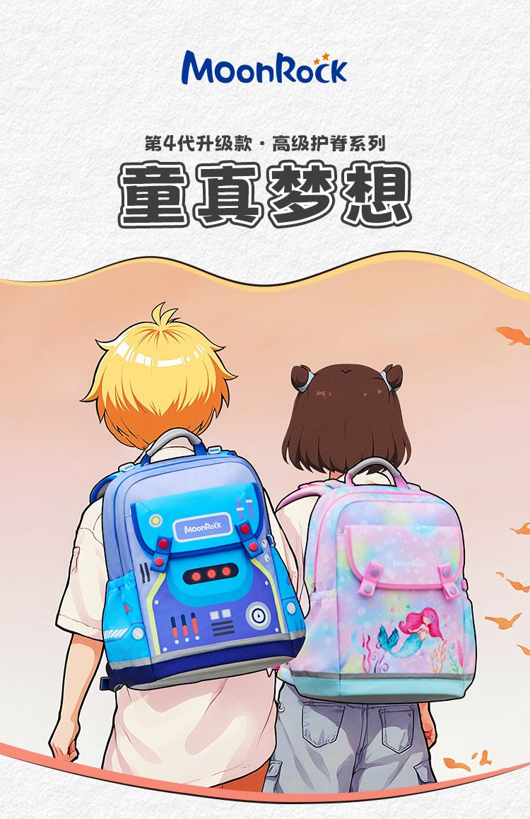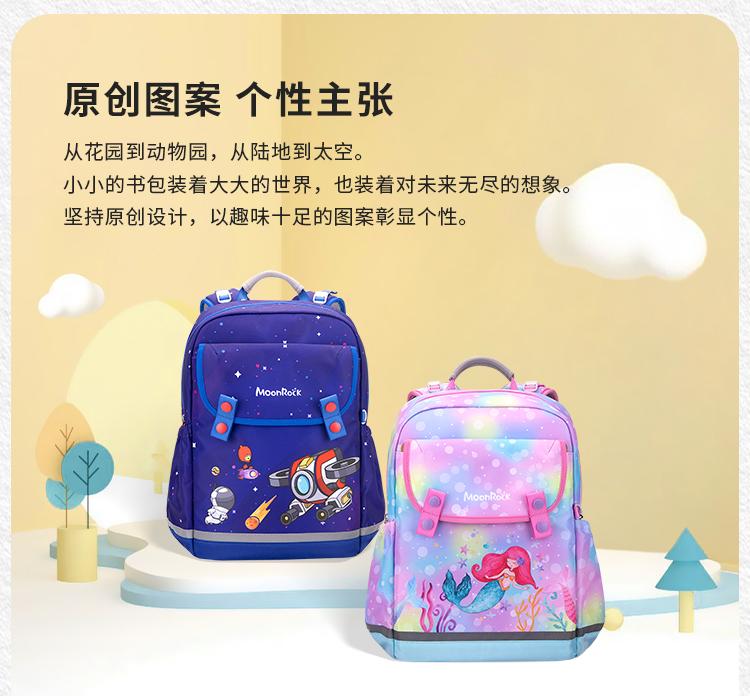 测评优品-梦乐/MoonRock 学生护脊书包1-3 3-6年级儿童男女护脊减负大容量