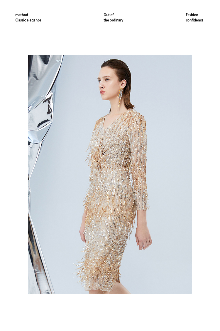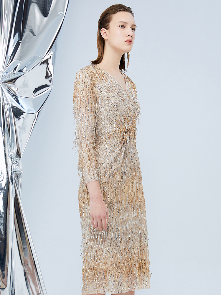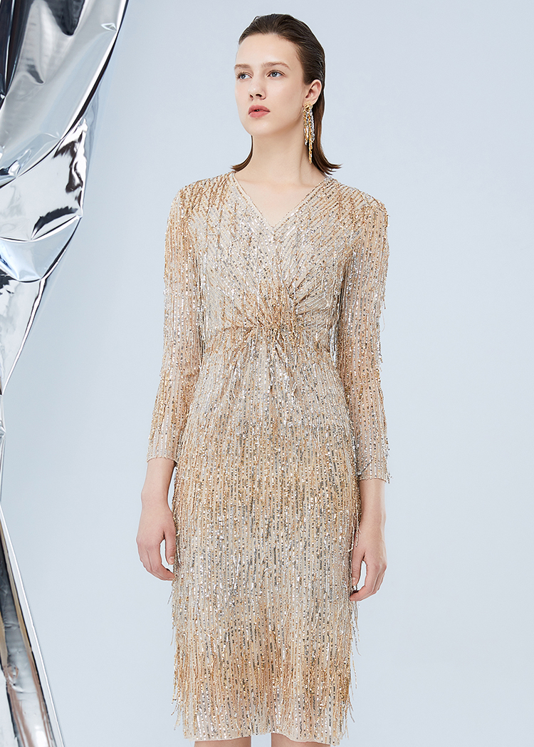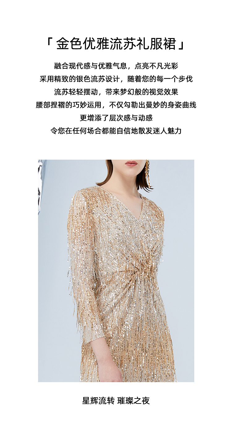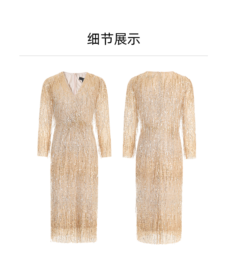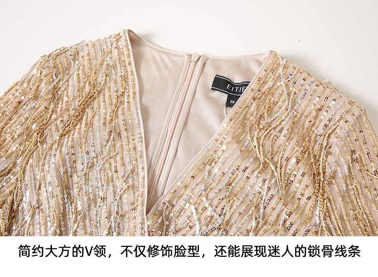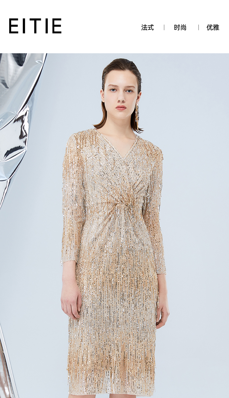 EITIE爱特爱秋季新款优雅刺绣亮片礼服连衣裙7577206