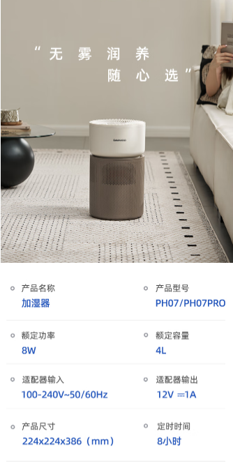 选择大宇加湿器,就是选择一种品质生活。它不仅仅是一台加湿器,更是您生活中的一位亲密伙伴,陪伴您度过每一个干燥的时刻。在干燥的季节里,它是您的保湿秘籍;在空调房中,它是您的空气调节师。让大宇为您和您的家人带来清新、舒适的空气环境,开启美好生活的新篇章。