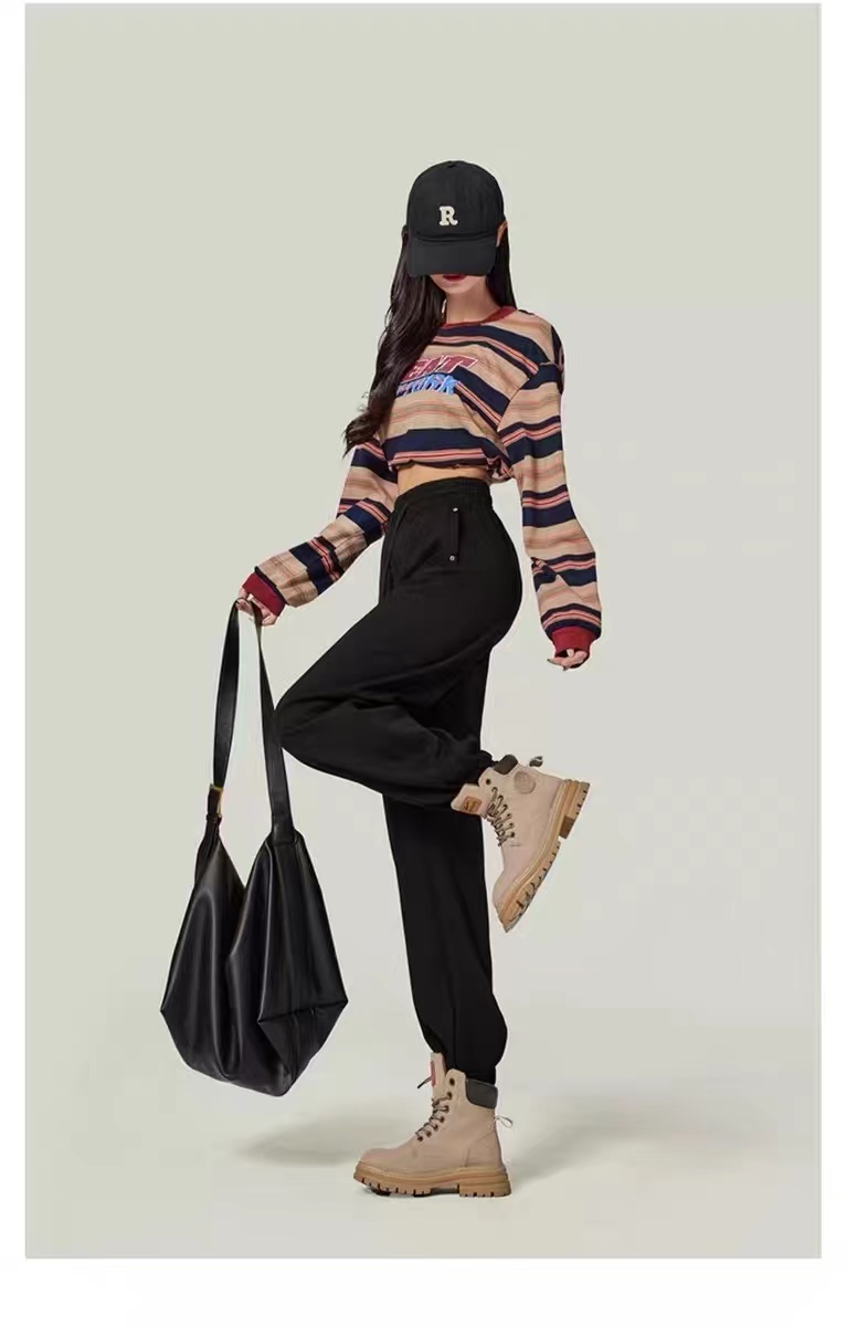 【喜出】X01竖口袋松紧腰收口春秋休闲裤