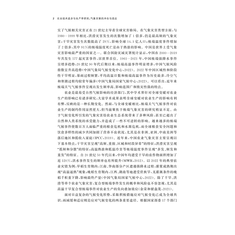 书名:农业技术进步与生产率研究:气象灾害的冲击与适应