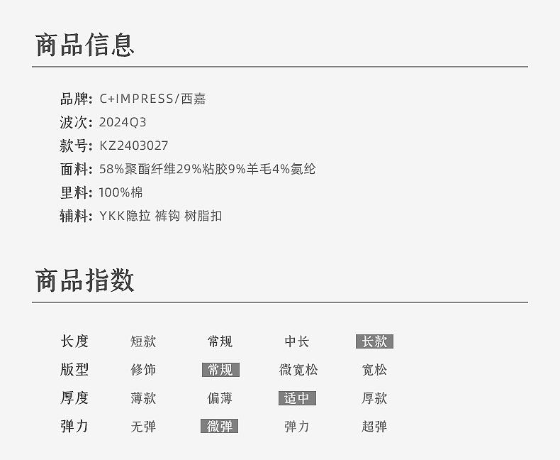 西嘉C+IMPRESS/西嘉原创设计西装裤女24秋季新款黑色直筒裤优雅西裤(货号:KZ2403027)