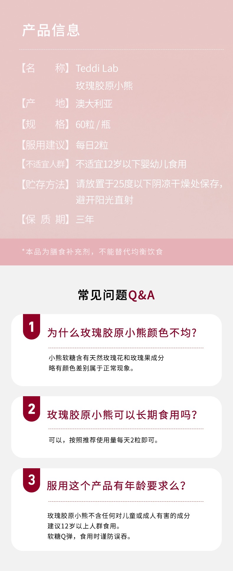 【保税直邮 宁波北仑】Unichi 玫瑰胶原小熊 60粒/瓶