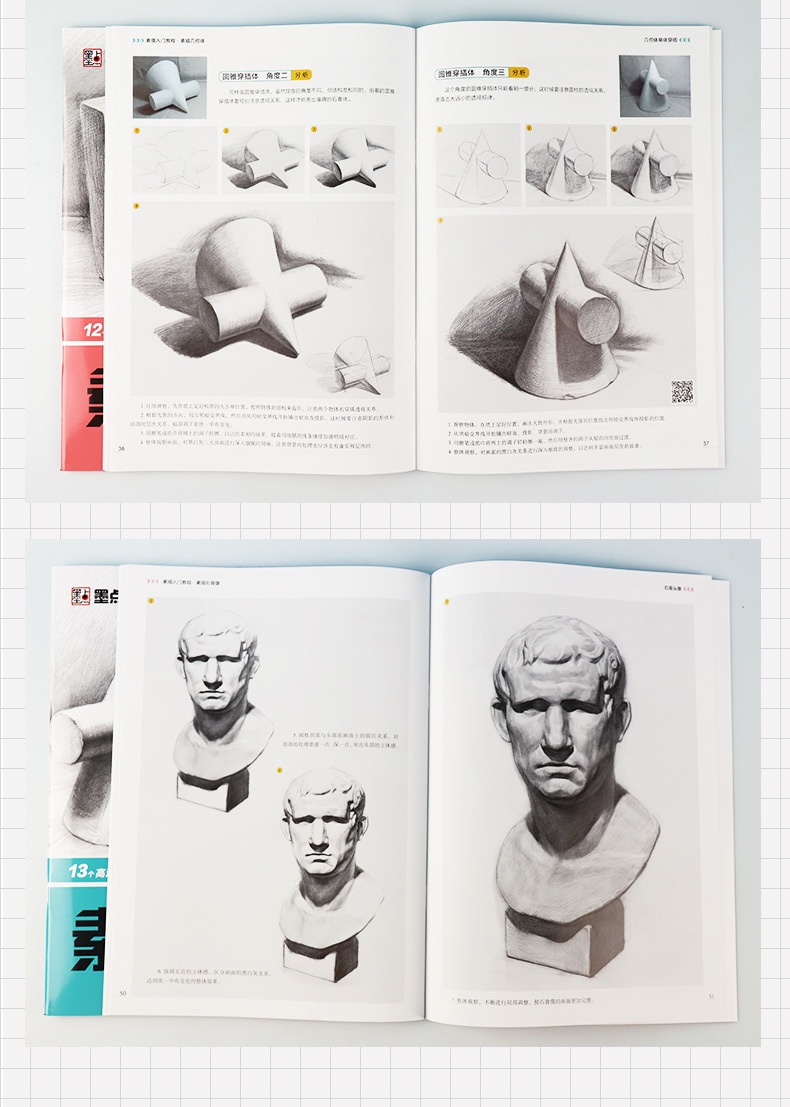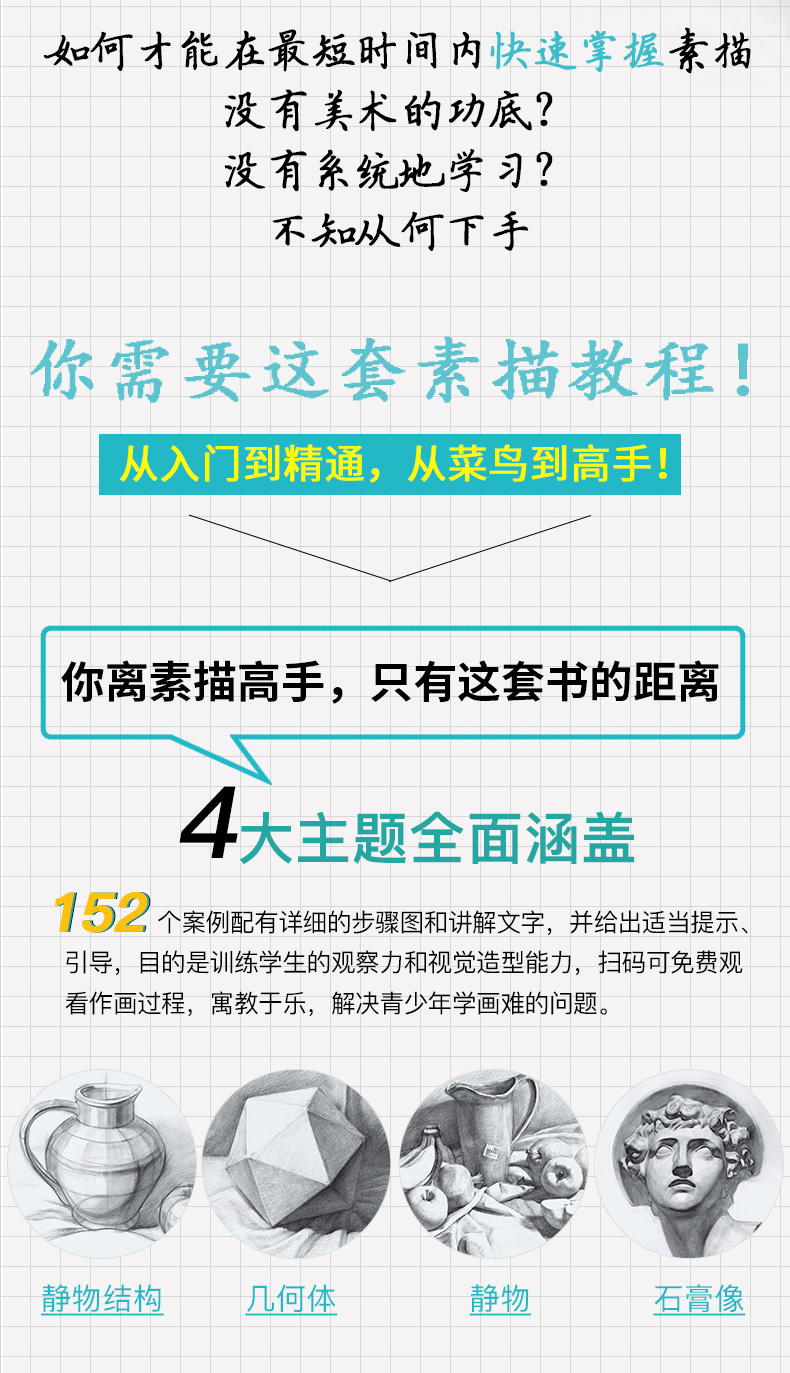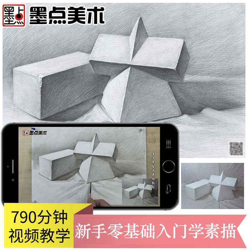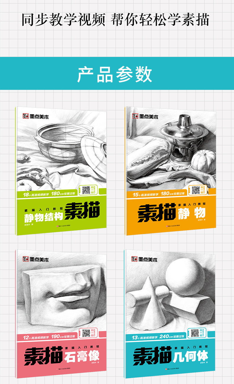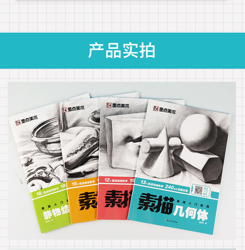 墨点美术 素描入门教程美术初学者零基础绘画教程书4册套装 (静物结构+几何体+静物+石膏像)