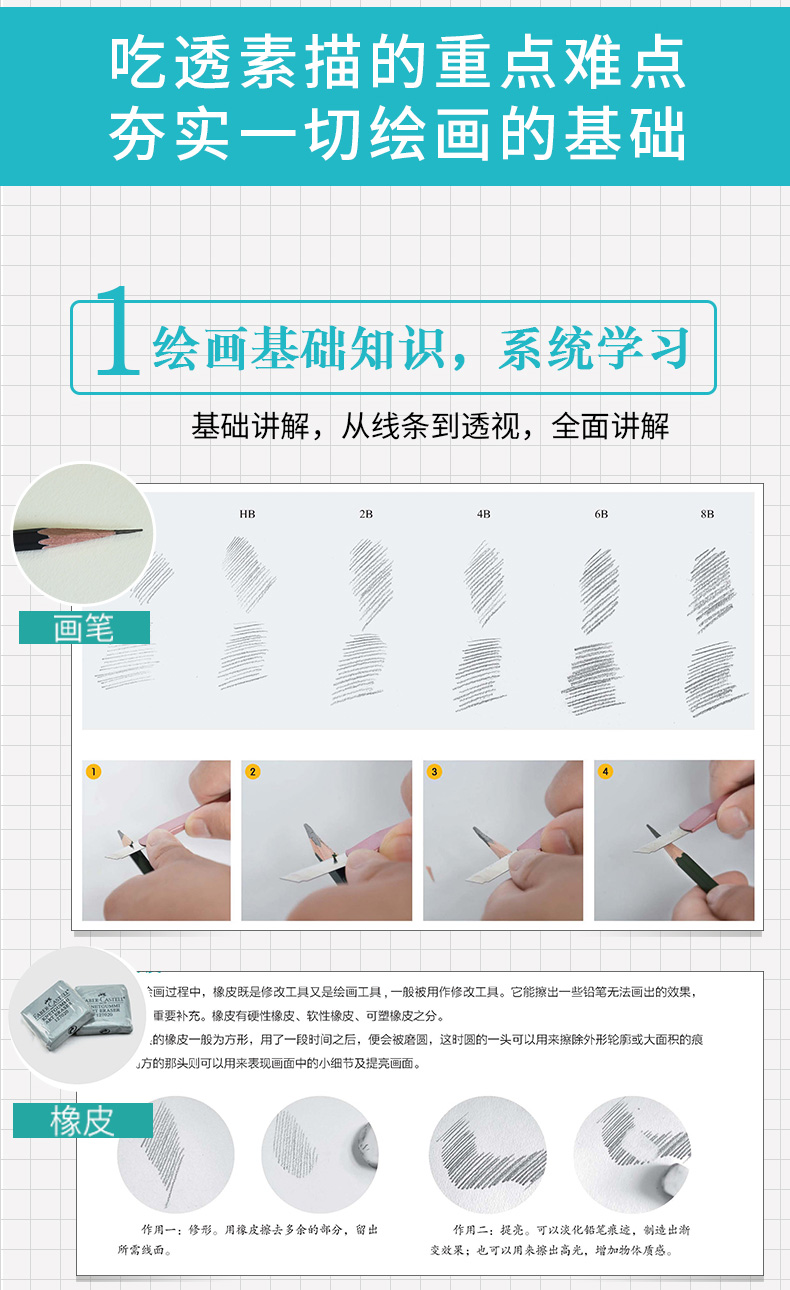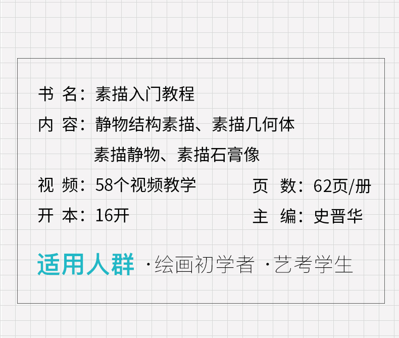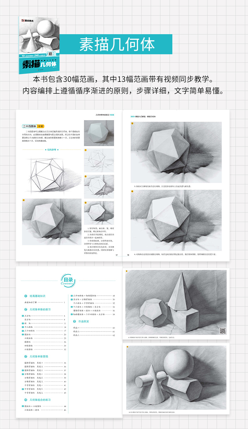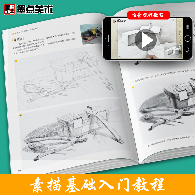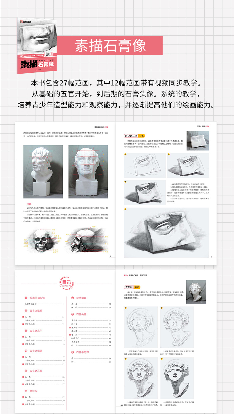 墨点美术 素描入门教程美术初学者零基础绘画教程书4册套装 (静物结构+几何体+静物+石膏像)