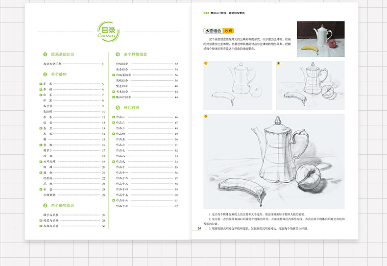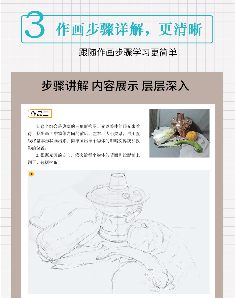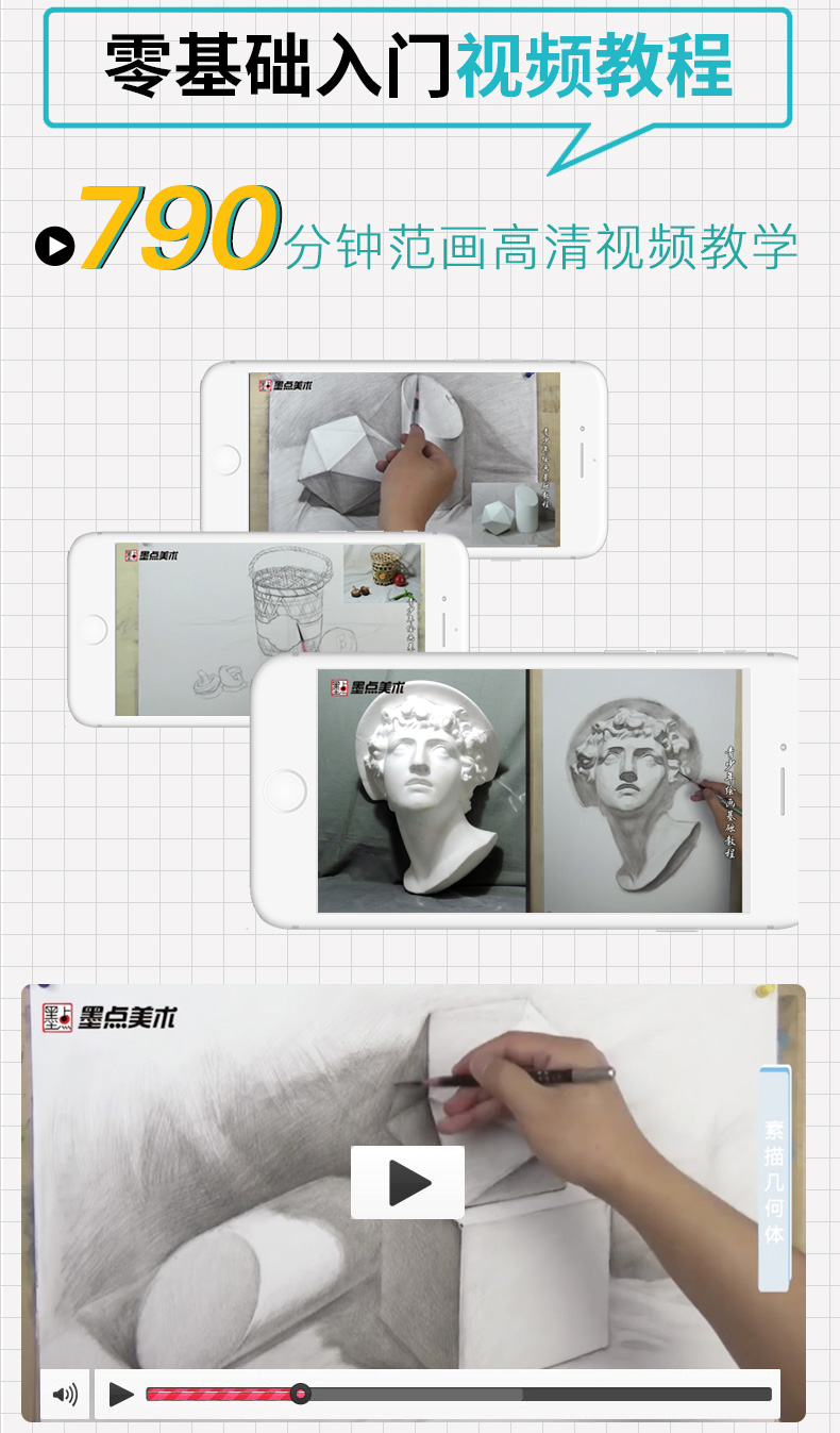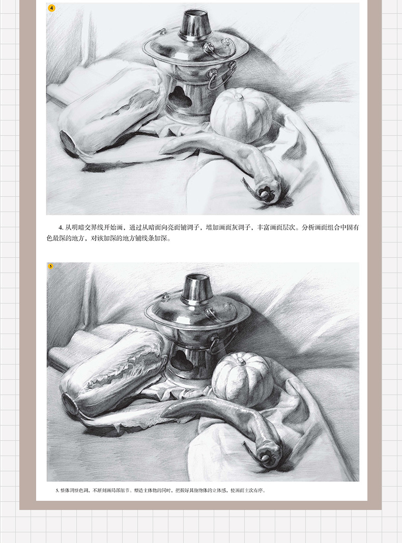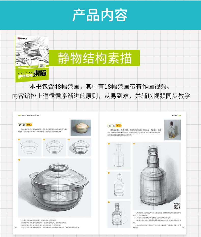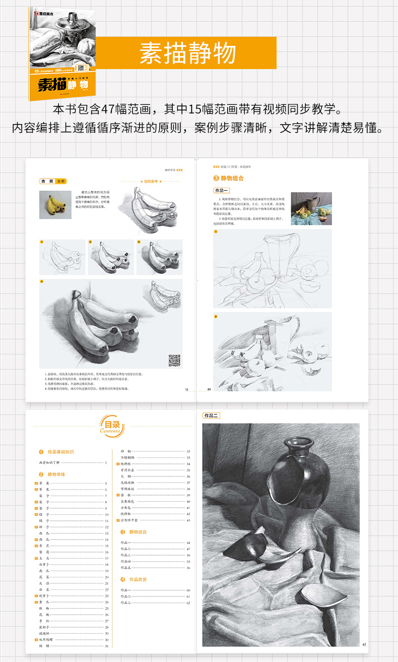 墨点美术 素描入门教程美术初学者零基础绘画教程书4册套装 (静物结构+几何体+静物+石膏像)