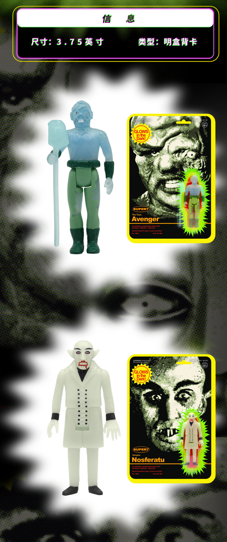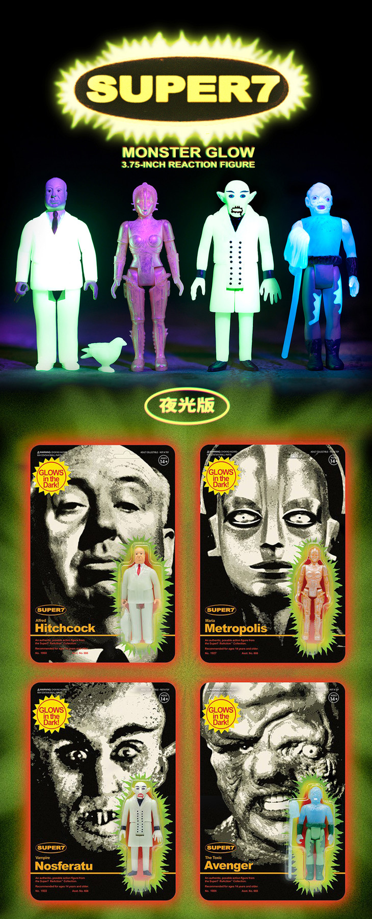 现货 Super7 Monster 夜光版 复古 挂卡 希区柯克 大都会