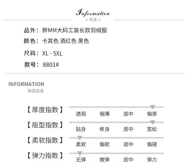 FF-8801新款特大码女装胖mm加肥加大工装长款连帽加厚羽绒服外套8801