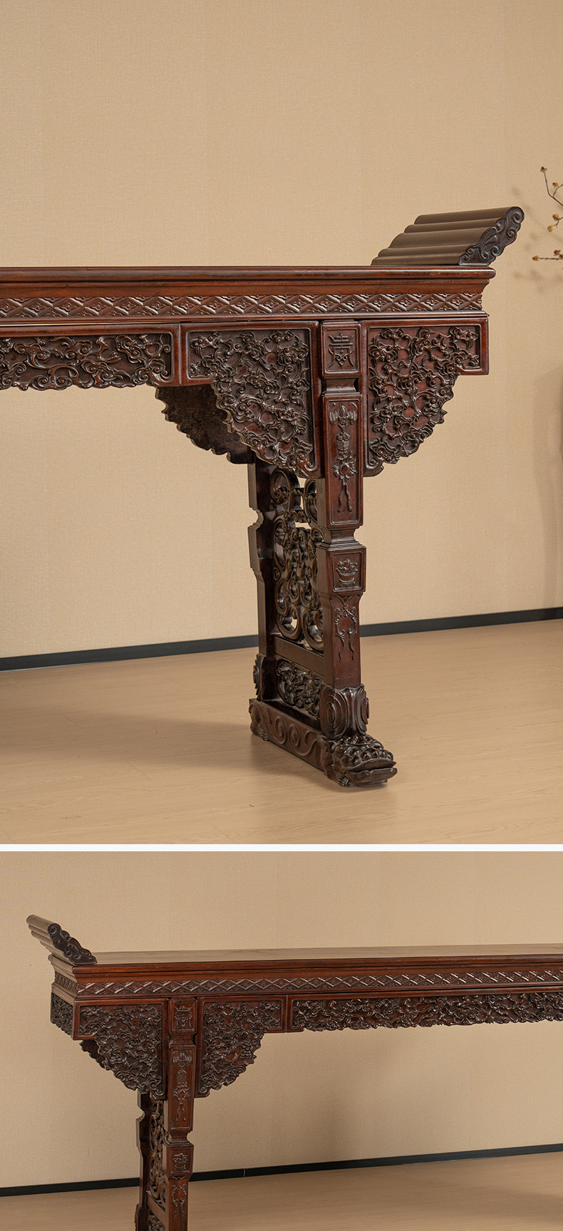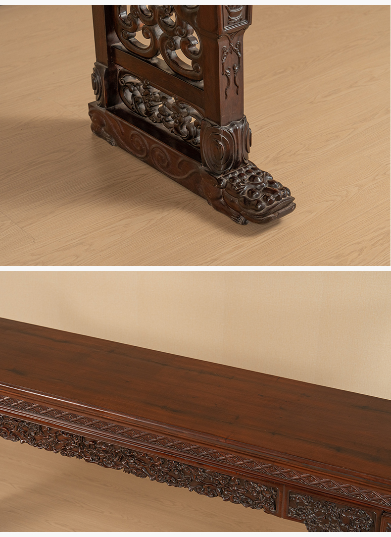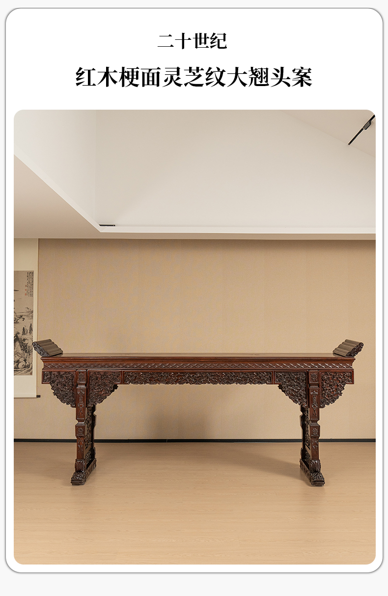 二十世纪 红木梗面灵芝纹大翘头案