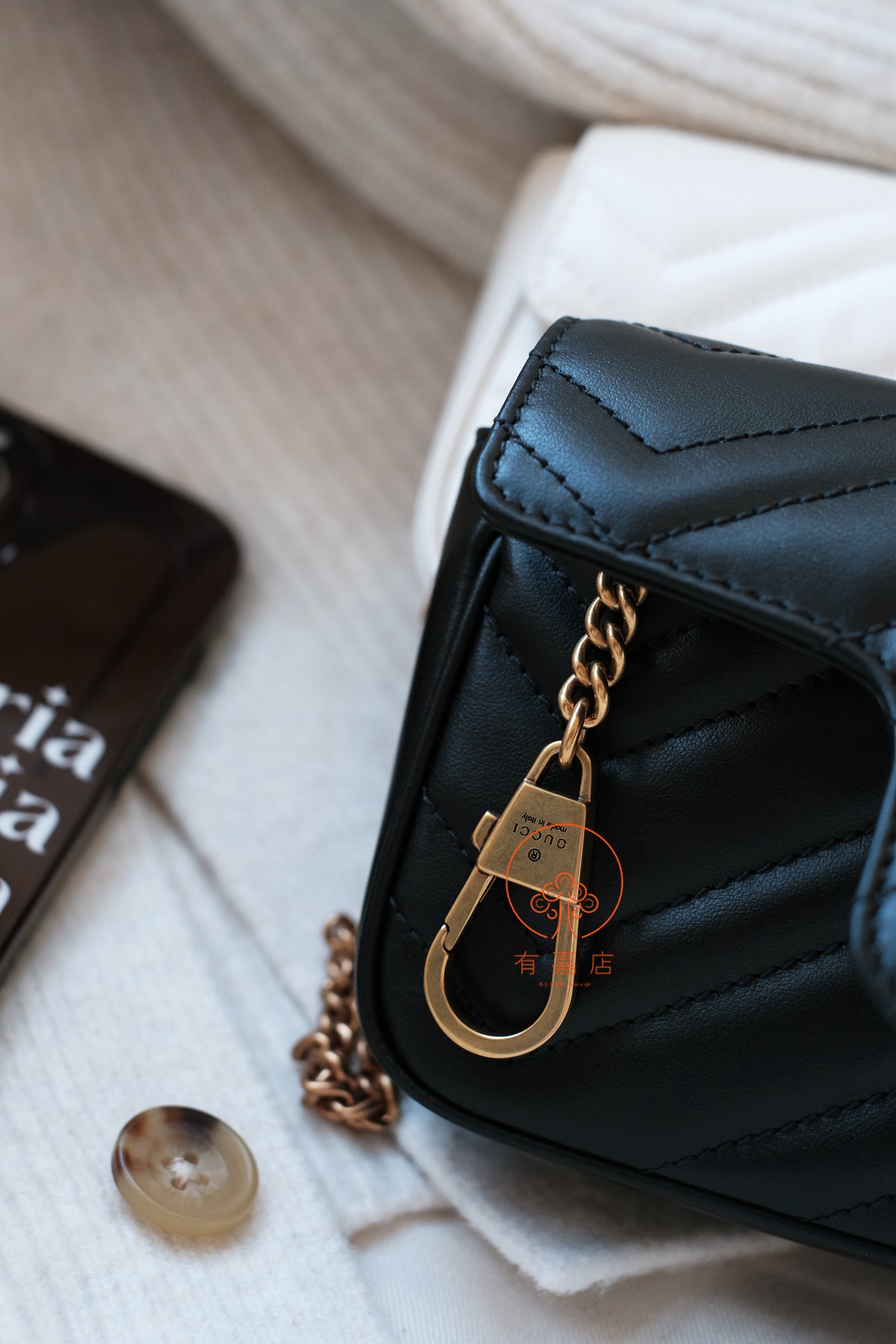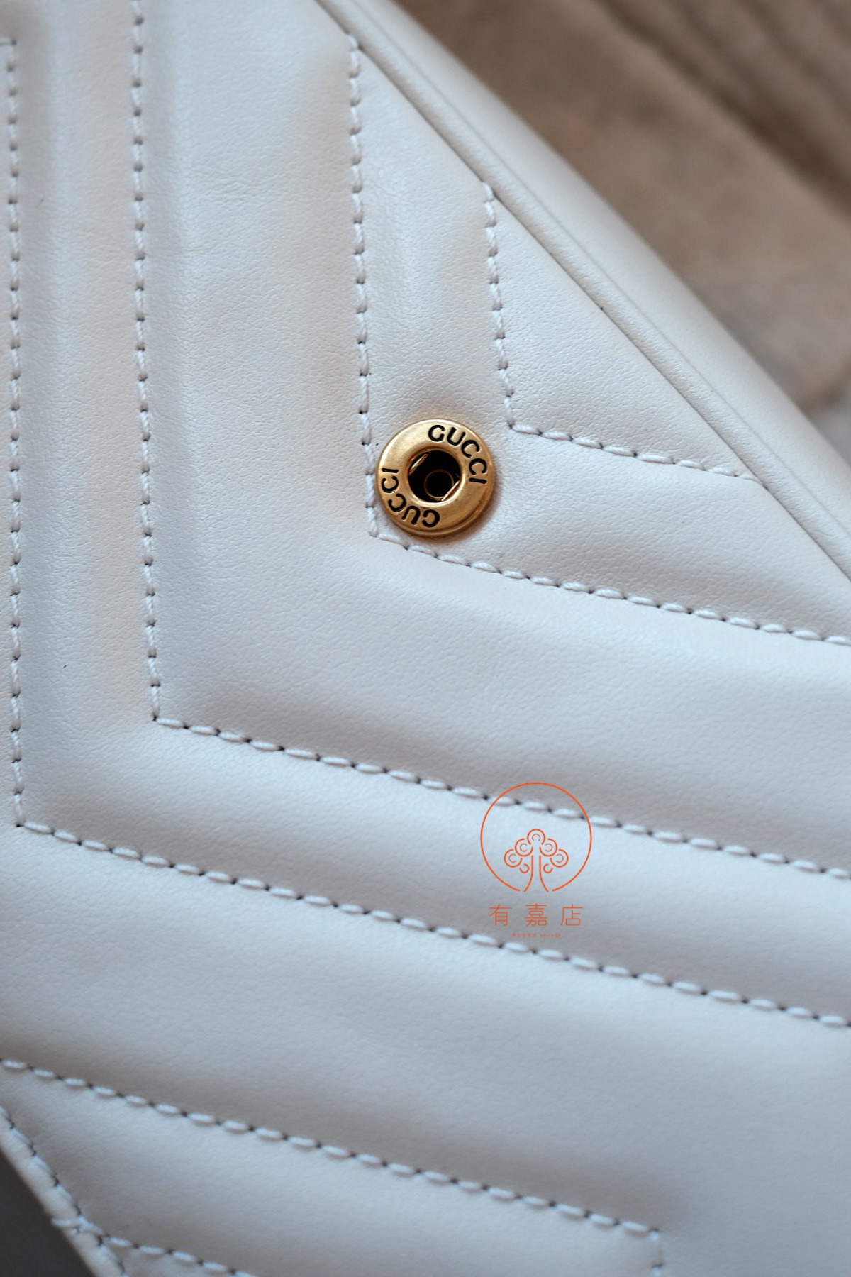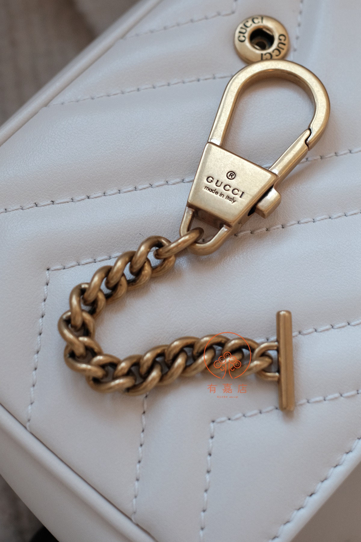 同样,gucci的手袋在国内是没有完整生产线的。但是,原厂皮的供应商能拿到(外面那些皮质可以做到一样,但是不是原供货商的),五金也是原供应商的。