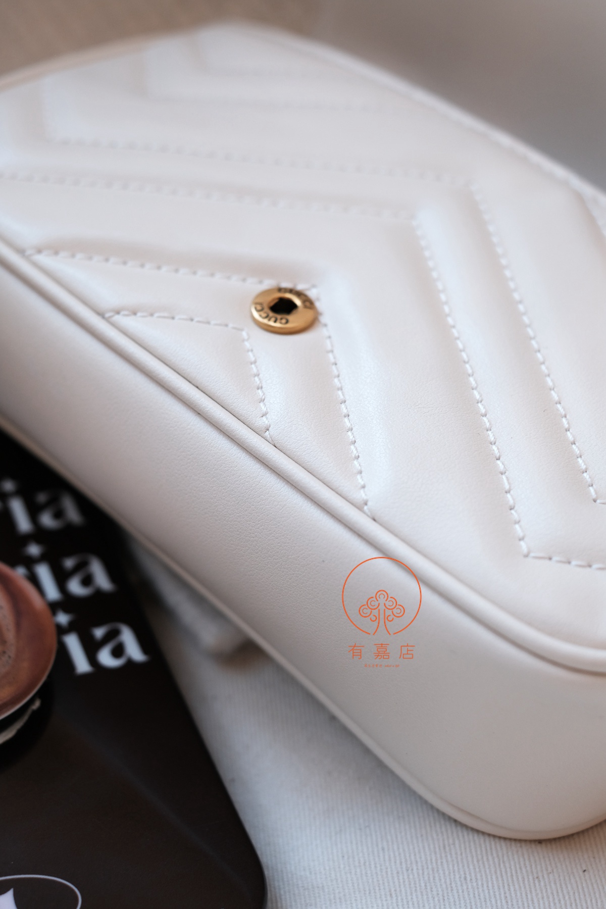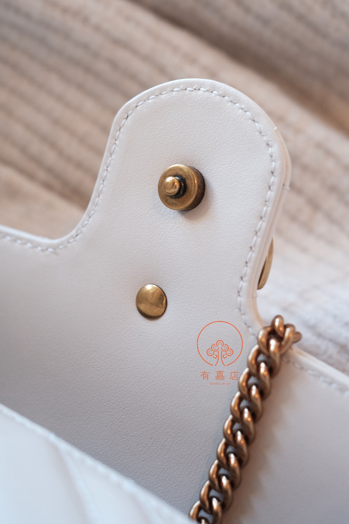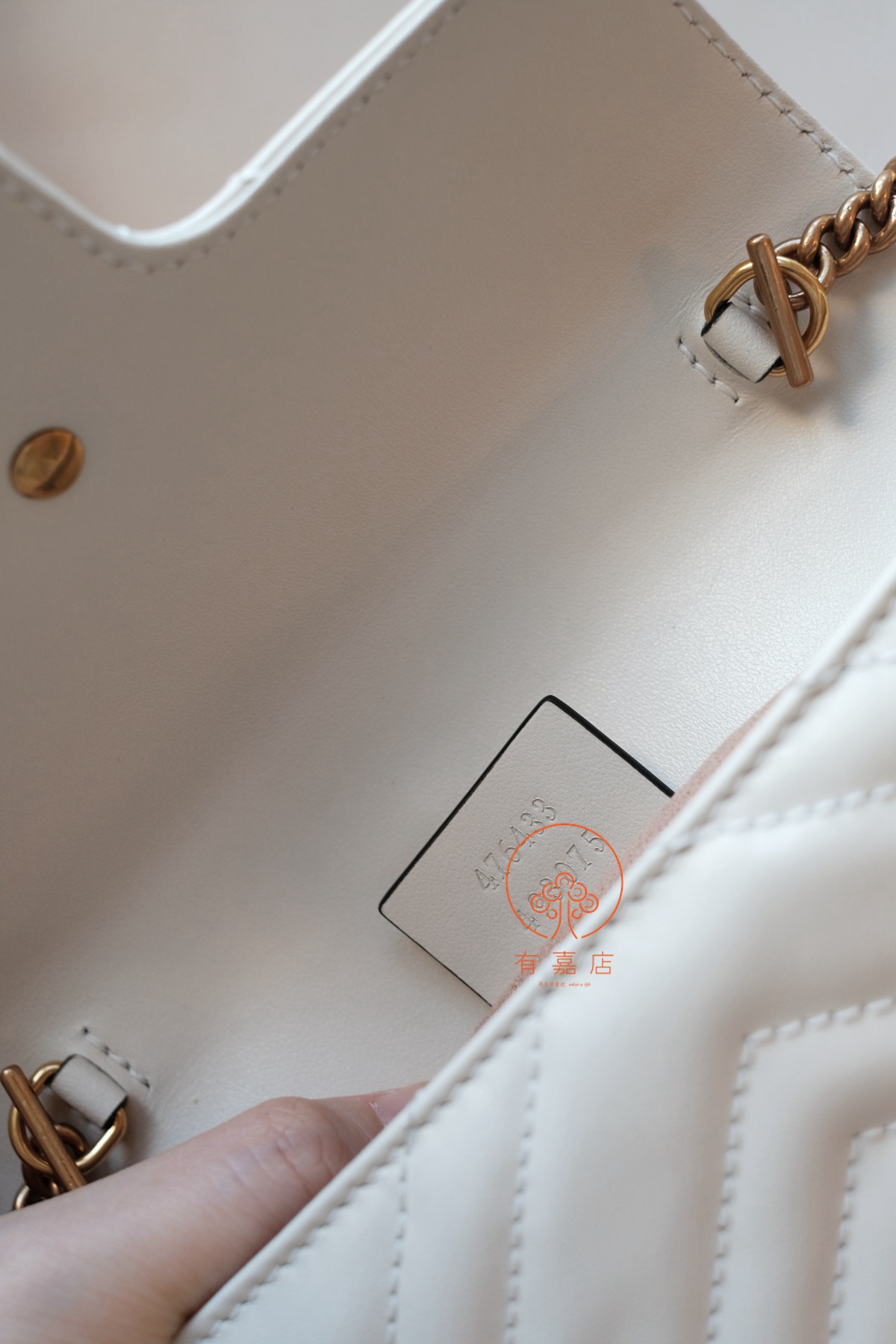 同样,gucci的手袋在国内是没有完整生产线的。但是,原厂皮的供应商能拿到(外面那些皮质可以做到一样,但是不是原供货商的),五金也是原供应商的。