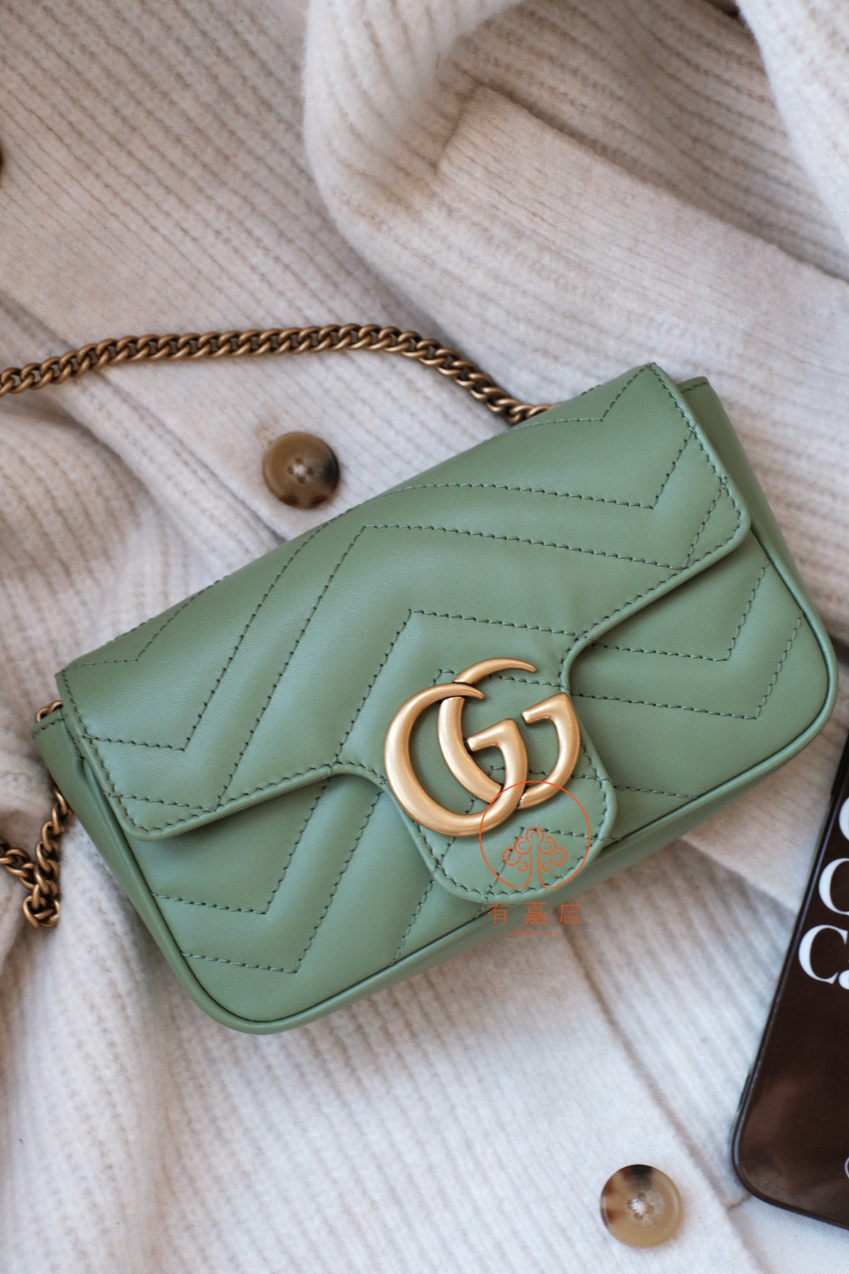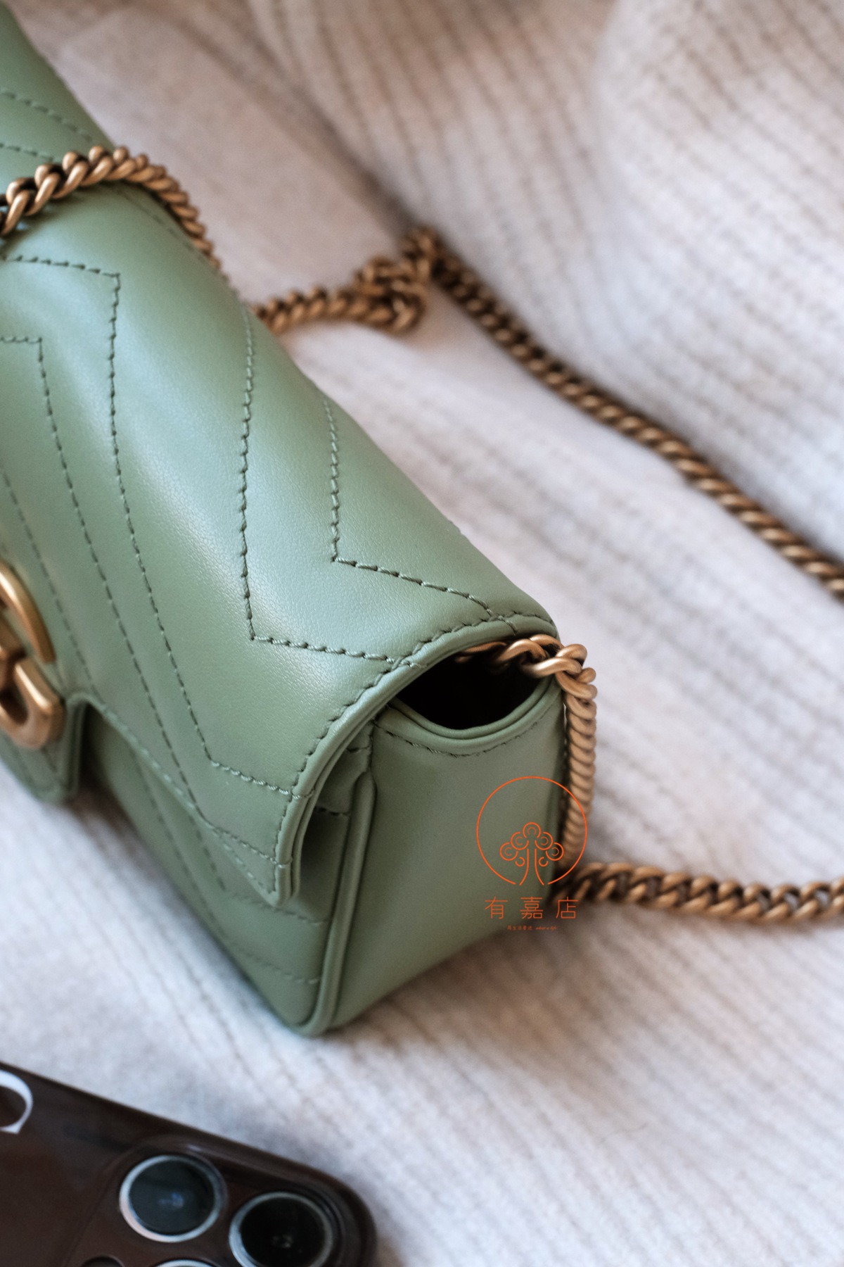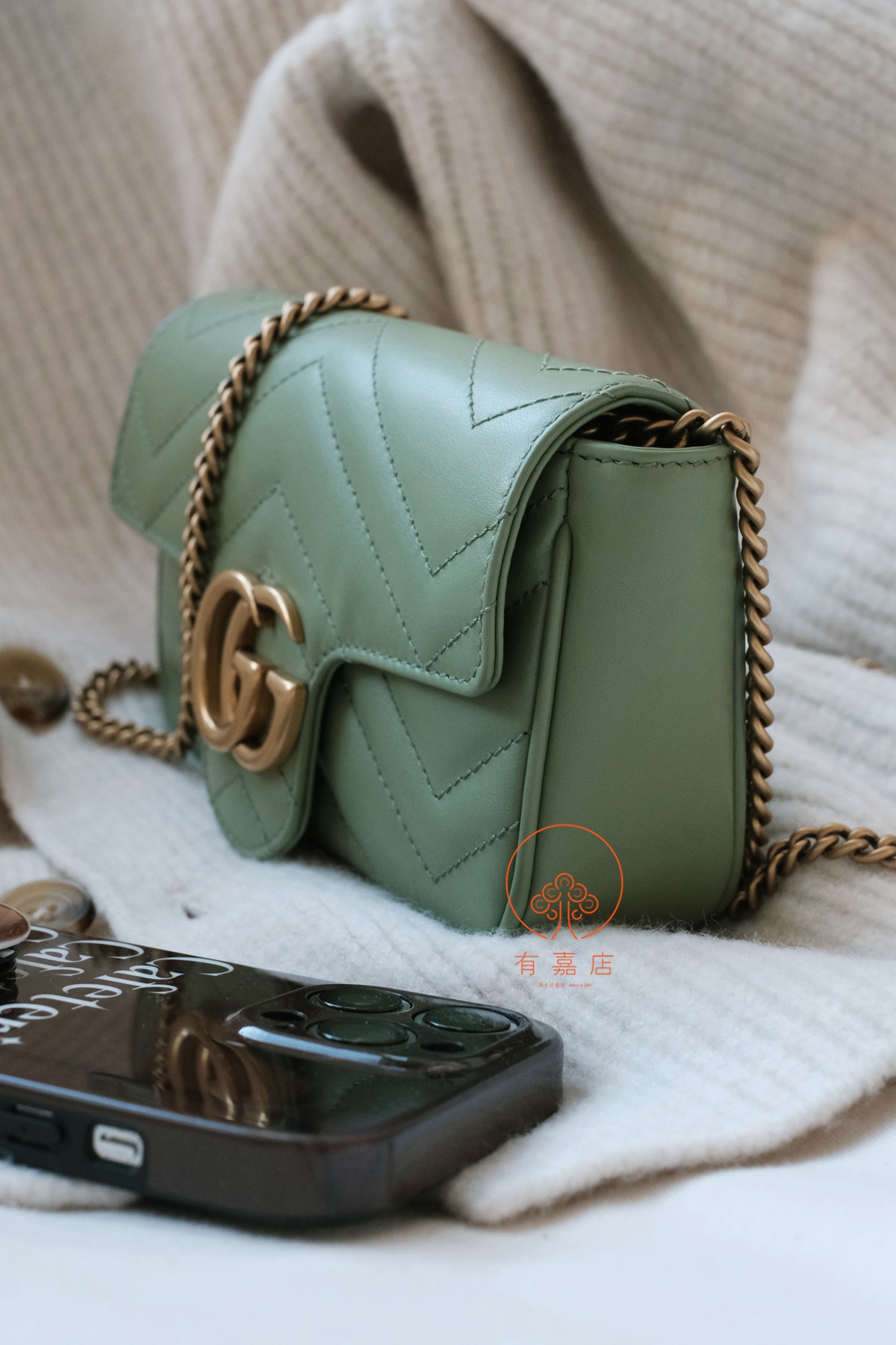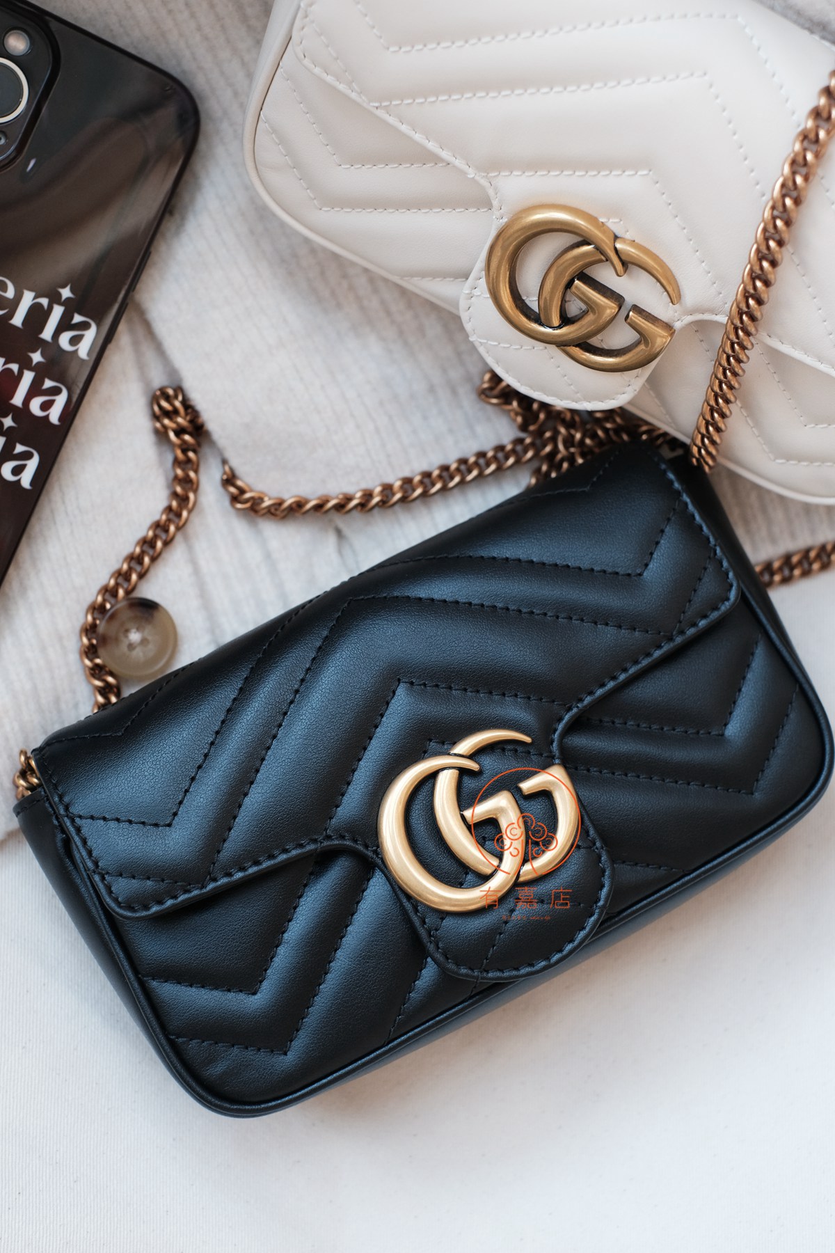 marmont这一经典爆款,mini尺寸下面还有个super mini尺寸的小废包。我们的是可以放手机的mini(可放大手机),注意区分。