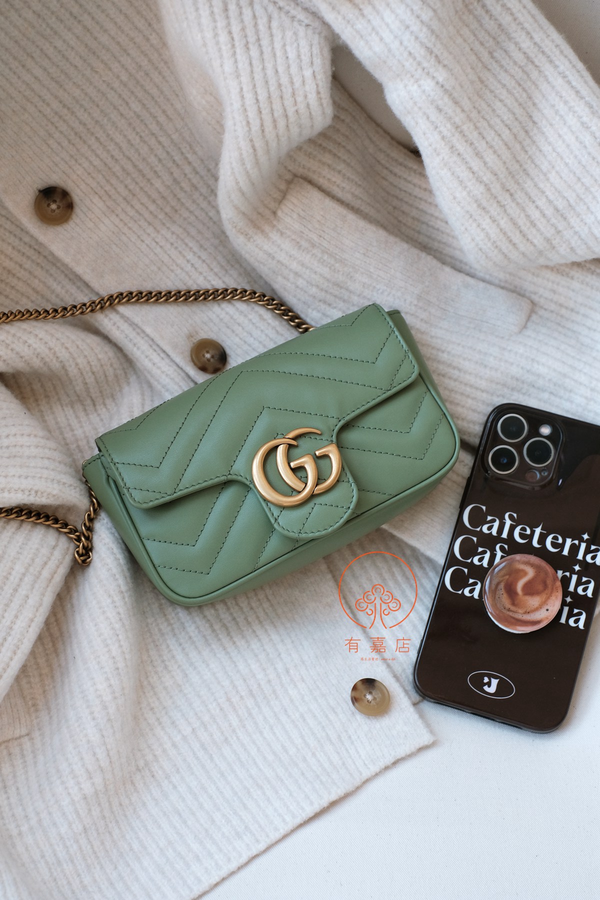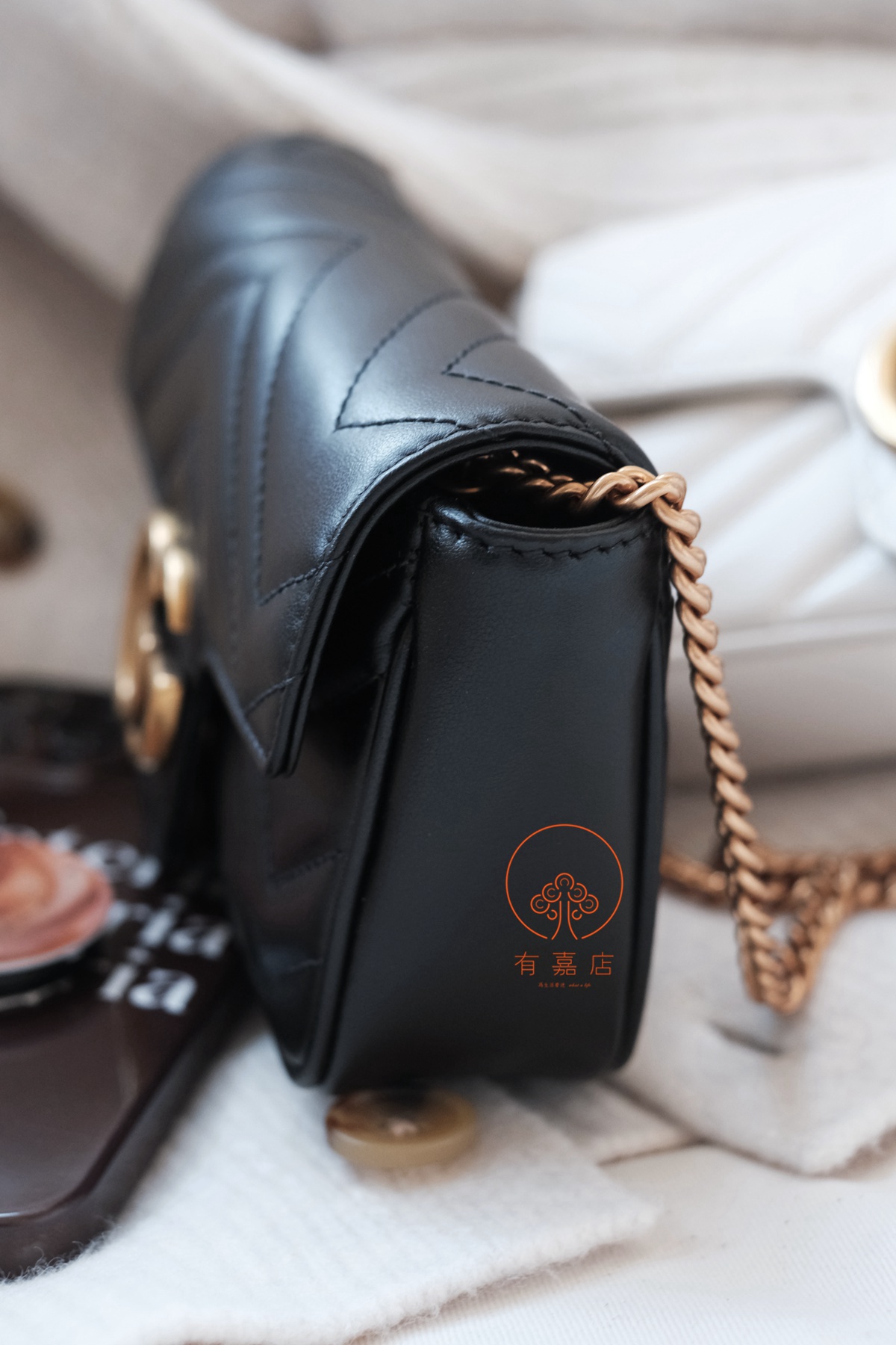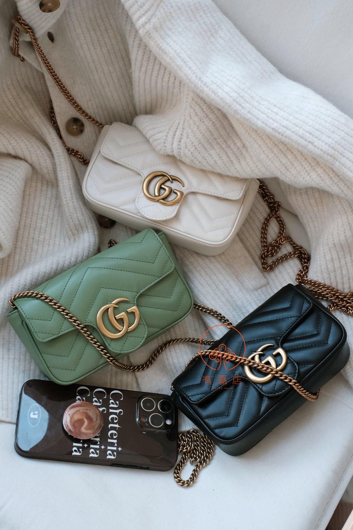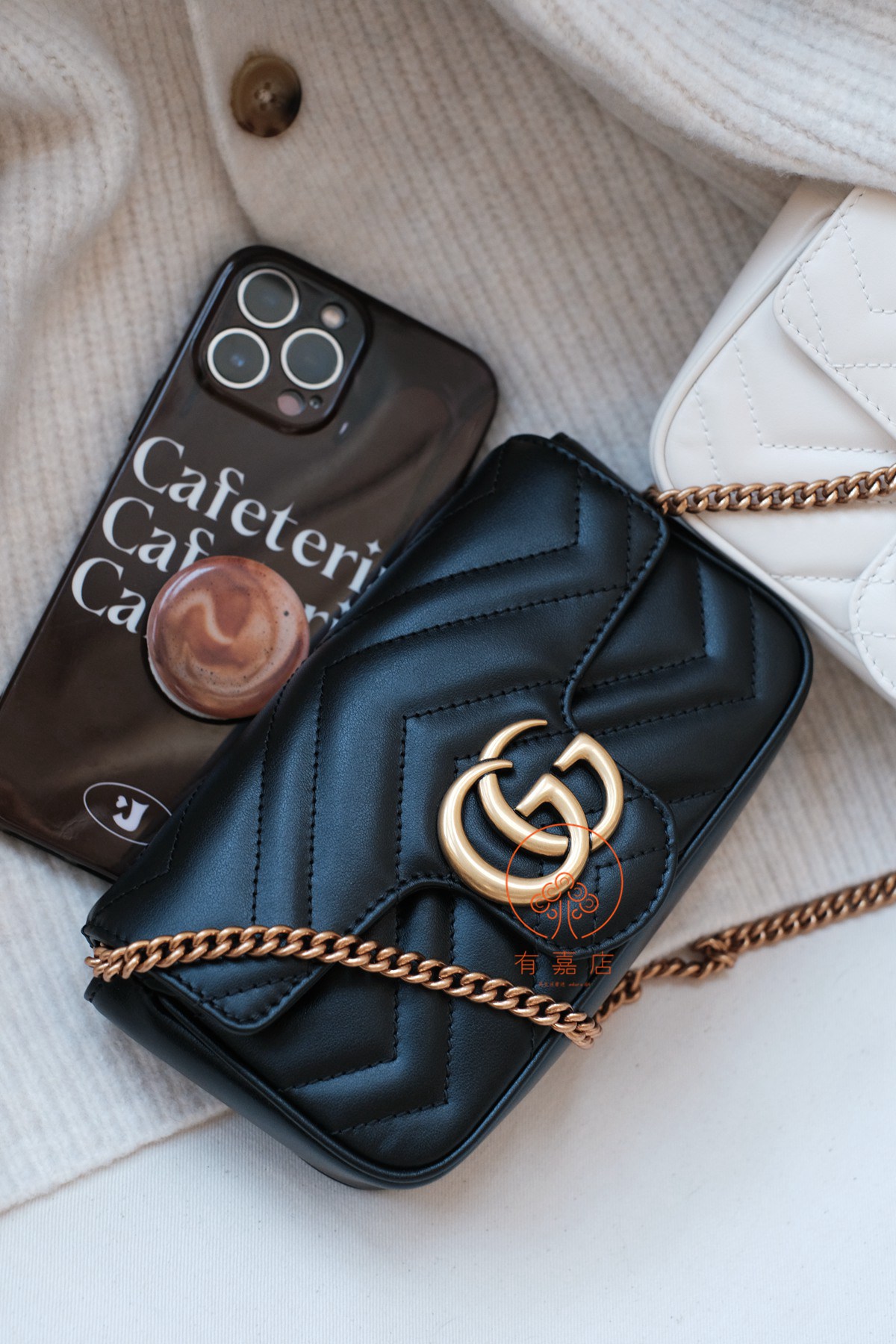 marmont这一经典爆款,mini尺寸下面还有个super mini尺寸的小废包。我们的是可以放手机的mini(可放大手机),注意区分。