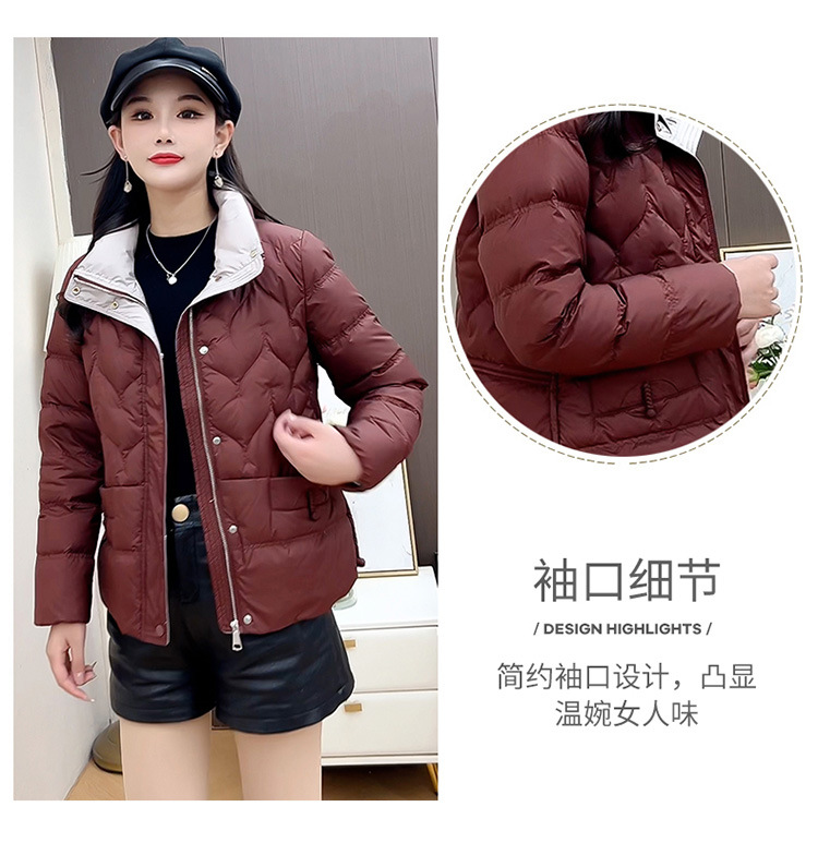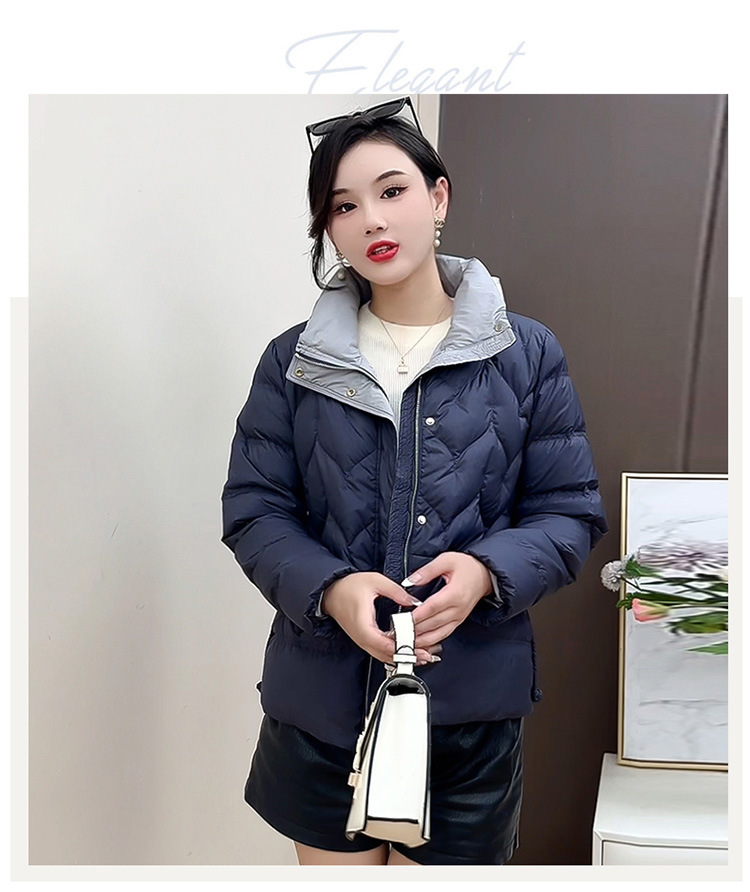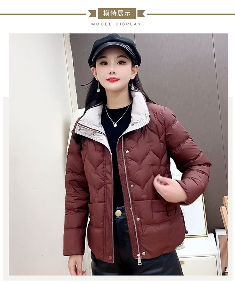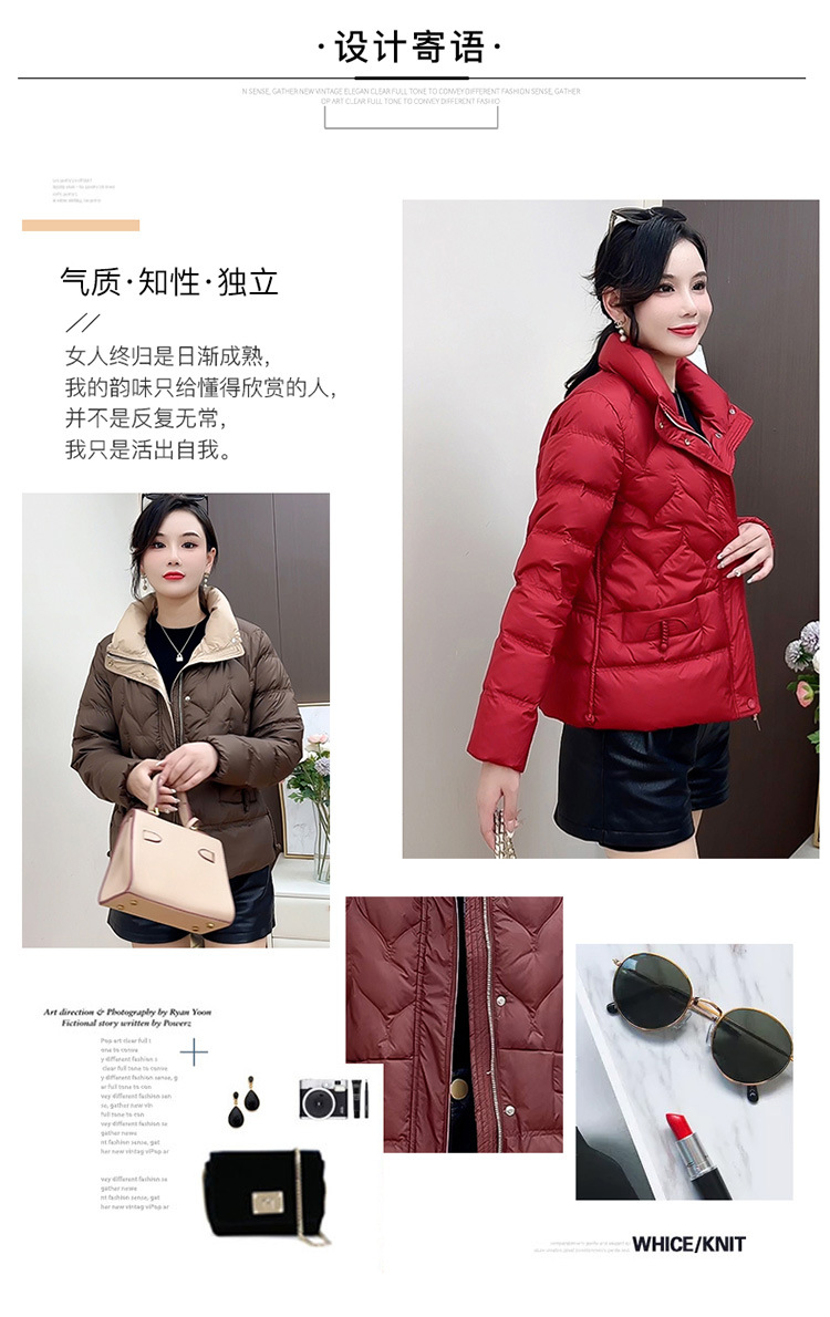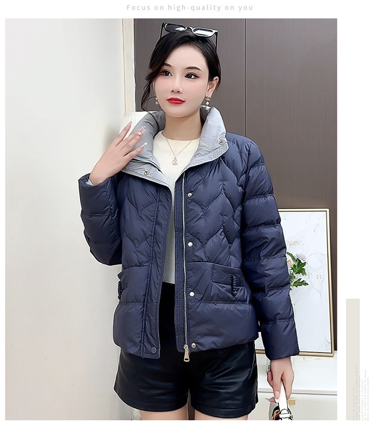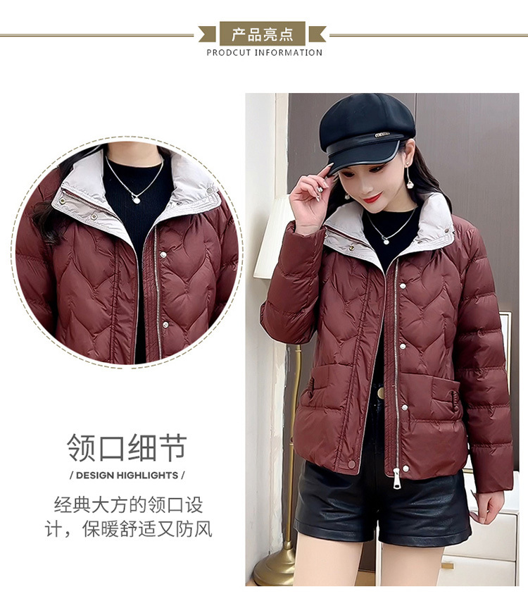 QYMCR-SDD520-L纯色简约立领修身时尚羽绒服2024年冬款短款小个子防寒白鸭绒外套 商品图2
