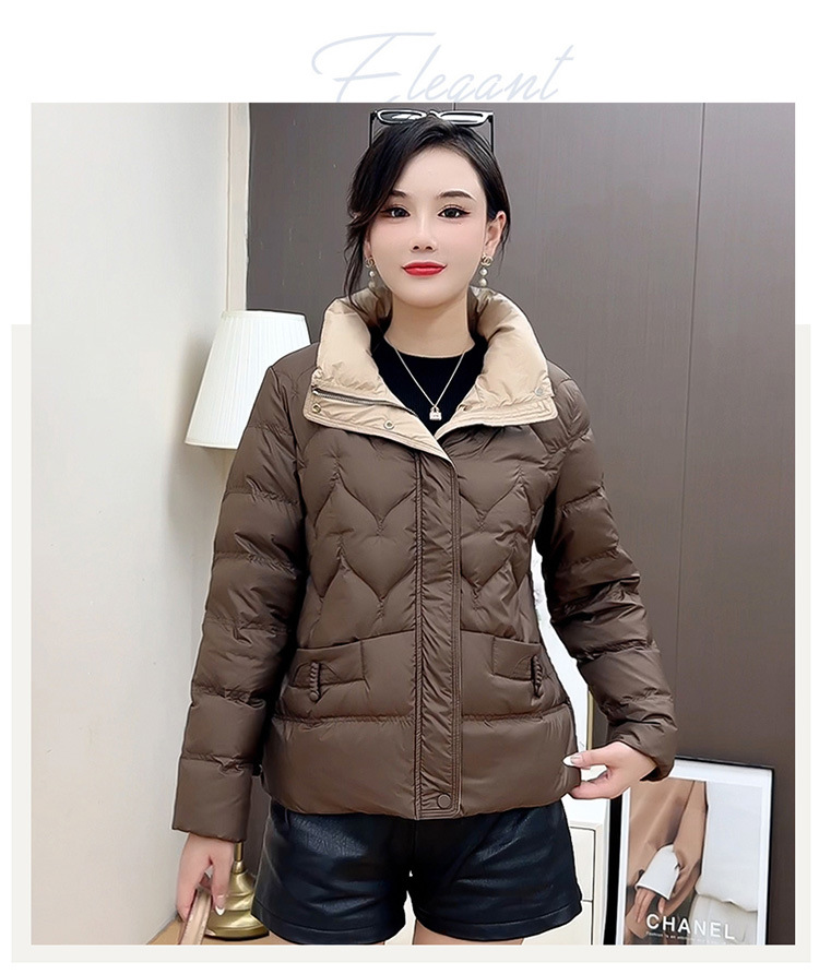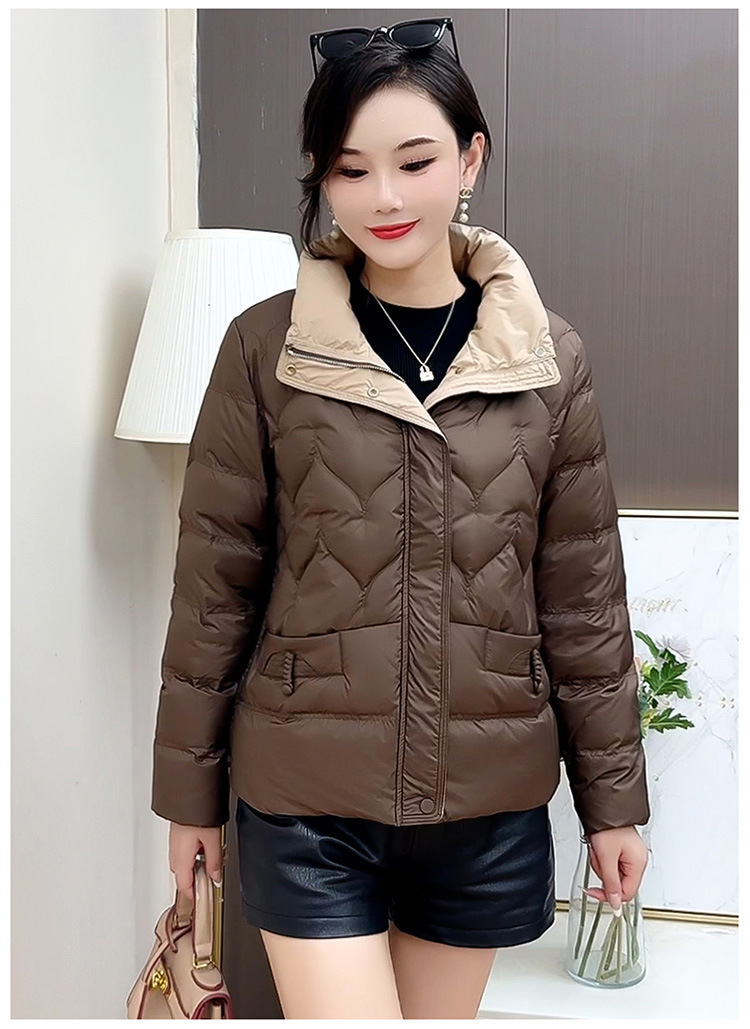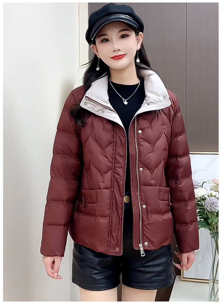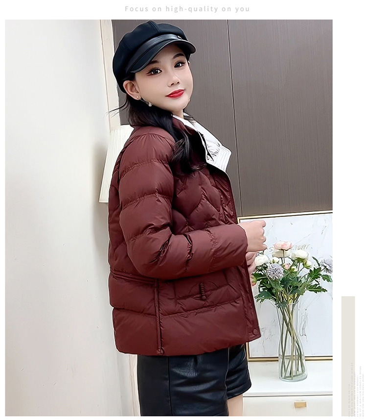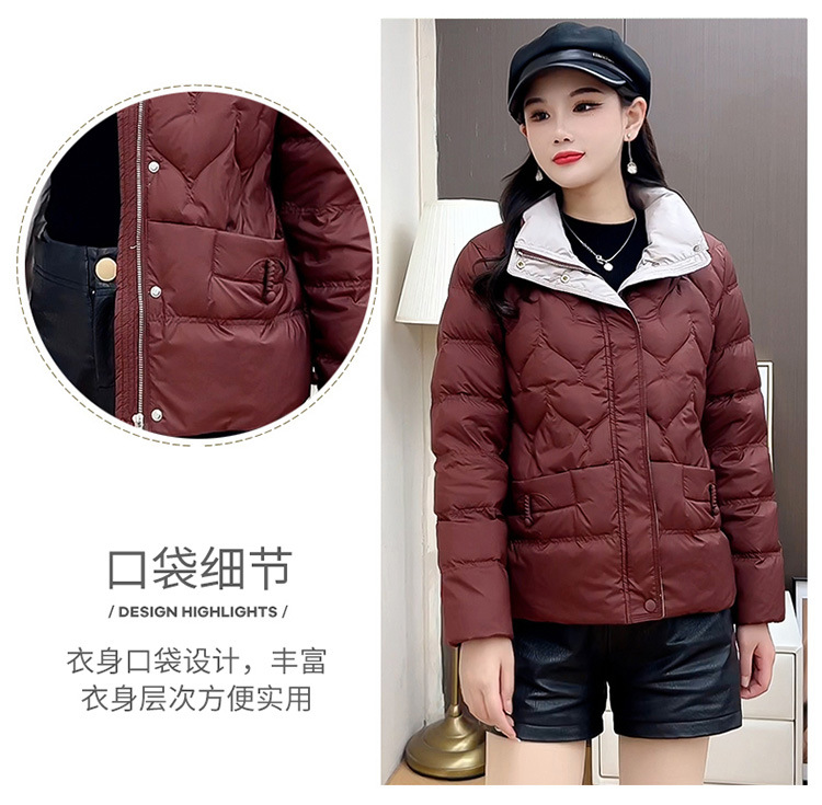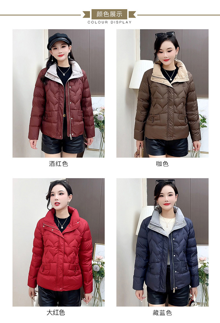 QYMCR-SDD520-L纯色简约立领修身时尚羽绒服2024年冬款短款小个子防寒白鸭绒外套 商品图2