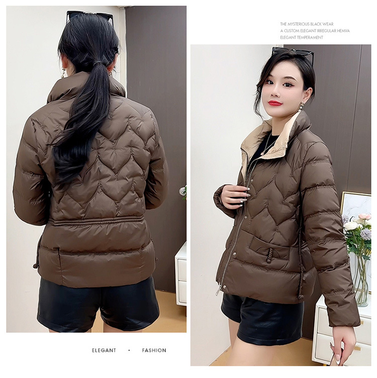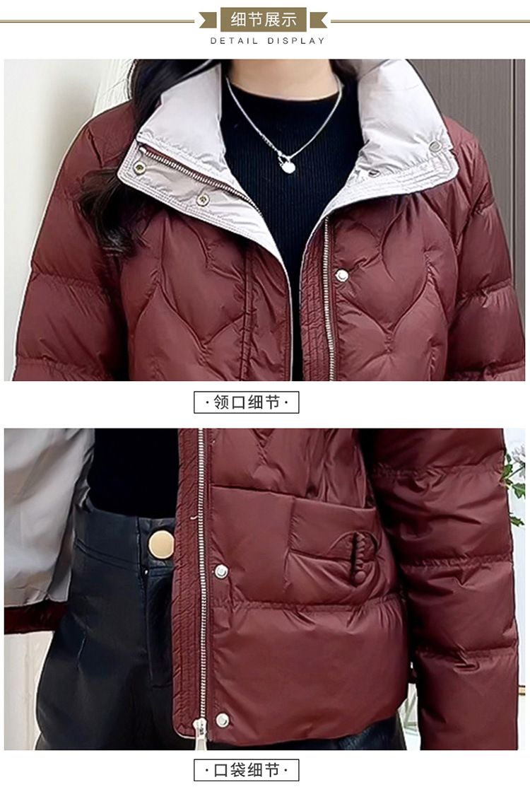 QYMCR-SDD520-L纯色简约立领修身时尚羽绒服2024年冬款短款小个子防寒白鸭绒外套 商品图3