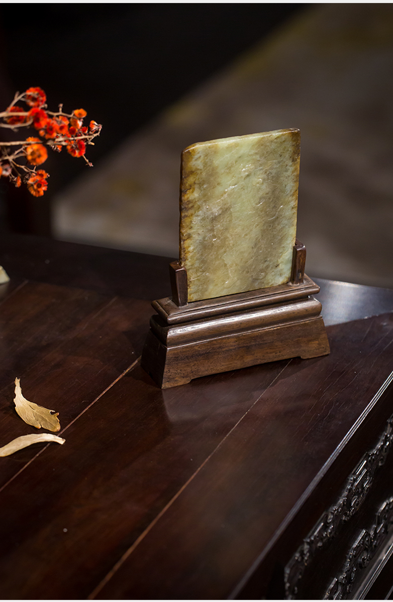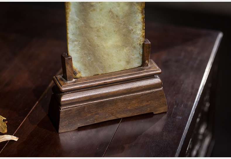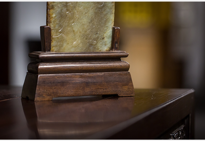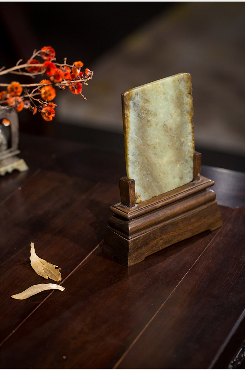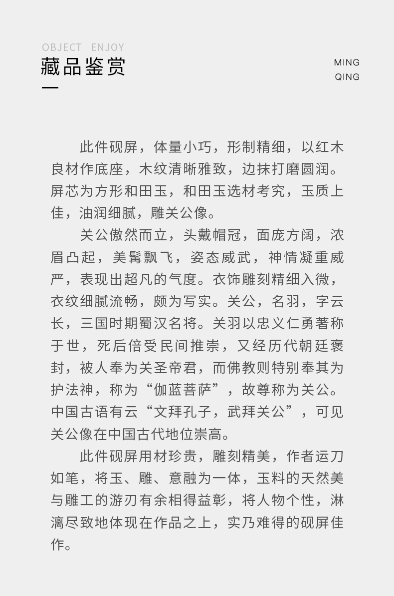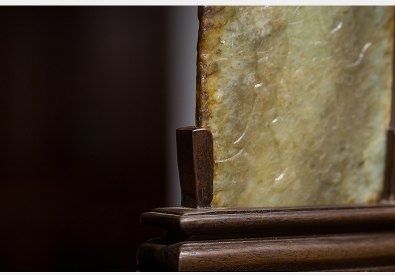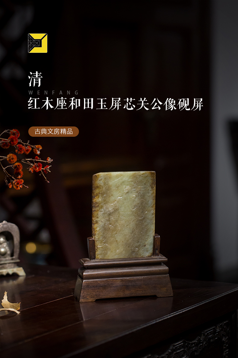 清 红木座和田玉屏芯关公像砚屏