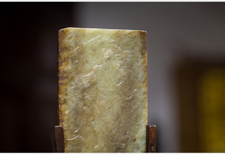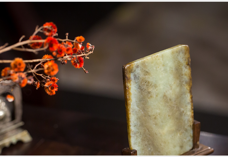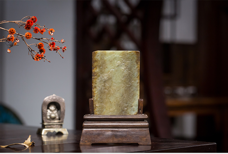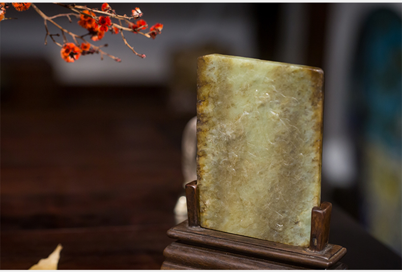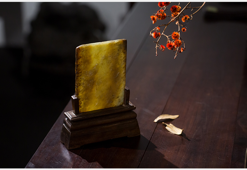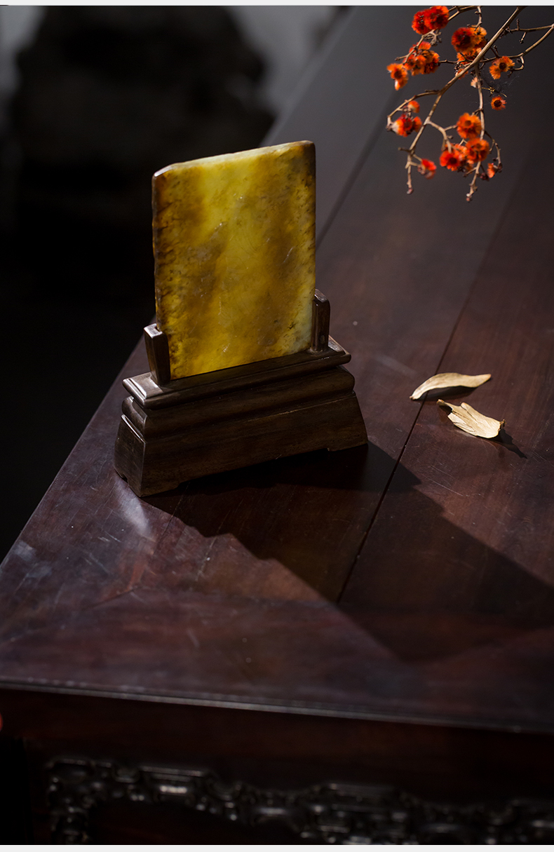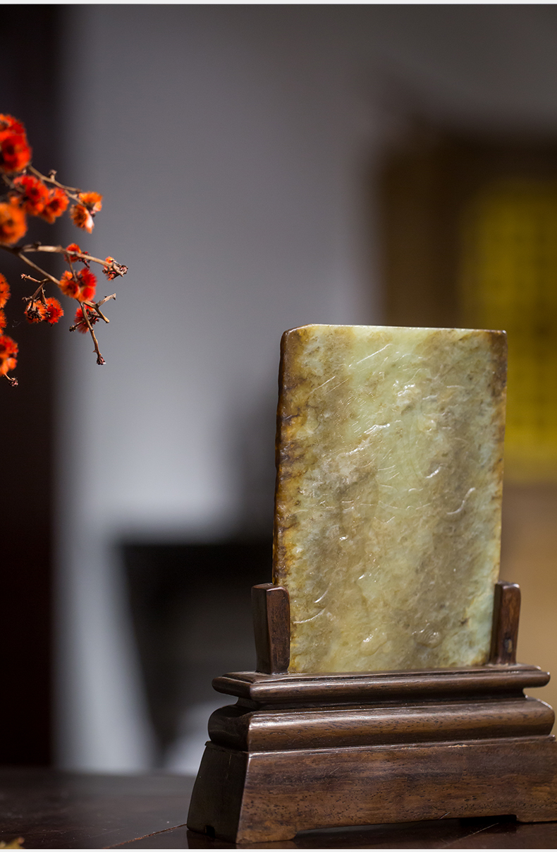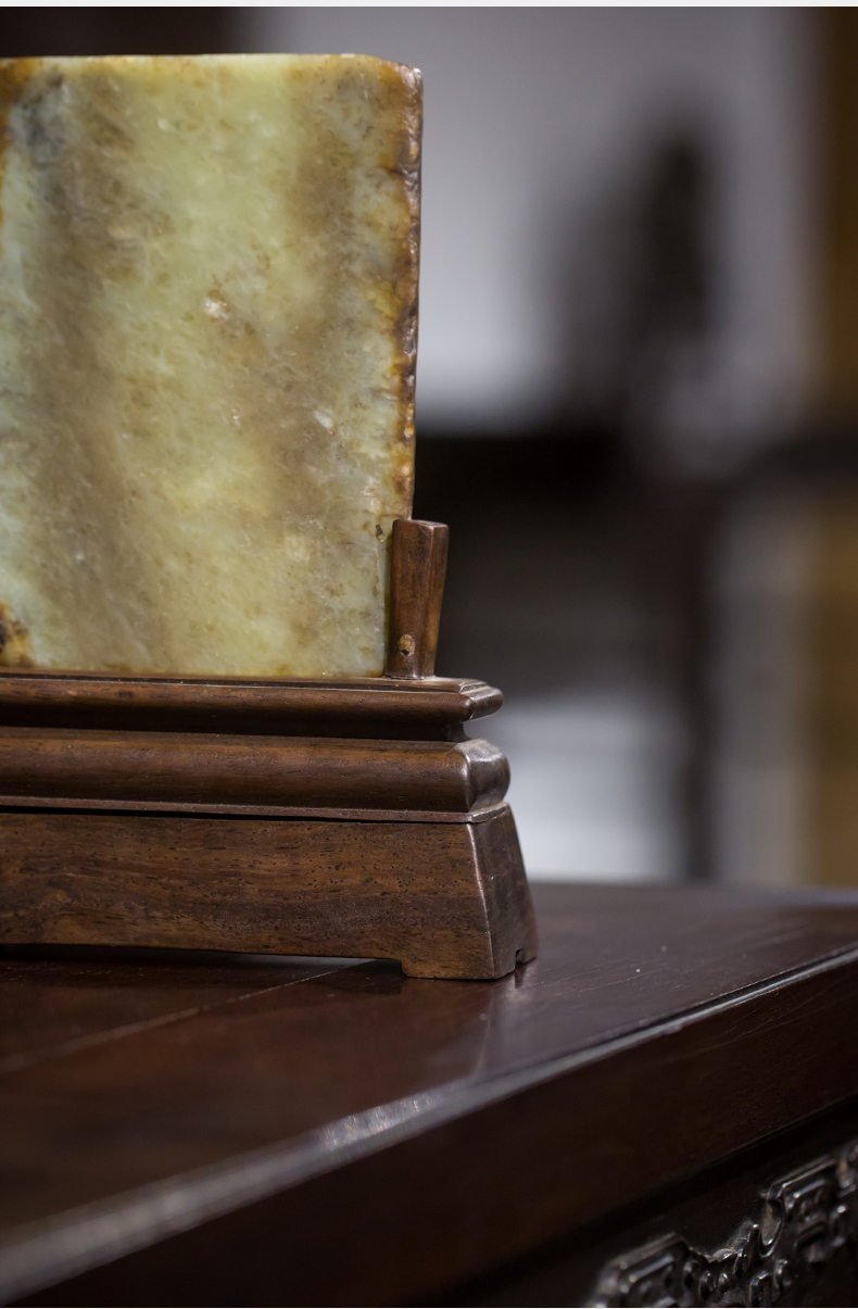 清 红木座和田玉屏芯关公像砚屏