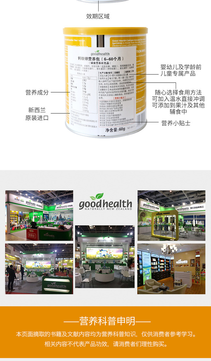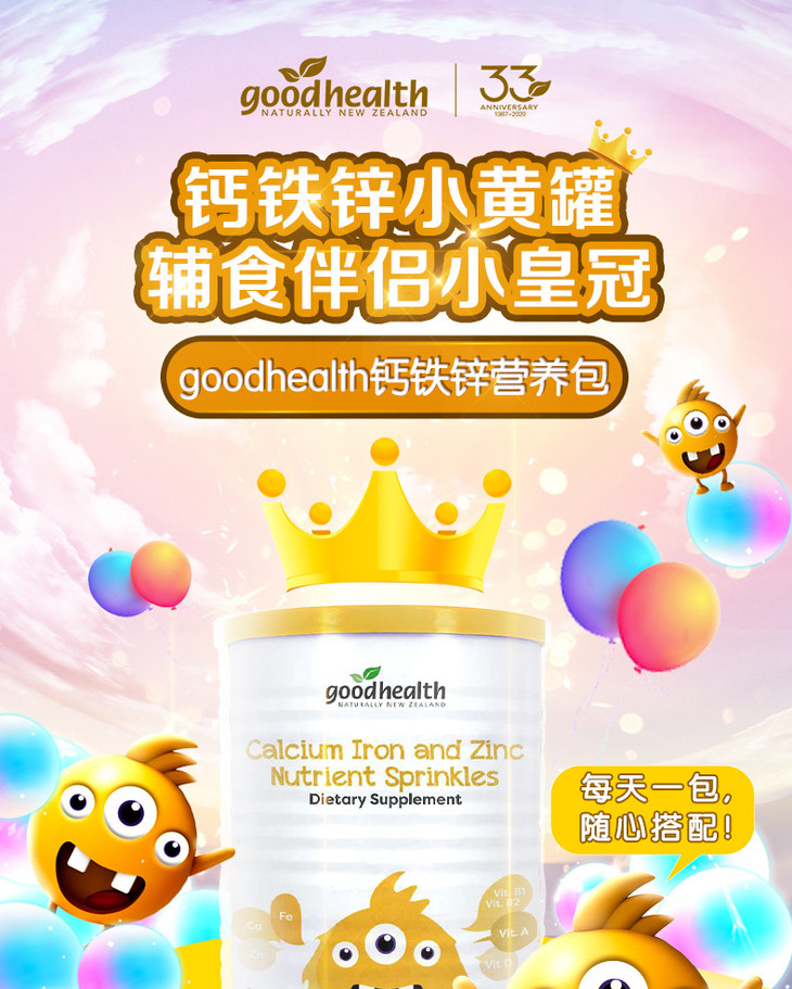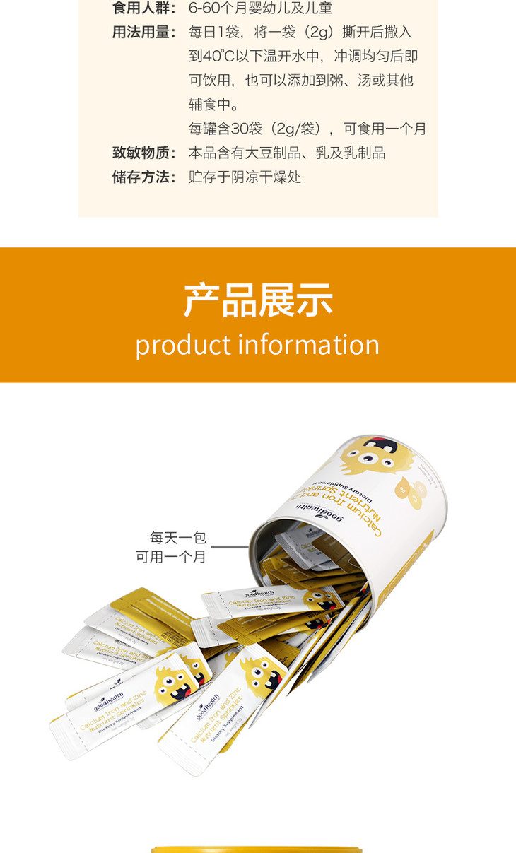 现货 新西兰好健康goodhealth钙铁锌营养包(辅食营养补充品)6-60个月婴幼儿及儿童(重庆一般贸易仓发货)