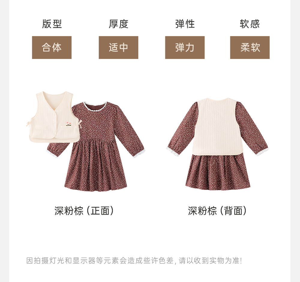 【商场同款】英氏女童连衣裙秋季女童马甲裙子休闲套装2024新款