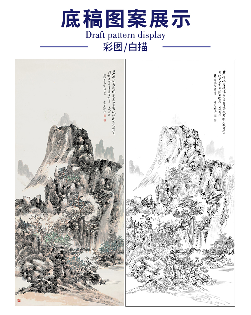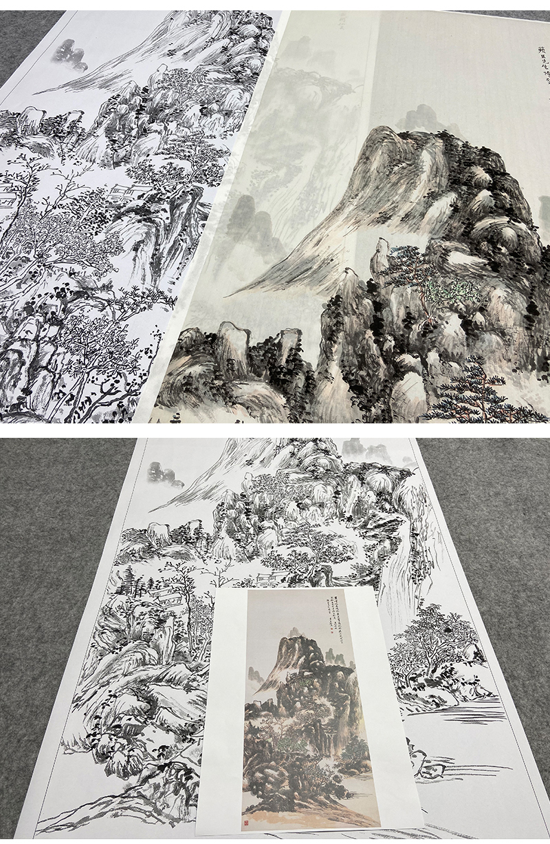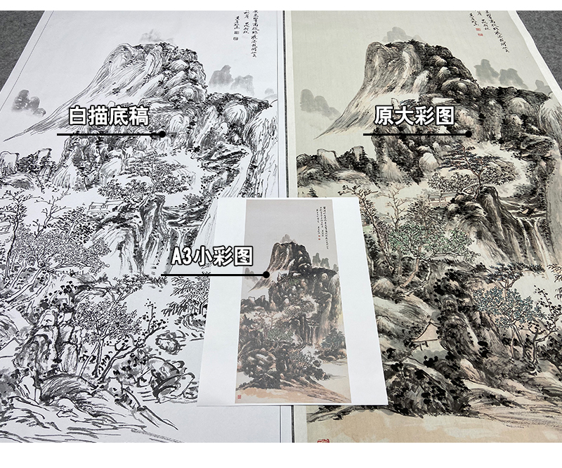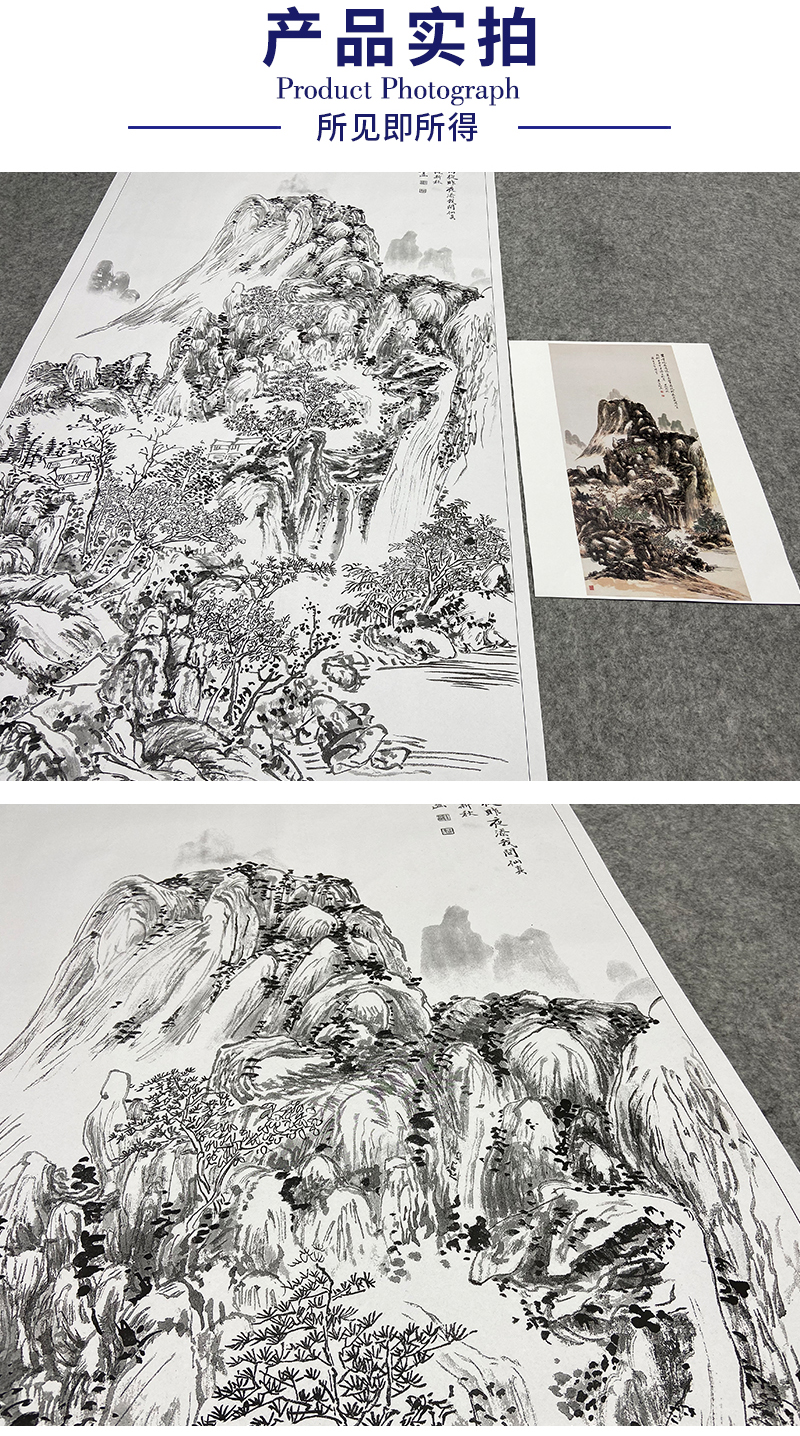 黄宾虹工笔画白描底稿《设色山水图 》山水底稿FS22