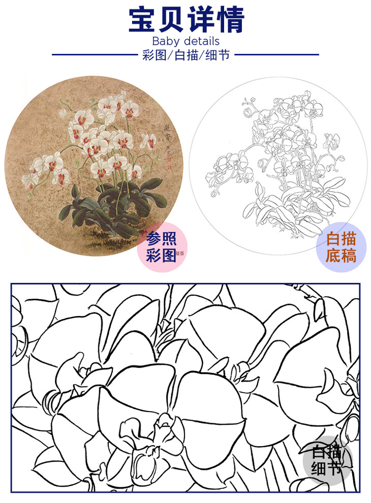 工笔花鸟白描底稿-梁燕生小品《凝香》-多种白描尺寸可选-A385