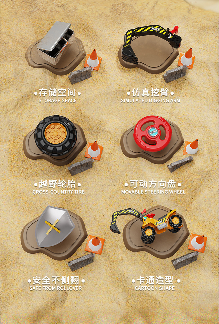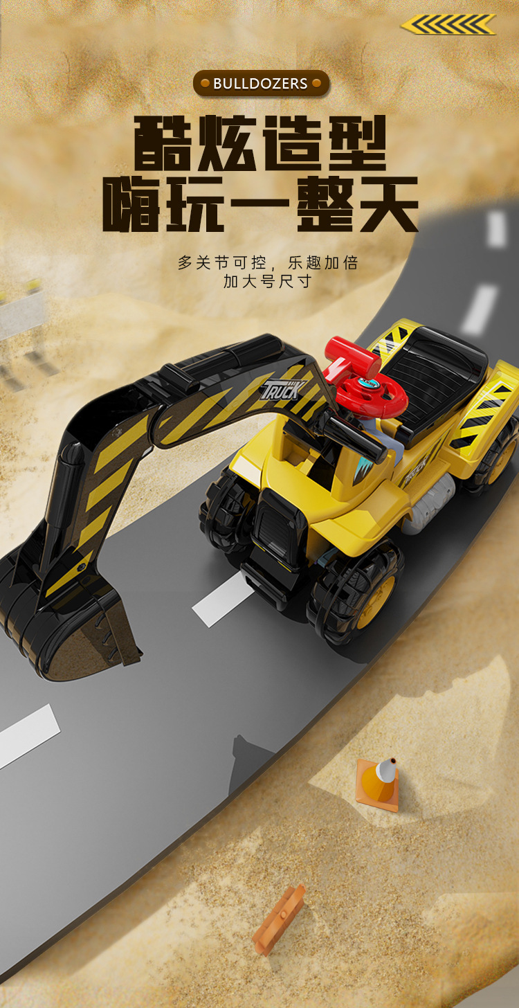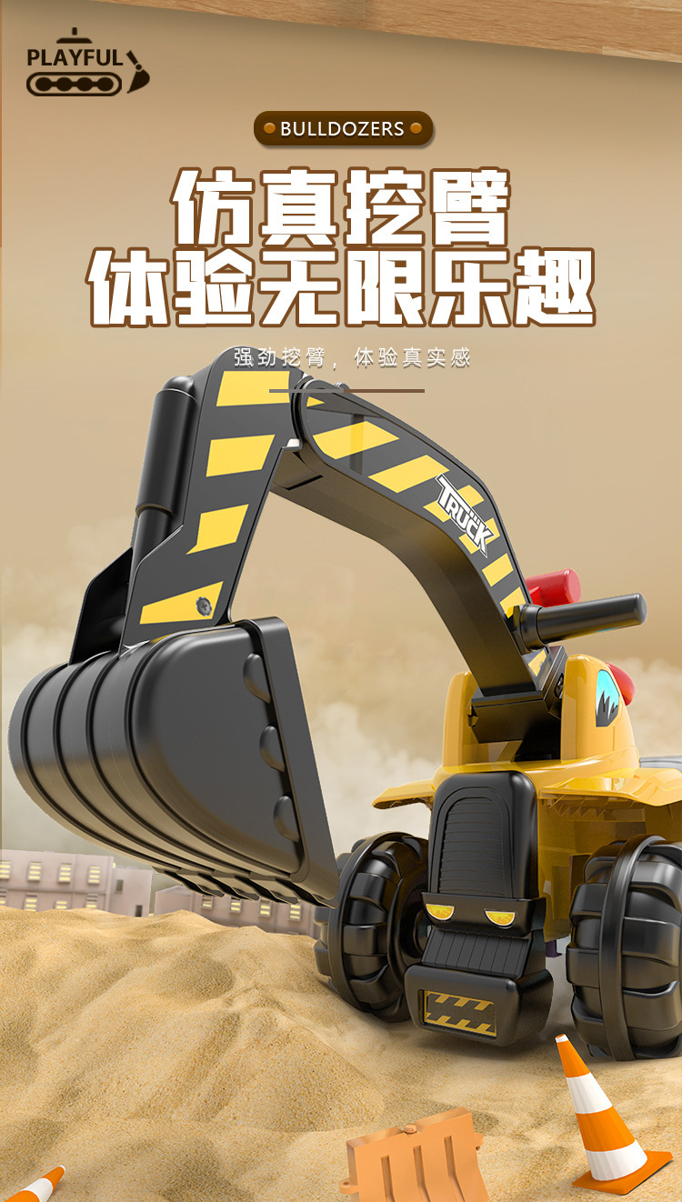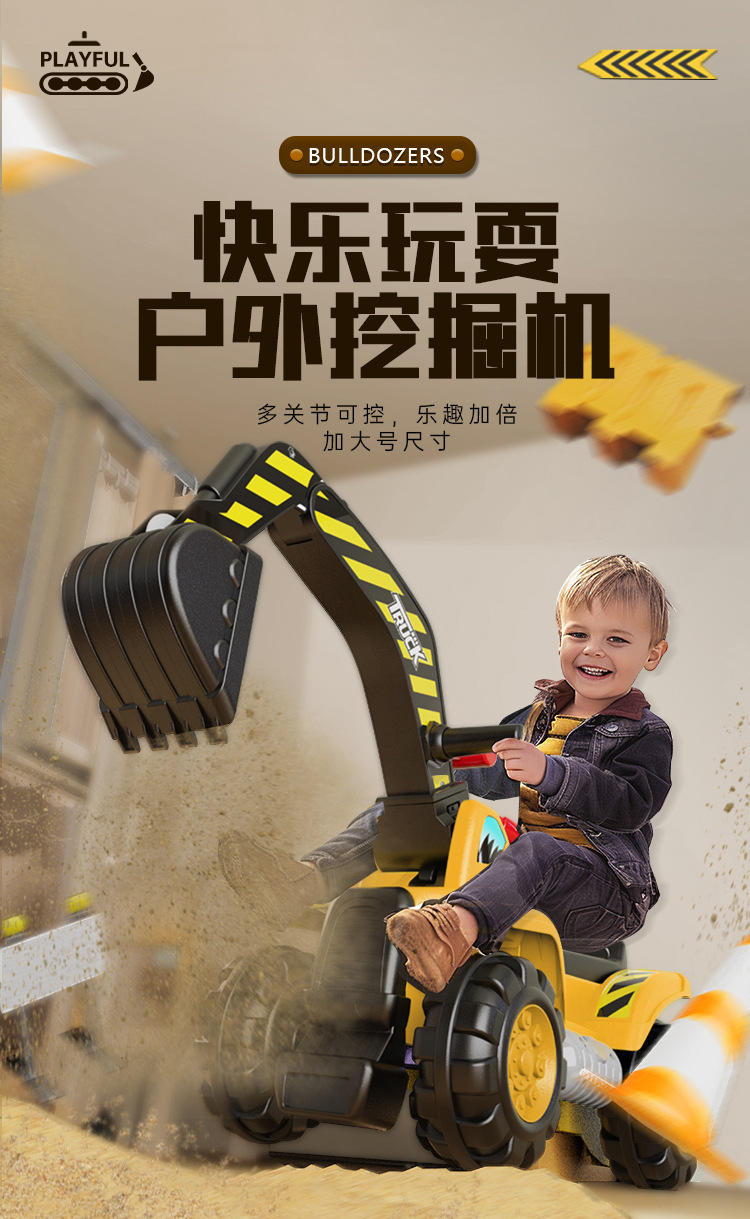 【酷炫造型,嗨玩一整天~】超大号儿童可坐人可骑挖掘机 滑行车大号挖土车 女男孩工程车溜溜车-QQ