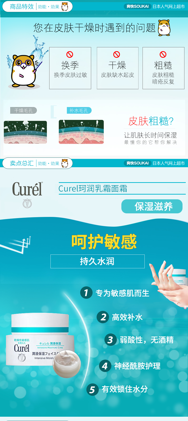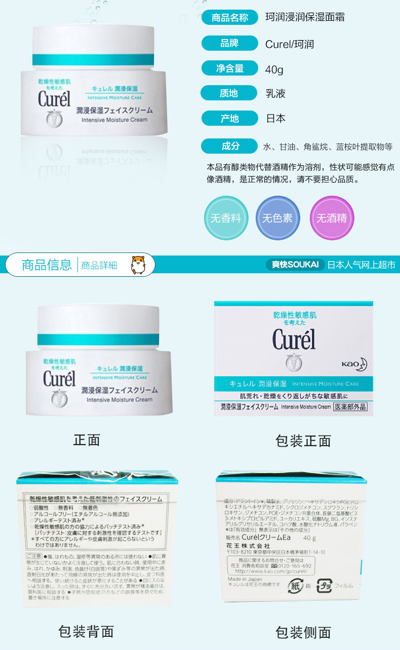 日本本土版珂润保湿修复面霜40g 敏感修复保湿