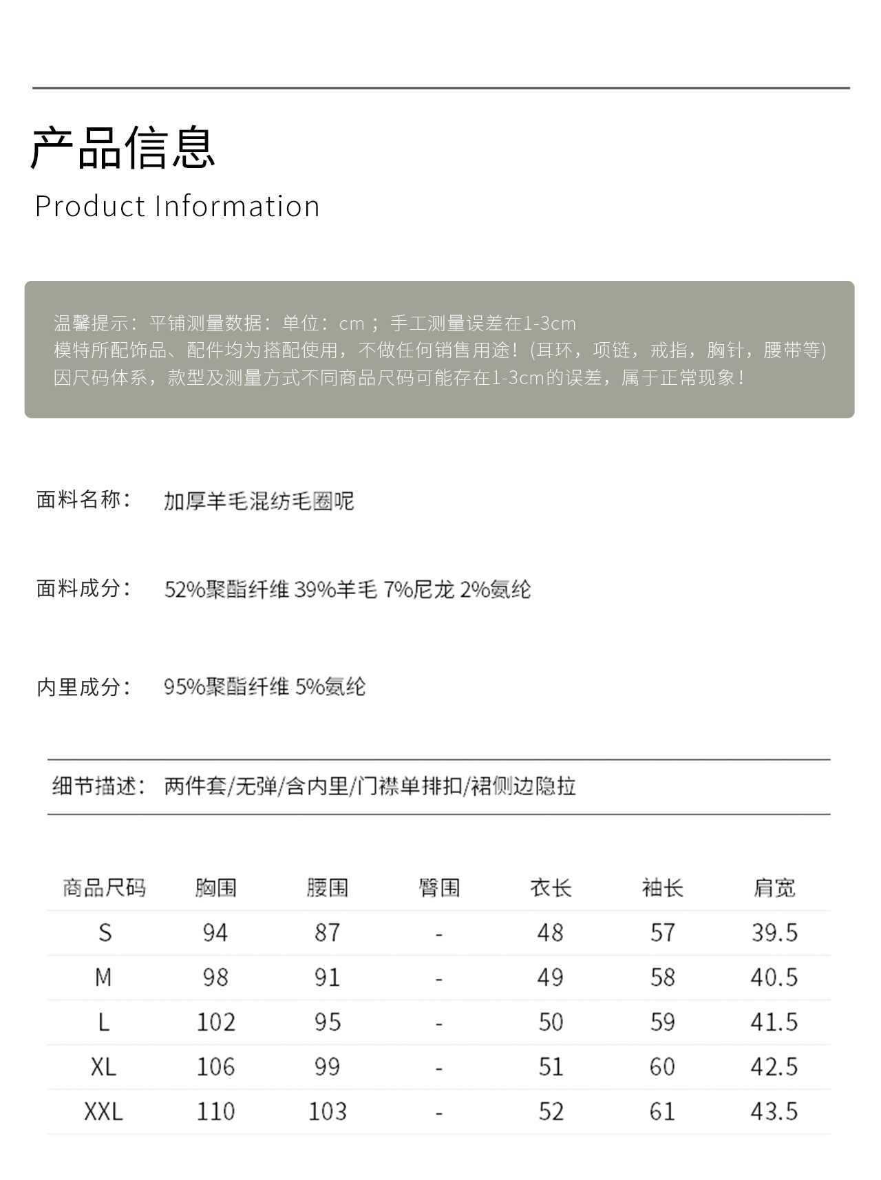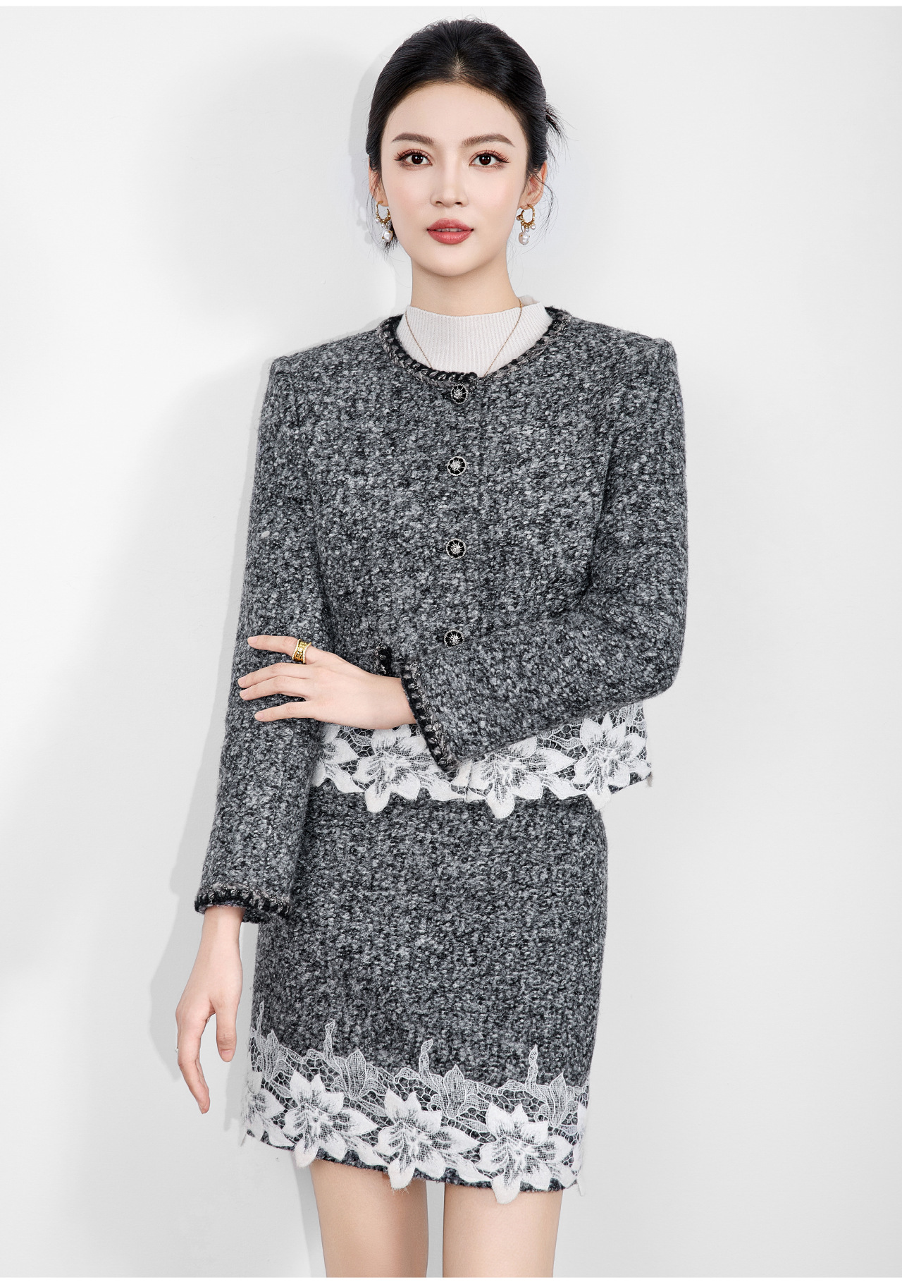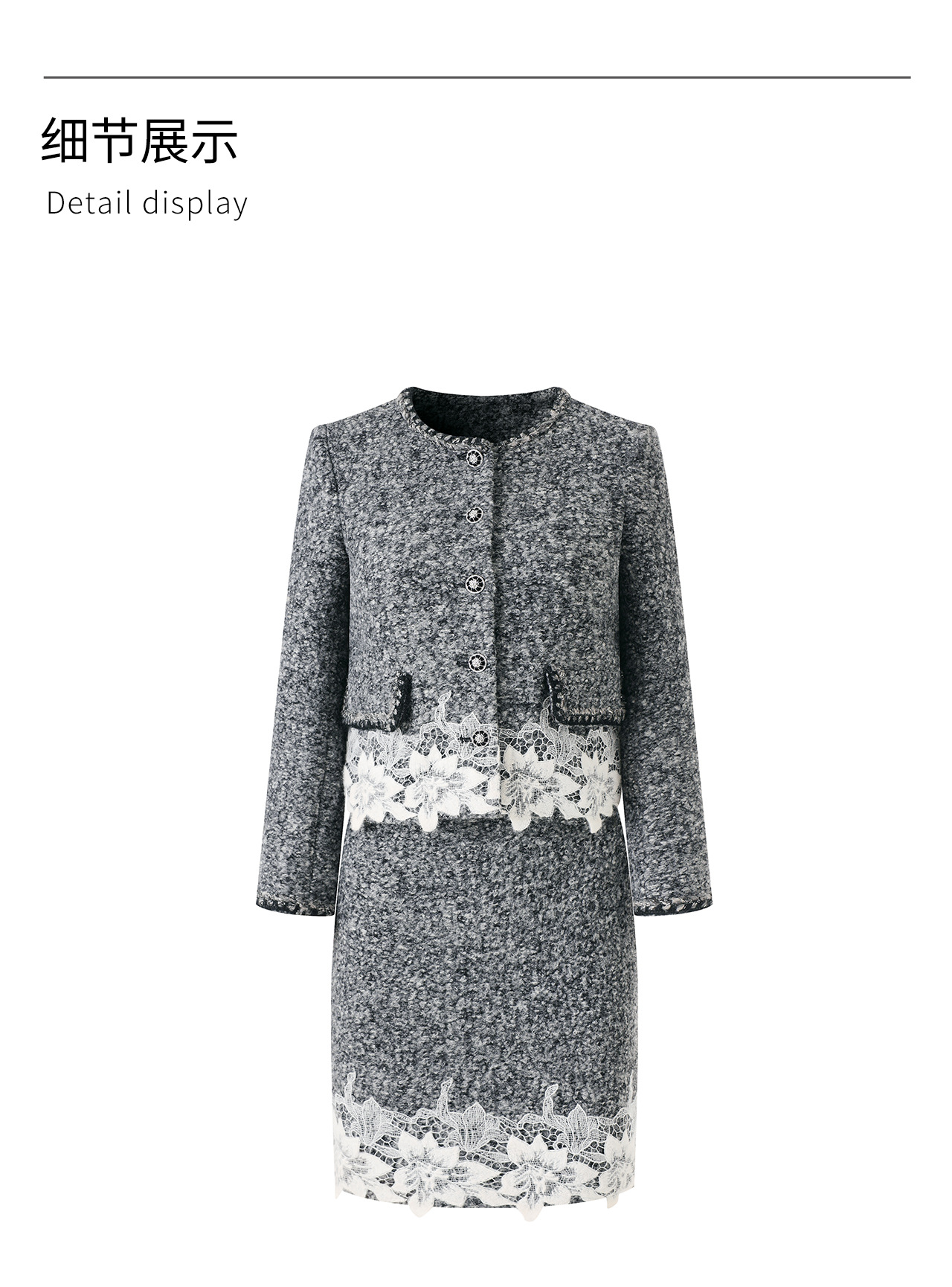 「高货wl」全新升级【铂金会员441/天猫599/差价158】(99051)洛诗琳2025冬季羊毛混纺蕾丝拼接小香风外套半身裙两件套