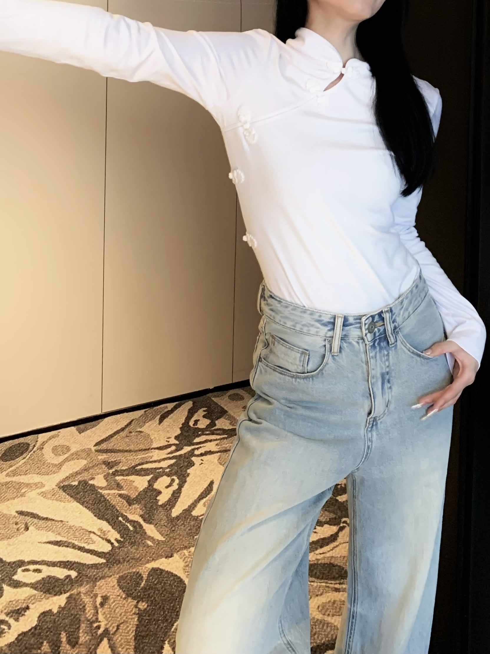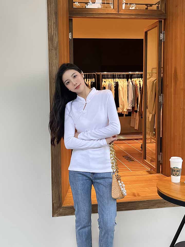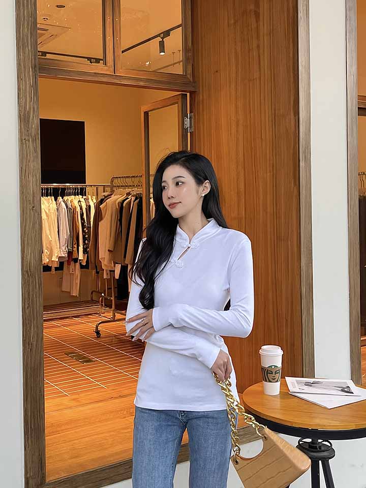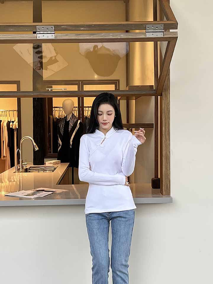顺丰包邮洛诗琳34501春季新款改良新中式盘扣国风修身T恤1273