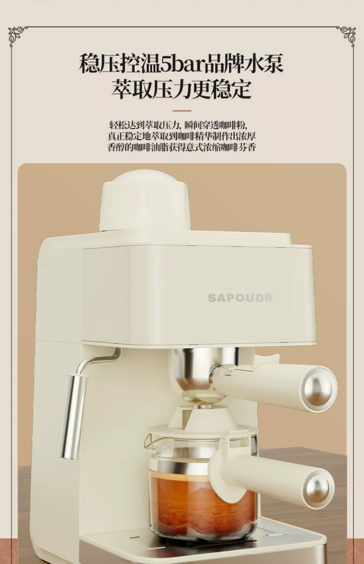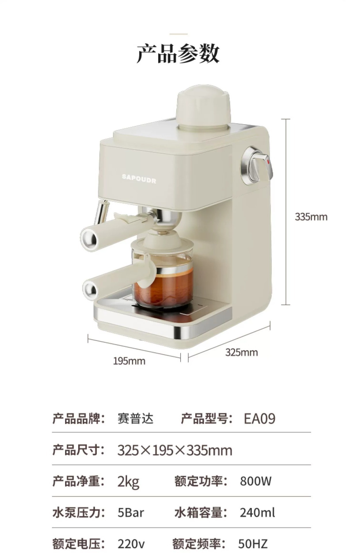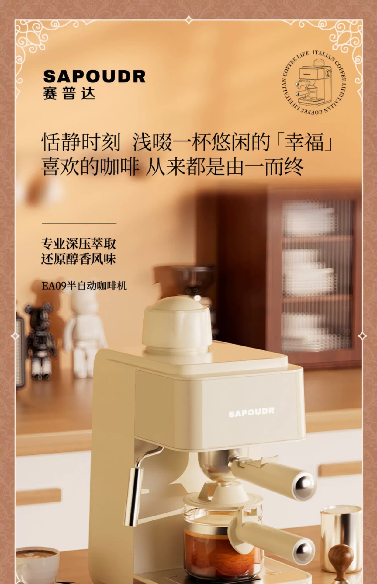 【赛普达EA09咖啡机】办公室煮美式家用 小型意式半自动咖啡机 稳定5bar泵压