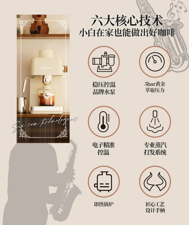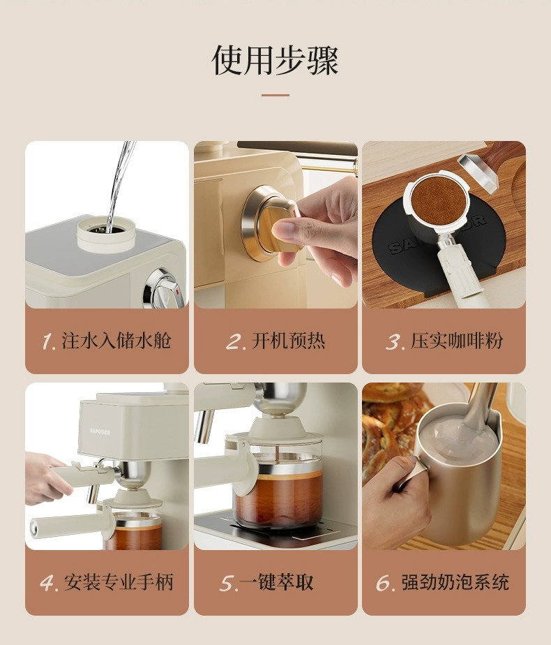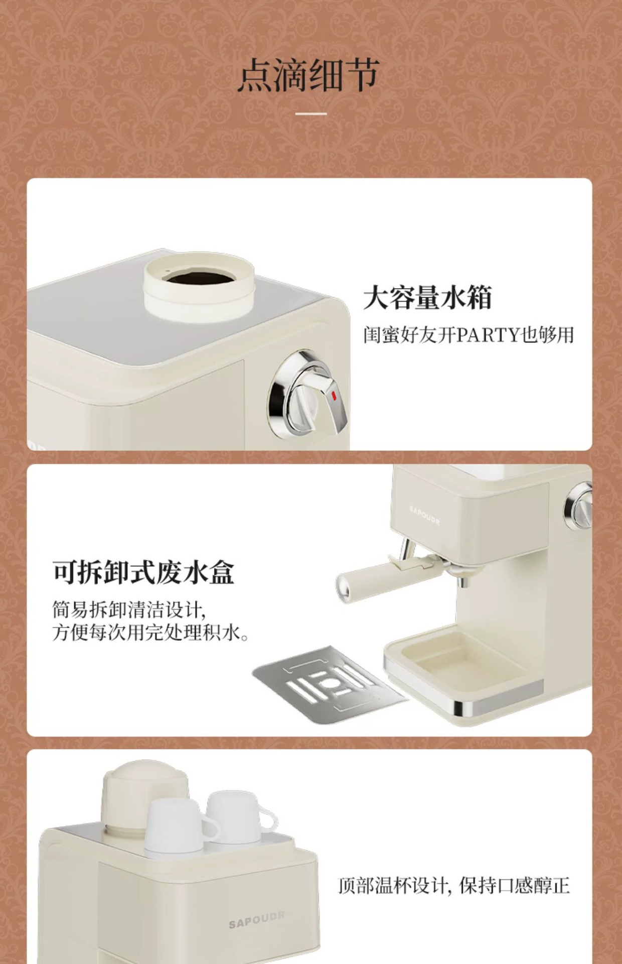 【赛普达EA09咖啡机】办公室煮美式家用 小型意式半自动咖啡机 稳定5bar泵压